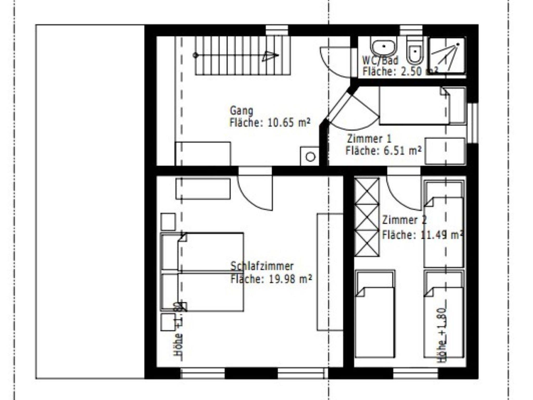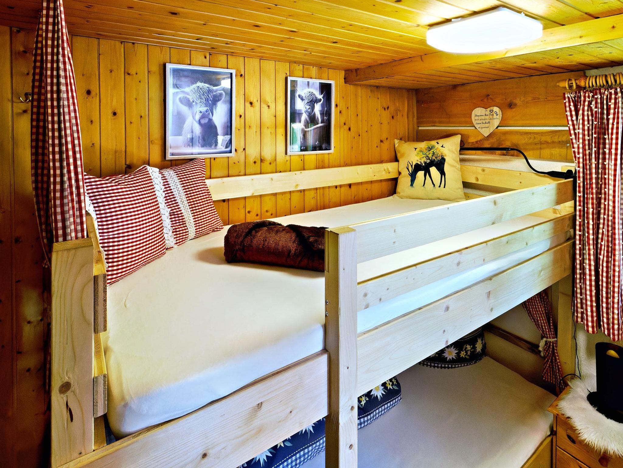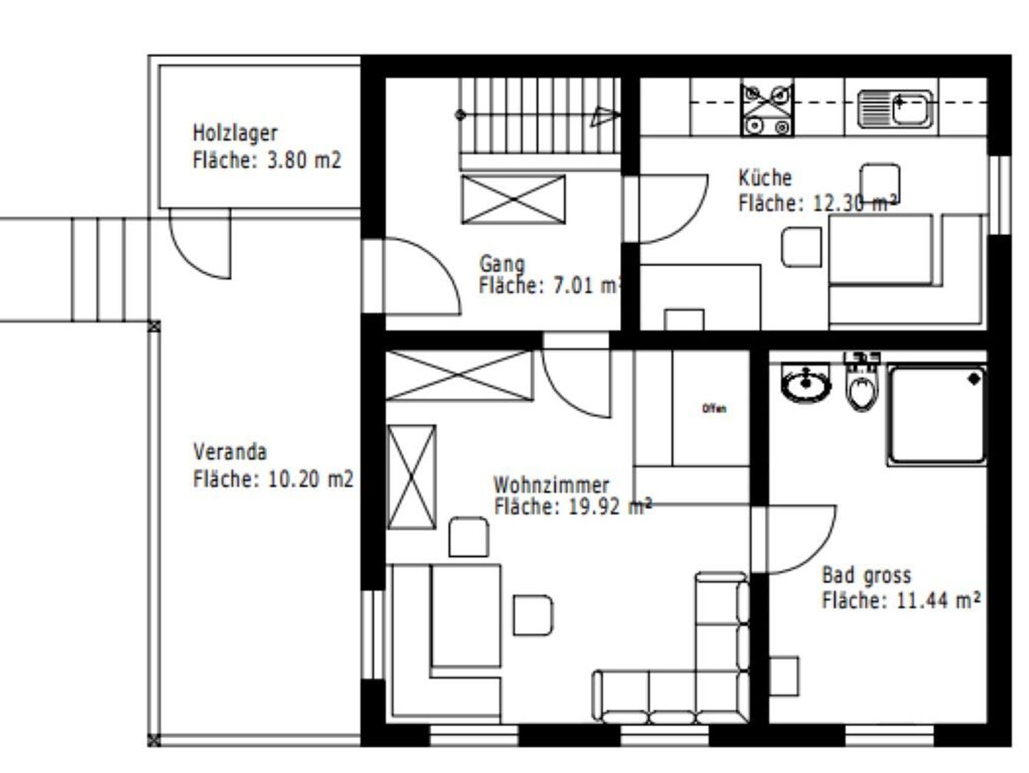 Aufteilung: 1 Doppelzimmer , 1 Stockbettzimmer, 1 Zimmer mit 1 Stockbett und 2 Einzelbetten, Stube, 2 Bäder/WC und Küche.