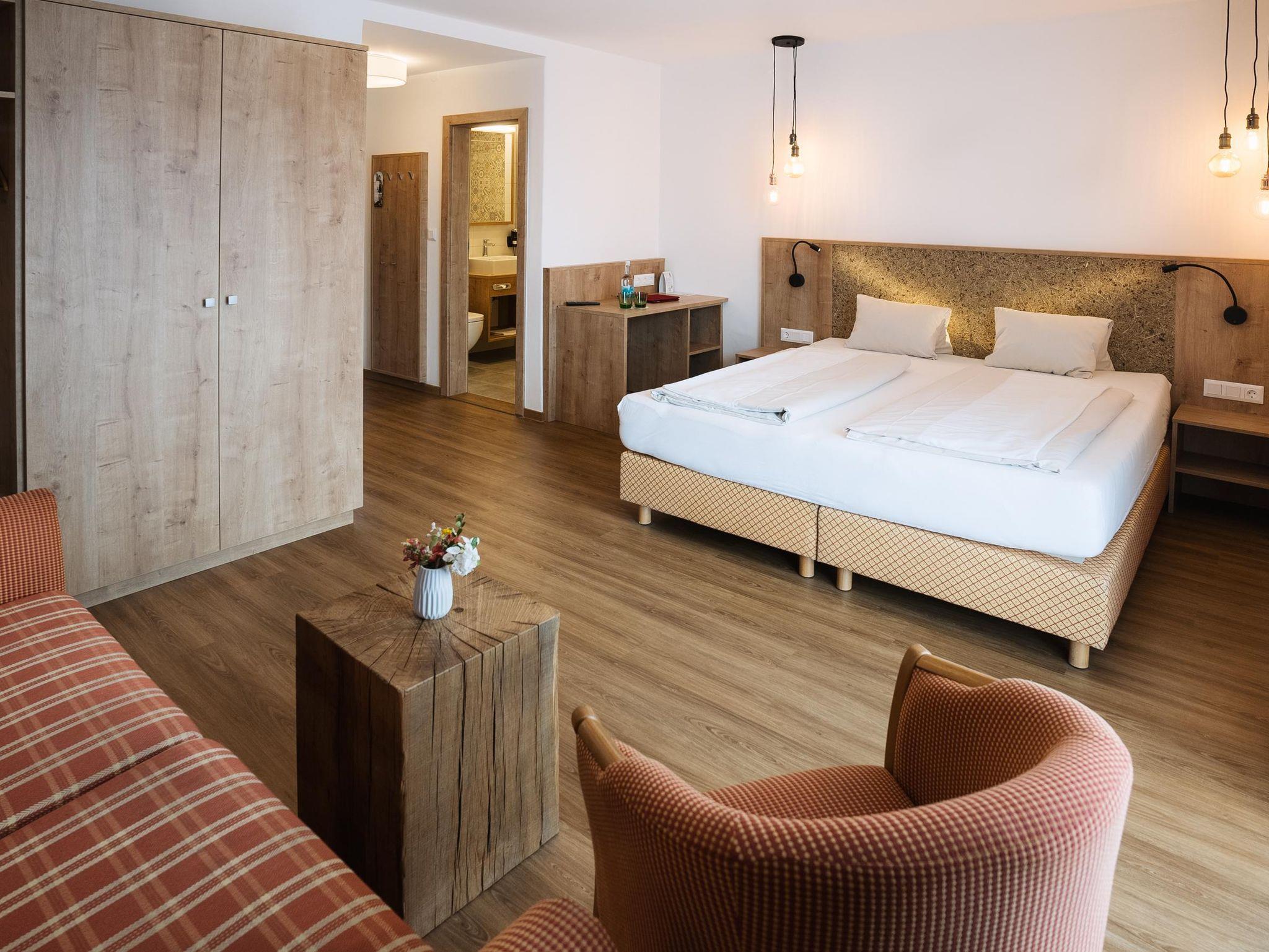 Die Familienzimmer „Großglockner superior“ mit ca. 39 m², besitzen zwei von einander abgetrennte Schlafzimmer, ein gemeinsames Badezimmer, Sat-TV und Radio, sowie einen großen Balkon von beiden Schlafzimmern zugänglich.