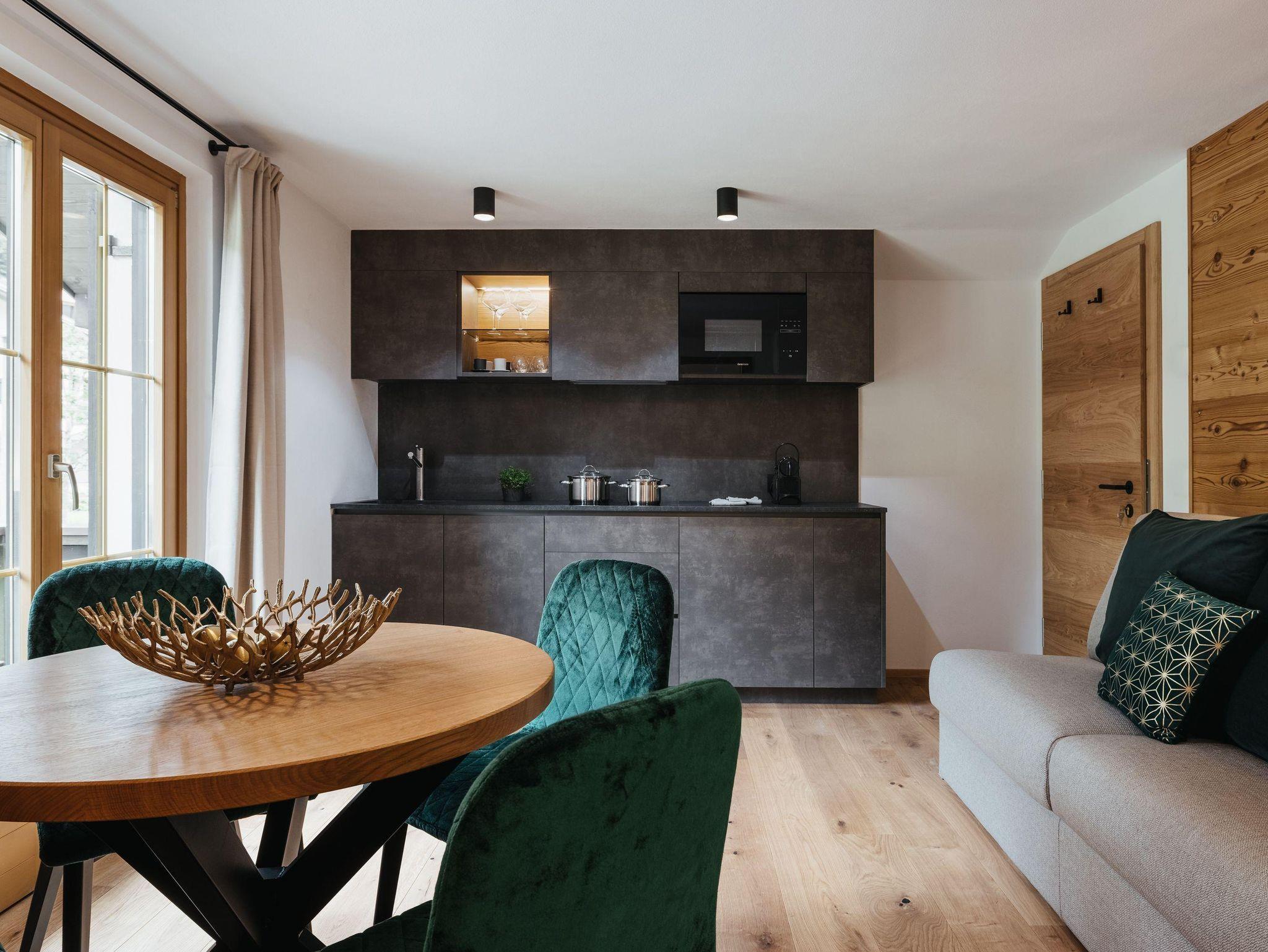 Die Ferienwohnung Zürs hat eine Größe von 42m² und verfügt über ein getrenntes Schlafzimmer mit Doppelbett sowie eine Panorama Glasfront und einer großen privaten Sonnenterrasse, die zum Entspannen und Relaxen einlädt. Einen Wohnbereich mit Panorama Esstisch und eine Doppelschlafcouch sowie 40‘‘ LED-TV laden zum Verweilen ein. Die vollausgestattete Design-Küche mit Induktionsherd, Spülmaschine, Kühl- und Gefrierschrank, Mikrowelle und Kaffeemaschine lässt im Urlaub keine Wohnwünsche offen.