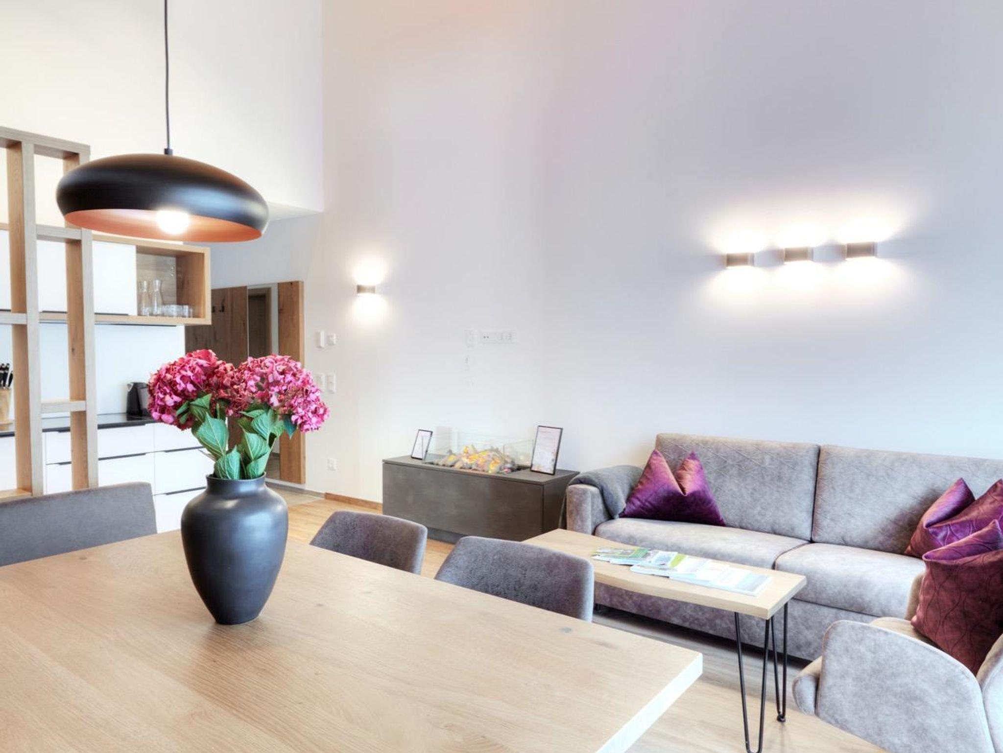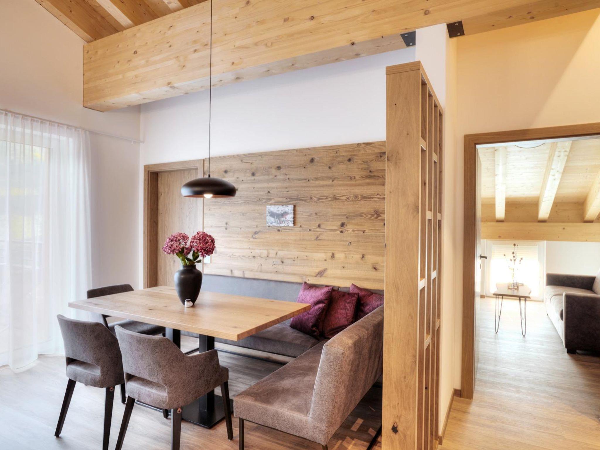 Die offenen, hellen Räume, veredelt mit Täfelungen aus Altholz laden ein zum gemütlichen Verweilen nach erlebnisreichen Urlaubstagen. Ob sportbegeistert oder ruhesuchend, ob kulinarisch oder kulturell interessiert, das Angebot in und um Damüls ist vielseitig. Durch die südseitige Ausrichtung der Apartments genießen Sie von morgens bis abends einen tollen Blick in die Berge.
