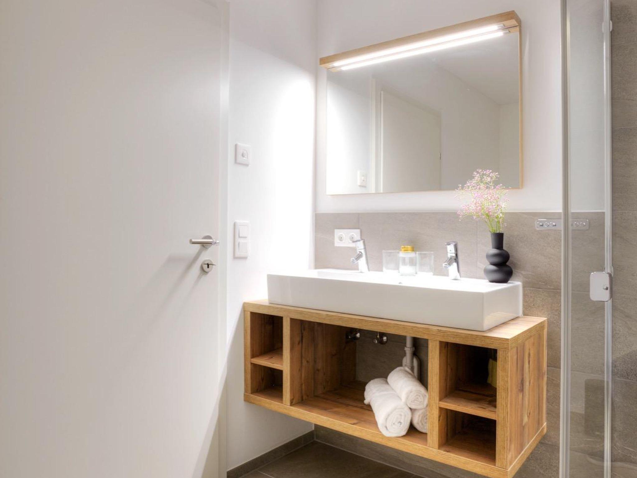 • Badezimmer mit Dusche und WC, beheizter Handtuchhalter & separates Gäste-WC