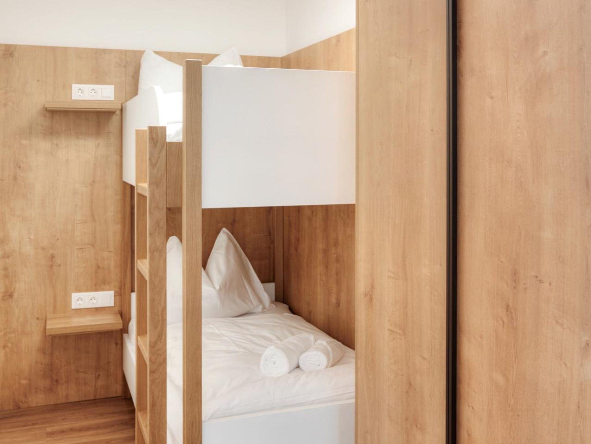 • 1 Schlafzimmer mit Doppelbett, 1 Schlafzimmer mit Etagenbett (ohne Fenster) - separater Zugang in beide Schlafzimmer