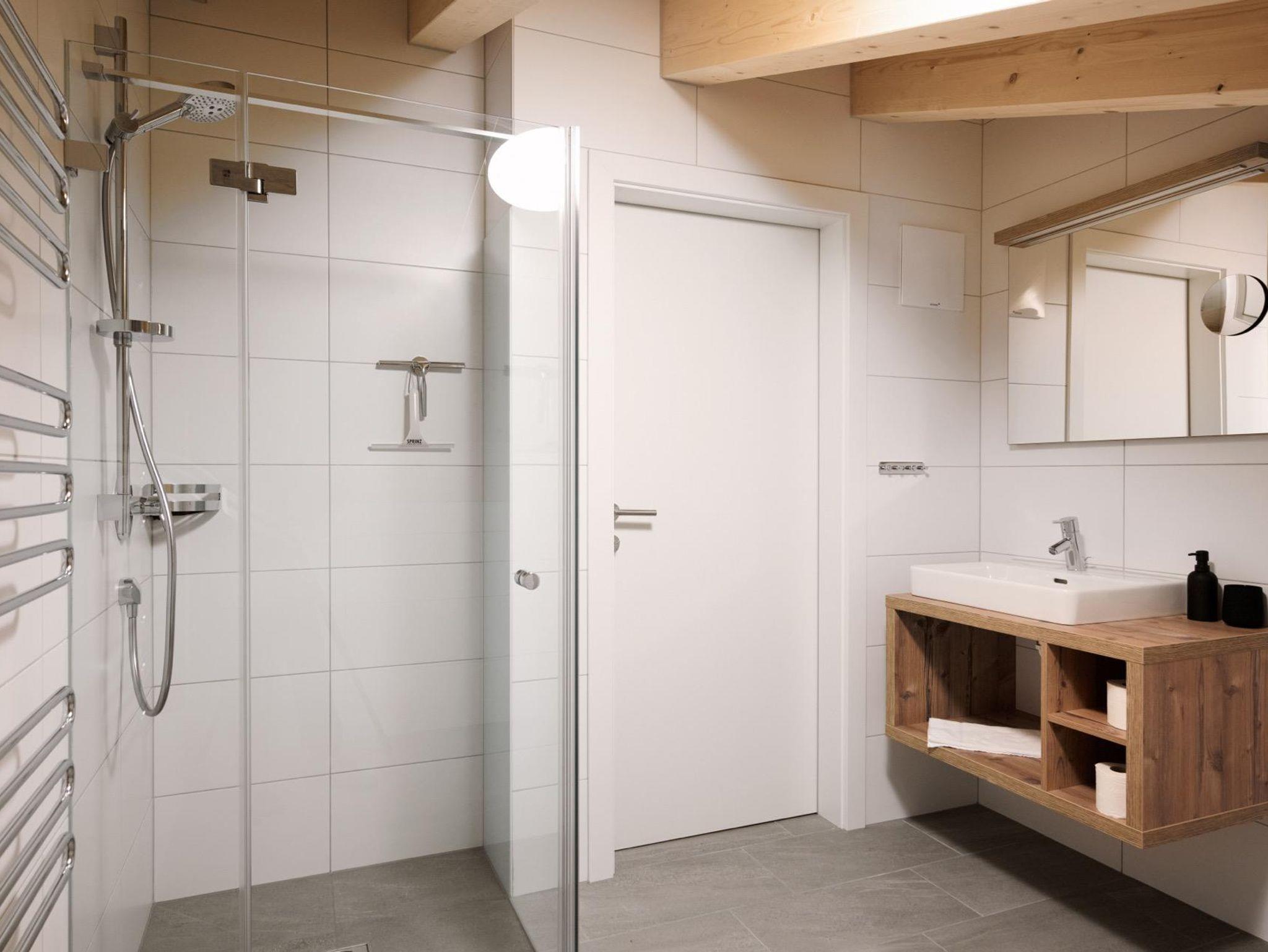 • Badezimmer mit Dusche und WC, beheizter Handtuchhalter