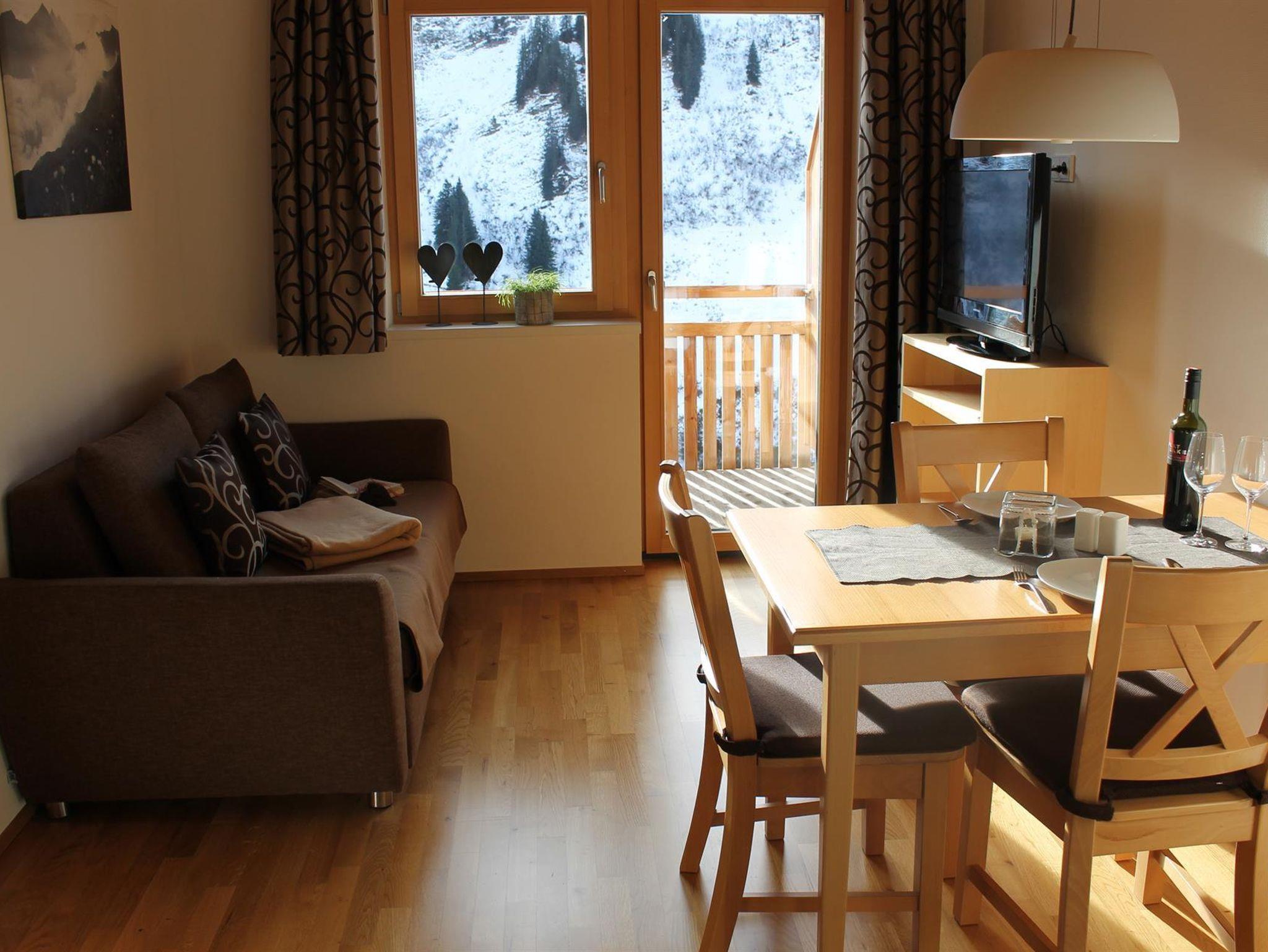Unser Appartement berg.welt lädt zu behaglichem Wohnen und Entspannung vom Alltag ein. Heimische Tischlerarbeit aus Birkenholz, ein Eichenparkettboden und warme Farben bestimmen die Atmosphäre des Appartements und machen die berg.welt zu Ihrem Urlaubszuhause. Die Wohnung befindet sich auf der zweiten Etage und bietet Platz für 1 - 4 Personen. Sie verfügt über 1 Schlafzimmer mit Doppelbetten, einen gemütlichen Wohn-Essbereich mit ausziehbarer Schlafcouch, eine voll ausgestattete Küche mit Spülmaschine, Tiefkühlschrank, Mikrowelle, Backrohr, Kaffeemaschine, Wasserkocher etc., Badezimmer mit Dusche/WC, Safe und einen sonnigen Südbalkon. Wohlfühlen garantiert, lautet die Devise in Ihrer berg.welt. Schließen Sie die Tür, lassen Sie den Alltag draußen und genießen Sie!