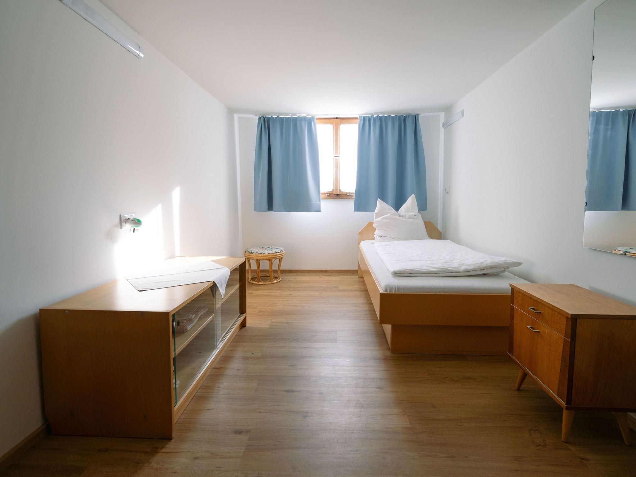 eine erholsame Nachtruhe. Separat folgt ein kleines Zimmer, das mit einem Einzelbett (90 x 200) ausgestattet ist. Das Badezimmer wurde komplett