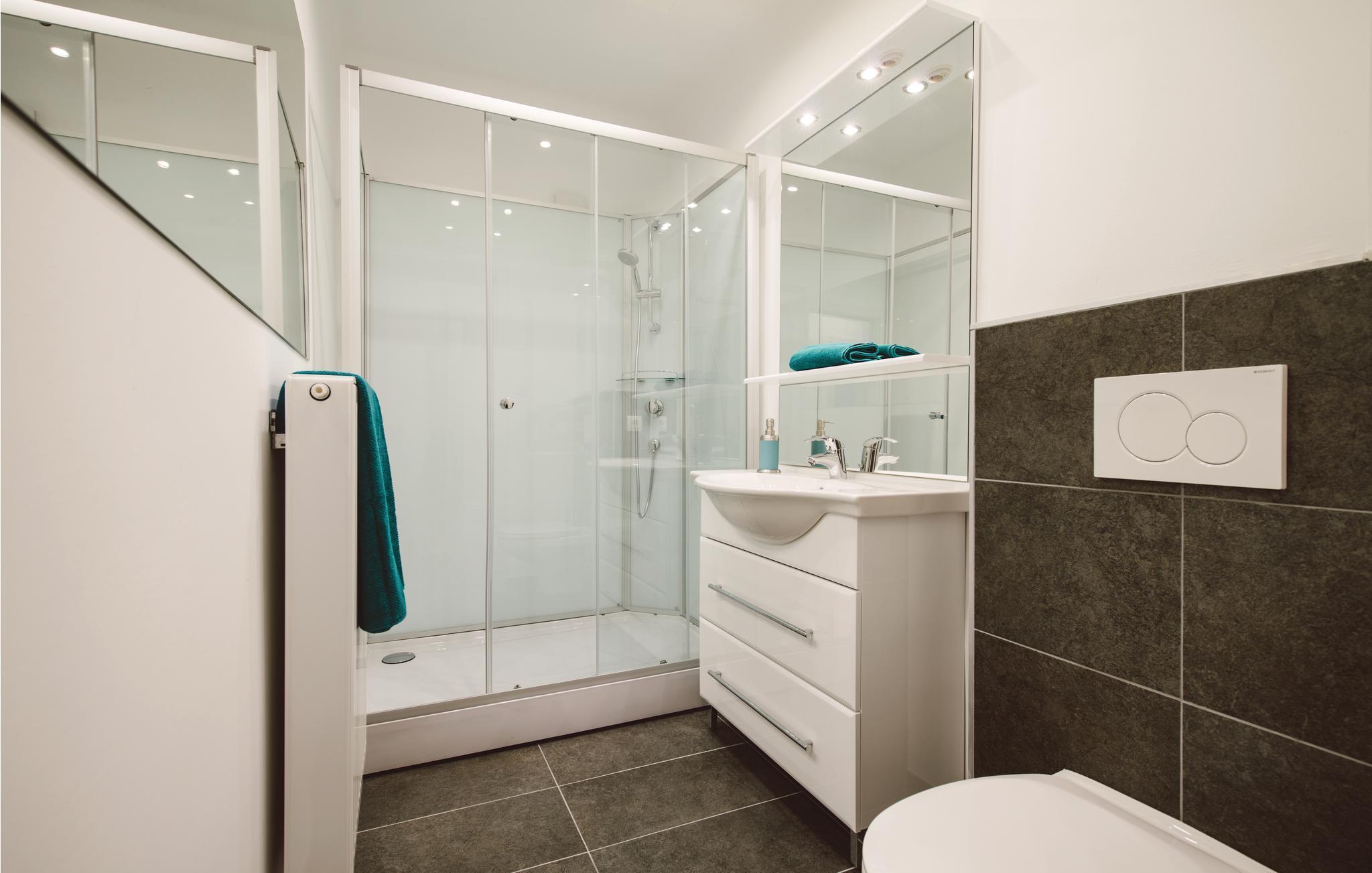 Badezimmer (nr. 1) - WC. Warmes und kaltes Wasser. Dusche