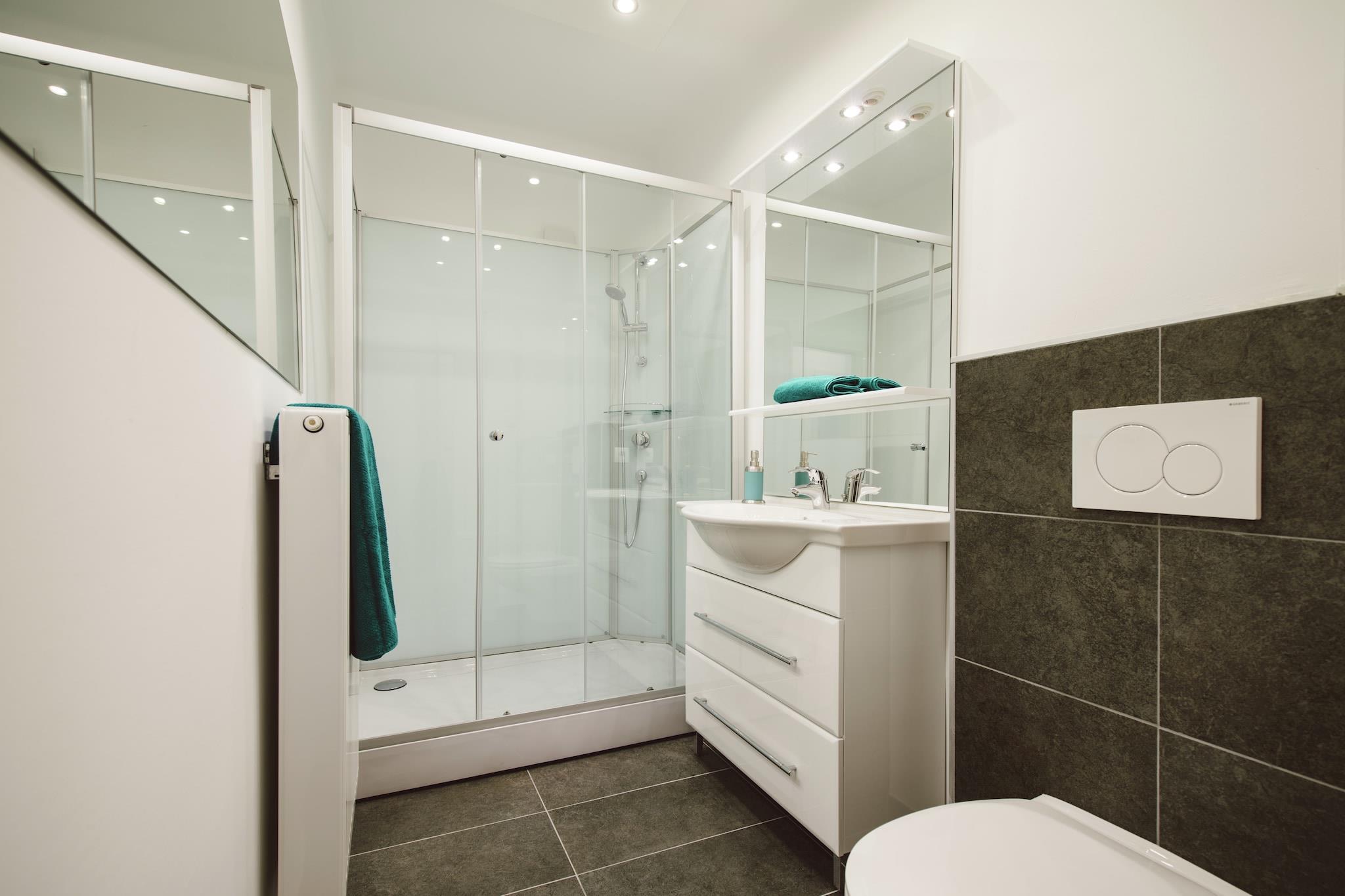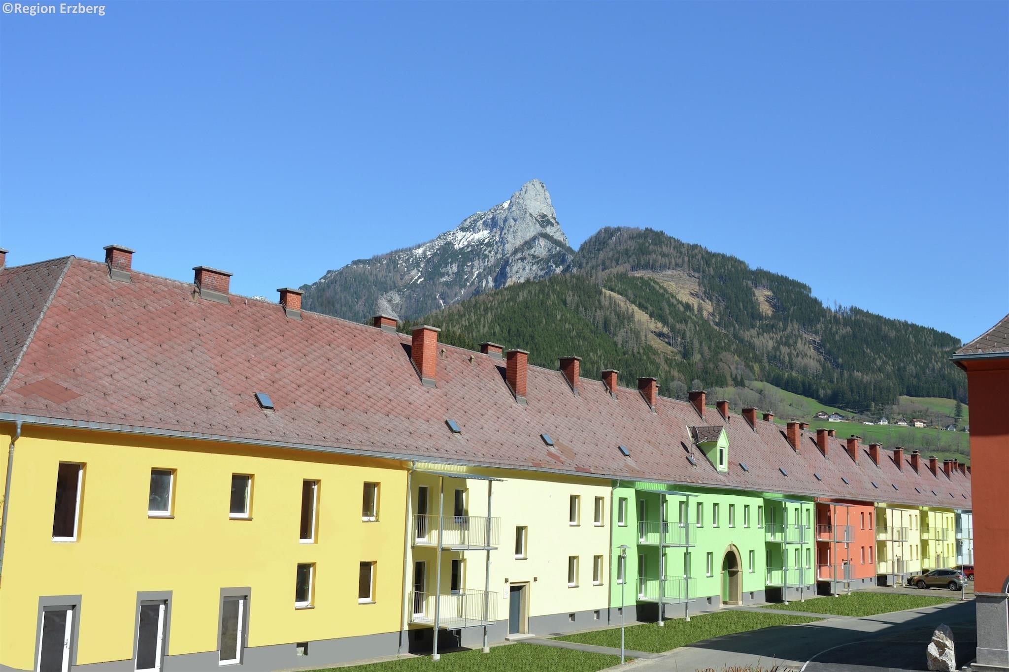 The 44 m² holiday flat offers space for 2 to 4 people. Your holiday flat has 2 bedrooms (1 with double bed, 1 with 2 single beds), 1 bathroom with WC and shower and a balcony. The kitchen in the holiday flat is fully equipped. This means: cutlery and (cooking) crockery are available, electric cooker, microwave, fridge with freezer compartment and dishwasher are also part of the equipment as well as toaster and coffee machine (Nespresso capsules). A small starter set with dishwashing tab, washing-up liquid (sample), sponge, bin liner, cleaning cloth and tea towel is available on arrival. WLAN is free of charge, satellite TV. Kettle and hairdryer can be borrowed free of charge from reception (subject to availability). Dog-friendly: Your four-legged friend is also allowed on request and for a fee - he is sure to feel right at home at the Erzberg Alpin Resort! All pictures are examples. Each holiday flat is individually furnished.