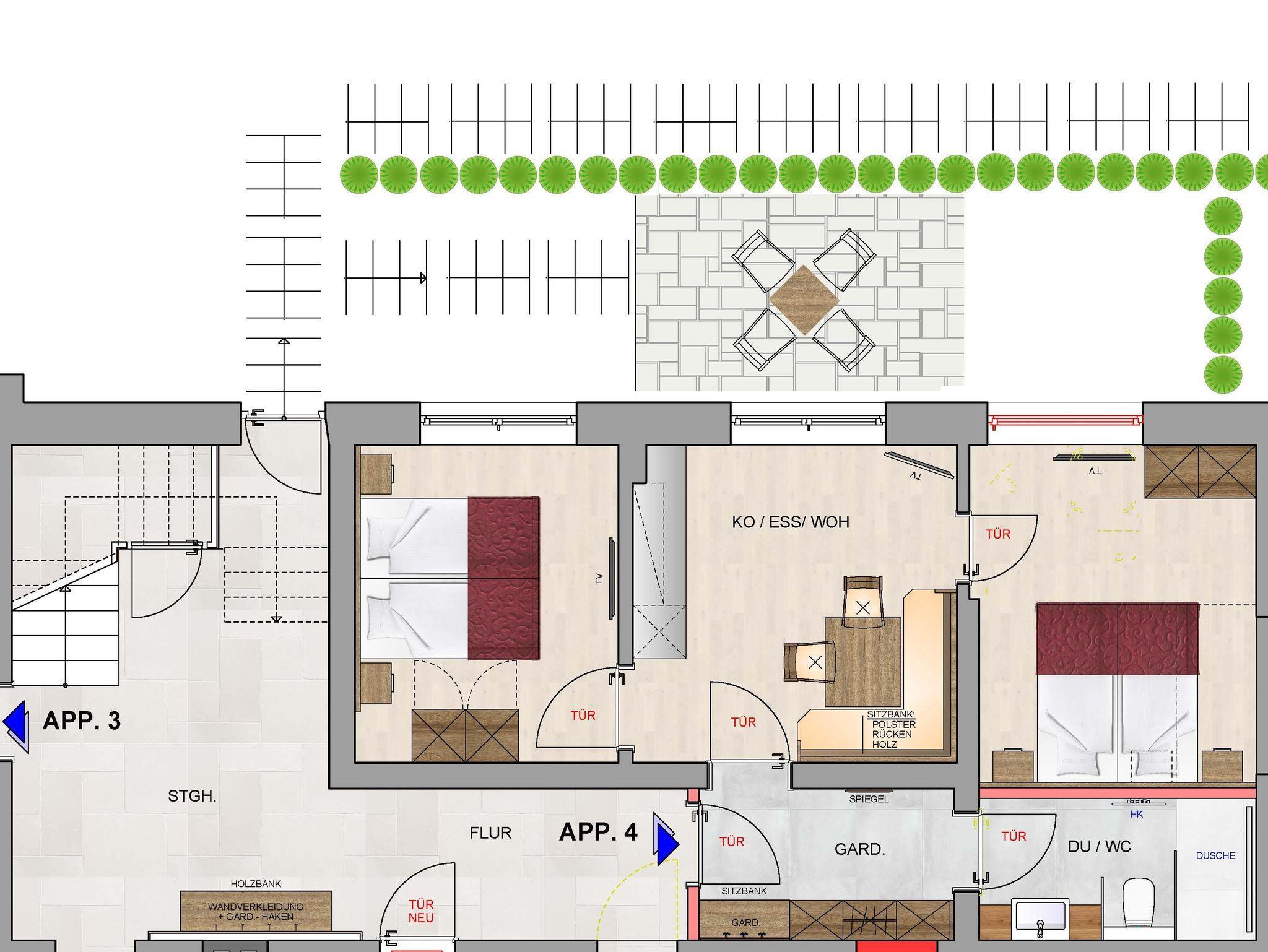 Das Appartement 4 ist neu renoviert und sieht wirklich so toll wie auf den Bildern zu sehen ist aus. Hochwertige Moderne und Gemütliche Ausstattung. Einziger Manko ist die Terrasse die nicht direkt vom Zimmer aus begehbar ist. Da muß man vom Zimmer und durch die untere Haustür raus um auf diese zu kommen. Die vielen Bäume direkt am Haus versperren die super Aussicht auf das Kaisergebirge.