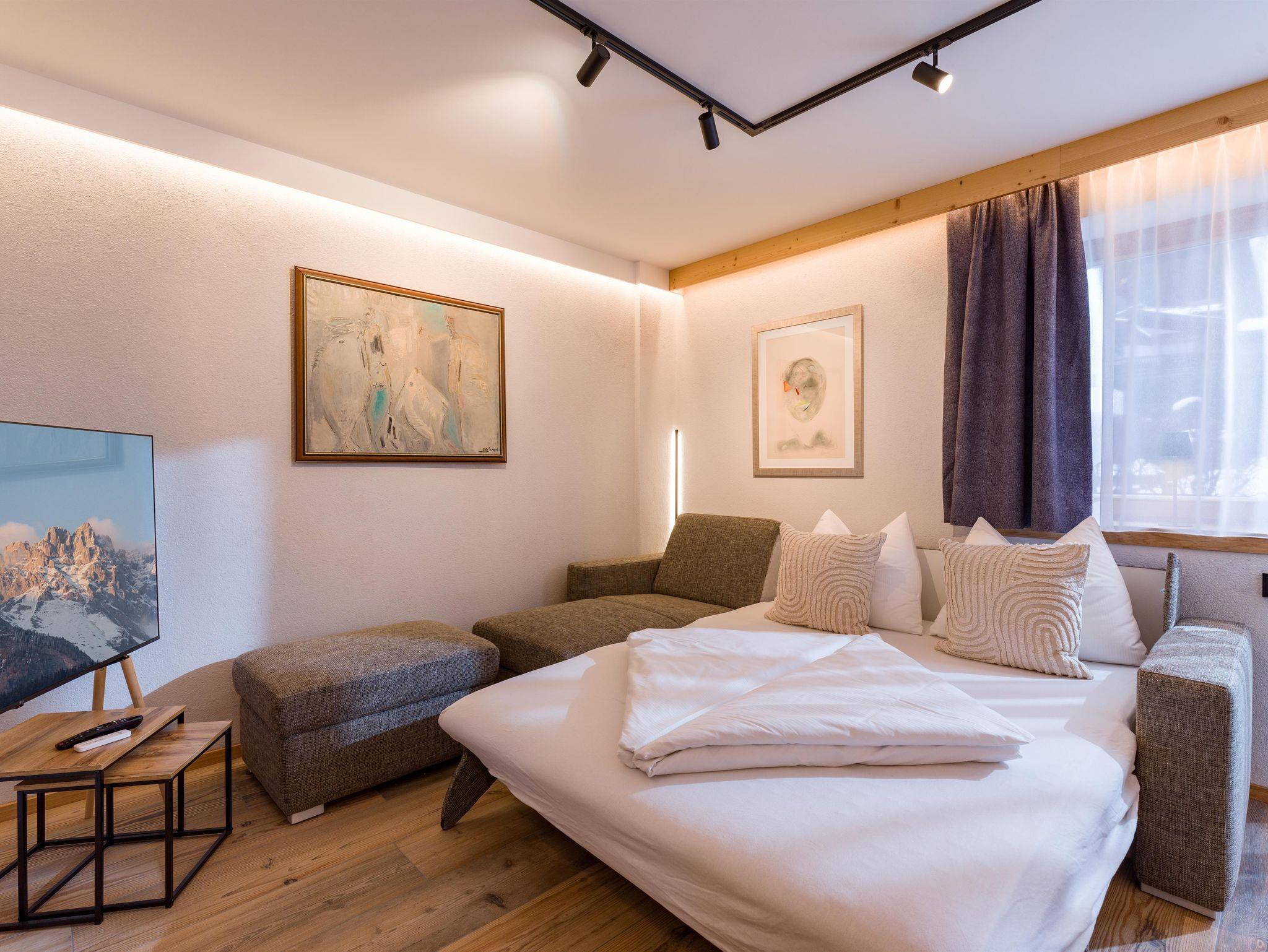 Diese komplett renovierte Wohnung ist mit viel Liebe zum Detail im alpenländischen Stil mit Altholz gefertigt und bietet eine gemütliche Komfortausstattung auf 46m2 Wohnfläche. Hier finden bis zu 4 Personen Platz.