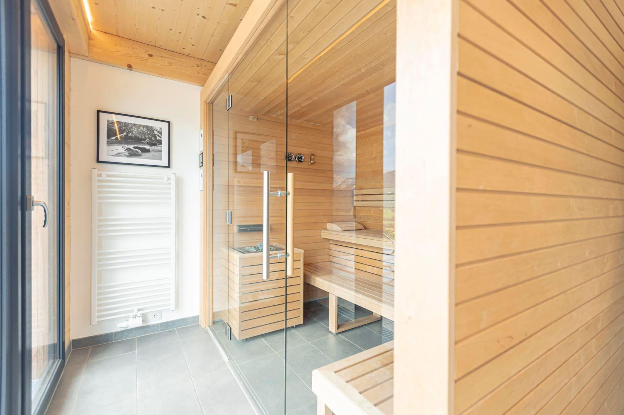 Welcome to the luxurious 150 m² Superior Chalet, a perfect retreat for up to 10 guests. This spacious chalet features five elegantly designed bedrooms and five bathrooms, including four en suite. Enjoy ultimate relaxation in the bathroom with a Bali steam shower and sauna, or unwind in the bath with an additional shower. Conveniently, there's a separate toilet and hairdryers are provided. The chalet’s highlights include a private sauna and a 27°C warm pool on the terrace, perfect for unwinding and soaking in the alpine ambiance. With direct slope access and private wellness areas, you can also take advantage of the Schladming-Dachstein Summer Card (mid-May to early November) and dine at the kAlps Foodbar. The Schladming-Dachstein region offers a diverse range of activities year-round. In winter, explore family ski areas like Ski Fageralm and Ramsau, while summer invites you to scenic hikes, alpine lakes, and thrilling via ferratas. Join guided snowshoe hikes, alpaca walks, and more, with top events such as The Nightrace and Mid Europe enhancing your stay. Each bedroom is fitted with comfortable box-spring double beds, ensuring a restful night’s sleep. The bright, airy living area, complete with a cozy gas stove, offers stunning mountain views, enhancing your relaxation after a day of adventure. The fully equipped kitchen caters to all your culinary needs, featuring cutlery and cookware, a ceramic hob, oven, fridge with freezer compartment, and dishwasher. Additional amenities include a toaster, kettle, and both a filter and Nespresso capsule coffee machine. A small starter set with essential supplies will be waiting for you upon arrival. Complimentary Wi-Fi and satellite TV are provided for your convenience. Please note that all images are sample photos; each chalet is uniquely furnished to provide a distinctive experience.