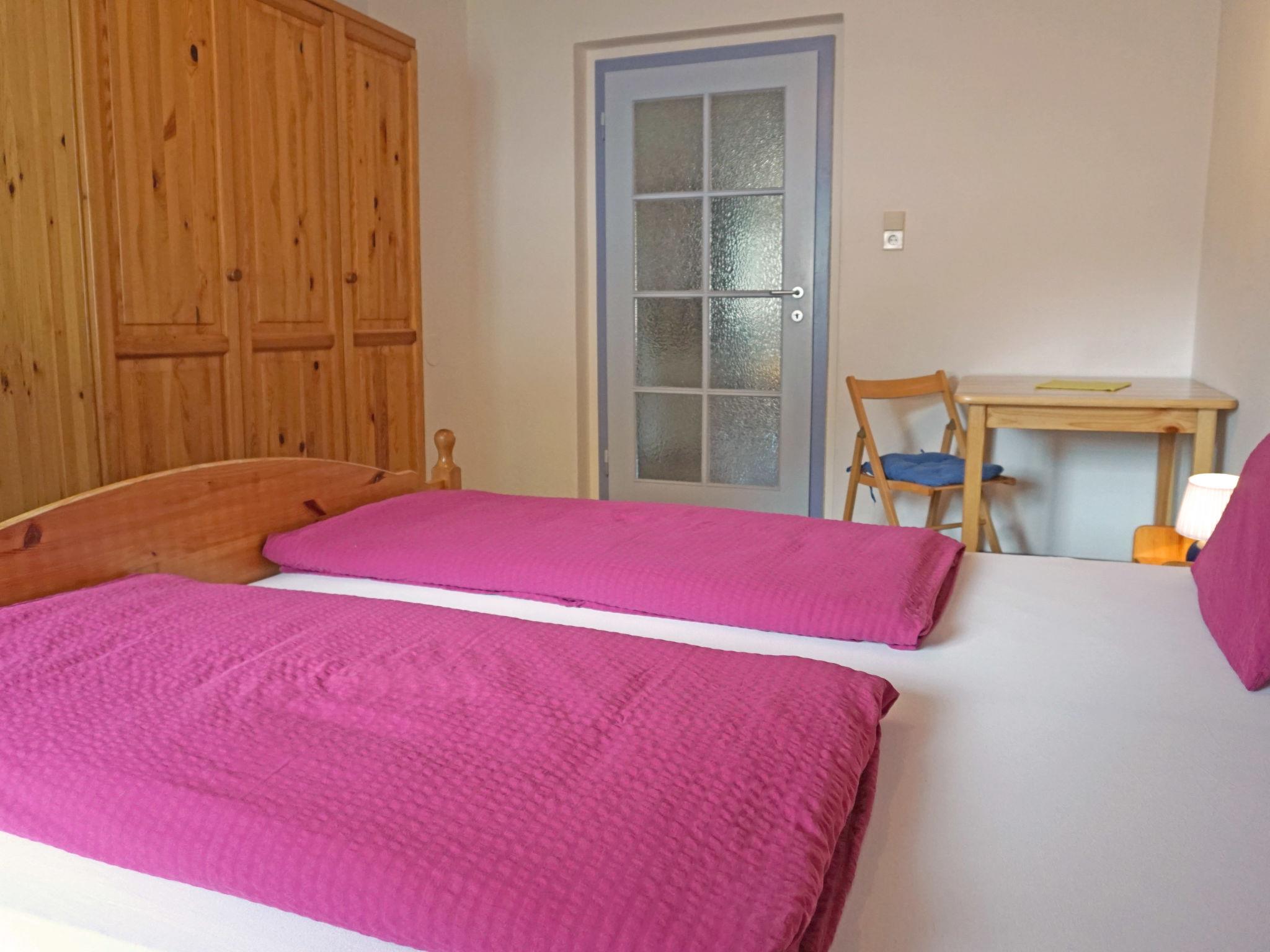 4-room apartment 80 m2 on 1st floor. Spacious, cosy furnishings: entrance hall. 2 double bedrooms. 1 room with 1 double bed (140 cm), cable TV (flat screen). Kitchen-/living room (oven, dishwasher, 4 ceramic glass hob hotplates, microwave, electric coffee machine) with dining nook and radio. Exit to the balcony. Bath/WC. Large balcony, south facing position and west facing position. Balcony furniture. Marvellous view of the mountains and the countryside. Facilities: hair dryer. Internet (WiFi, free). Please note: non-smokers only.