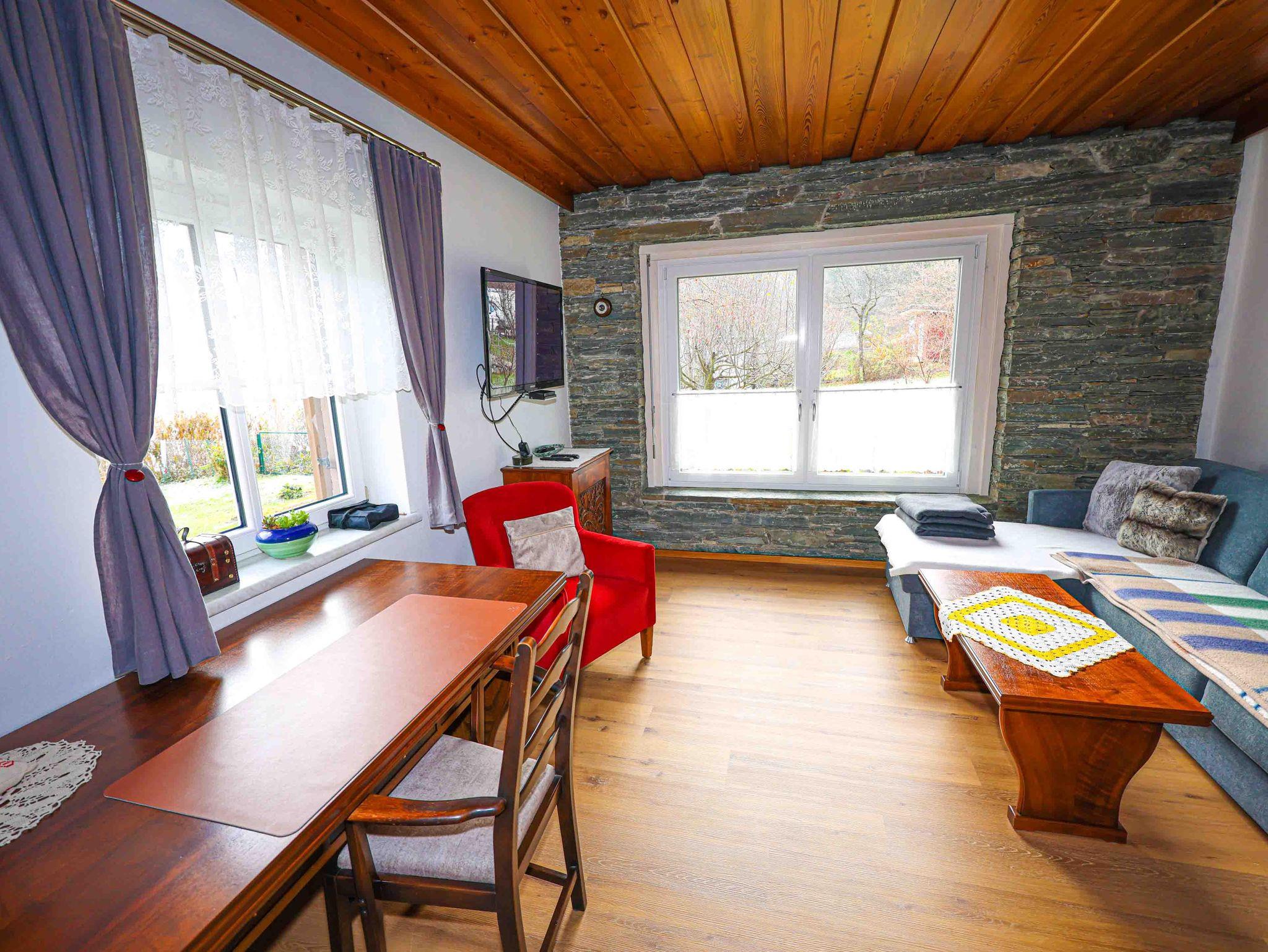 Das Haus am See verfügt über einen Vorraum mit Garderobe, eine komplett eingerichtete Küche mit Geschirrspüler, Cerankochfeld, Mikrowelle, Backrohr, Kühlschrank mit Gefrierkombi, Wasserkocher, Kaffee-Vollautomat, ein Esszimmer mit Esstisch, Stühlen und Sitzbank, ein Wohnzimmer mit Schlafsofa, 1 Schlafzimmer mit Doppelbett und 1 Schlafzimmer mit einem 1,20 Bett, 1 Badezimmer mit WC, Badewanne und Dusche und 1 separates WC mit Waschbecken. Ausgestattet ist das ebenerdige Ferienhaus mit 2 Fernsehern mit SAT-Anschluss, Radio, Wlan, Haarföhn, Staubsauger, Bodenheizung und Vinylboden bzw. Fliesen. Zwei kostenlose Parkplätze stehen direkt vor dem Haus zur Verfügung.