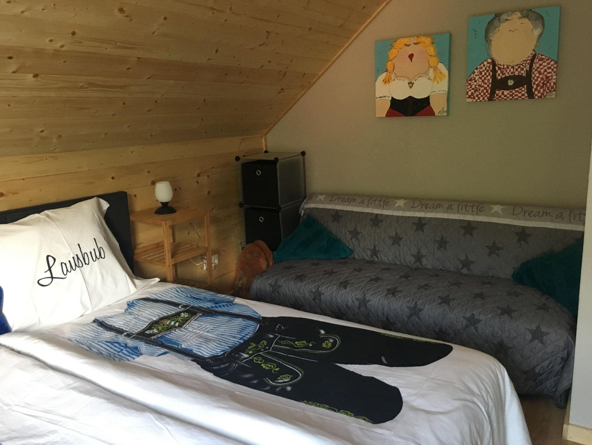 Wohnung mit viel Holzdetails. 2 Schlafzimmer mit jeweils Doppelbett und Schlafcouch. Komplett eingerichtete Küche mit Eckbank. Badezimmer mit Dusche und WC. Extra WC. Balkon und kleine Terrasse. Wohnzimmer mit Esstisch und große Schlafcouch und Sat-Fernseher. WLan vorhanden. Terrasse mit Pavillon und BBQ im 1. Stock ist auch für Gäste von oberer Wohnung zu benützen. Parkplatz gegenüber des Hauses. Eigener Seezugang am Privatstrand von Haus Bichl.