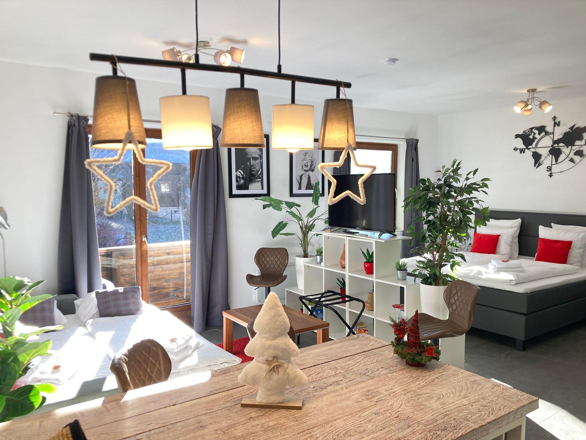 • Stilvolle Apartments & Zimmer mit Balkon oder Terrasse – ausgestattet mit bequemen Boxspringbetten und Smart-TVs mit Streamingoptionen