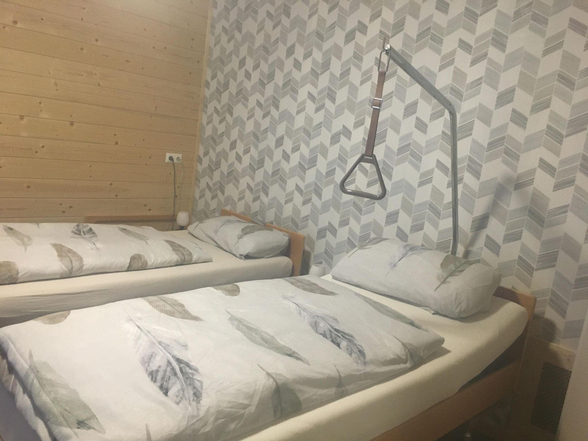 In Juni 2022 fertig gestellte behindertengerechte/barrierefreie Bungalows für Jedermann. Ob für Familien, Senioren oder Behinderte- sie sind für alle geeignet. Fischen im Rollstuhl möglich. Direkter Zugang zum Privatstrand mit Geländer, um in den See zu kommen. See ist nicht gleich tief, die ersten paar Meter sind seicht. Bungalow 1 bietet Platz für max. 8 Personen und Bungalow 2 und 3 sind beide geeignet für 6 Personen. Auch Gruppenferien sind möglich. Haus 2 und 3 können mit einander gekoppelt werden. Jeder Bungalow hat ein behindertengerechtes Badezimmer und Schlafzimmer. In Bungalow 1 gibt es noch 2 Doppelzimmer extra und in Bungalow 2 und 3 ist jeweils ein Doppelzimmer und ein kleineres Zimmer mit Stockbett vorhanden. Man kann mit Hoch-niederig Betten direkt auf die Terrasse fahren. Viel Platz zum Leben. Der Strand wird von alle Gäste benützt. Eislaufplatz vor der eigenen Haustür. Kurz gesagt - für Jedermann ist etwas dabei. Waschmachinebenützung nur auf Anfrage und gegen Gebühr möglich. In der Bungalow ist kein Waschmachine.