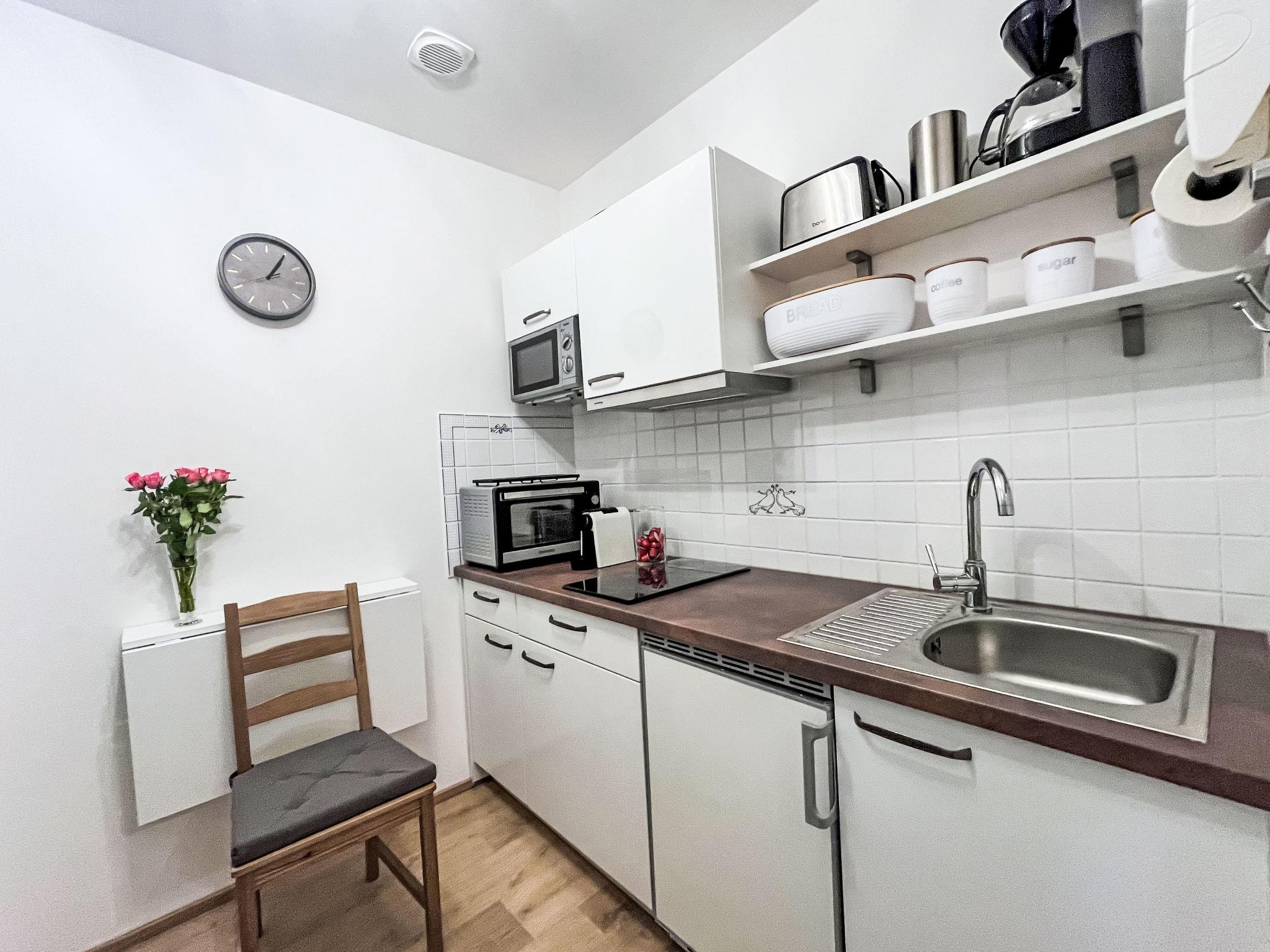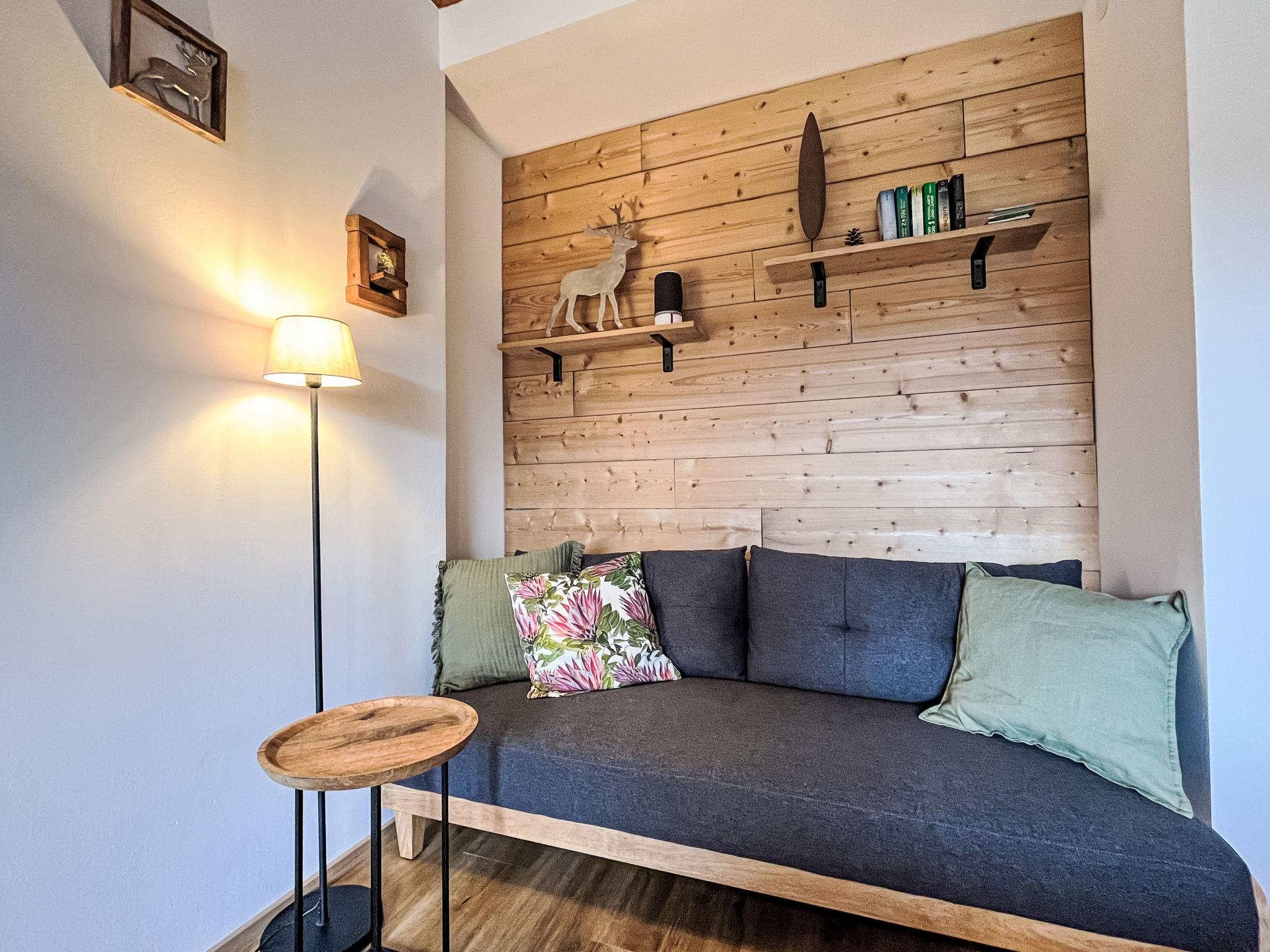 "Wolf", 1-room apartment 33 m2, on the upper ground floor. Object suitable for 2 adults + 1 child. Renovated in 2024: living/sleeping room with 1 sofabed, 1 double bed, dining table, satellite TV and international TV channels (flat screen). Exit to the loggia. Small kitchen (mini-oven, oven, 2 ceramic glass hob hotplates, toaster, kettle, microwave, electric coffee machine, Capsules for coffee machine (Nespresso) extra). Shower/WC. Heating. Parquet floors. Balcony. Balcony furniture. Facilities: Internet (WiFi, free). Please note: non-smokers only.