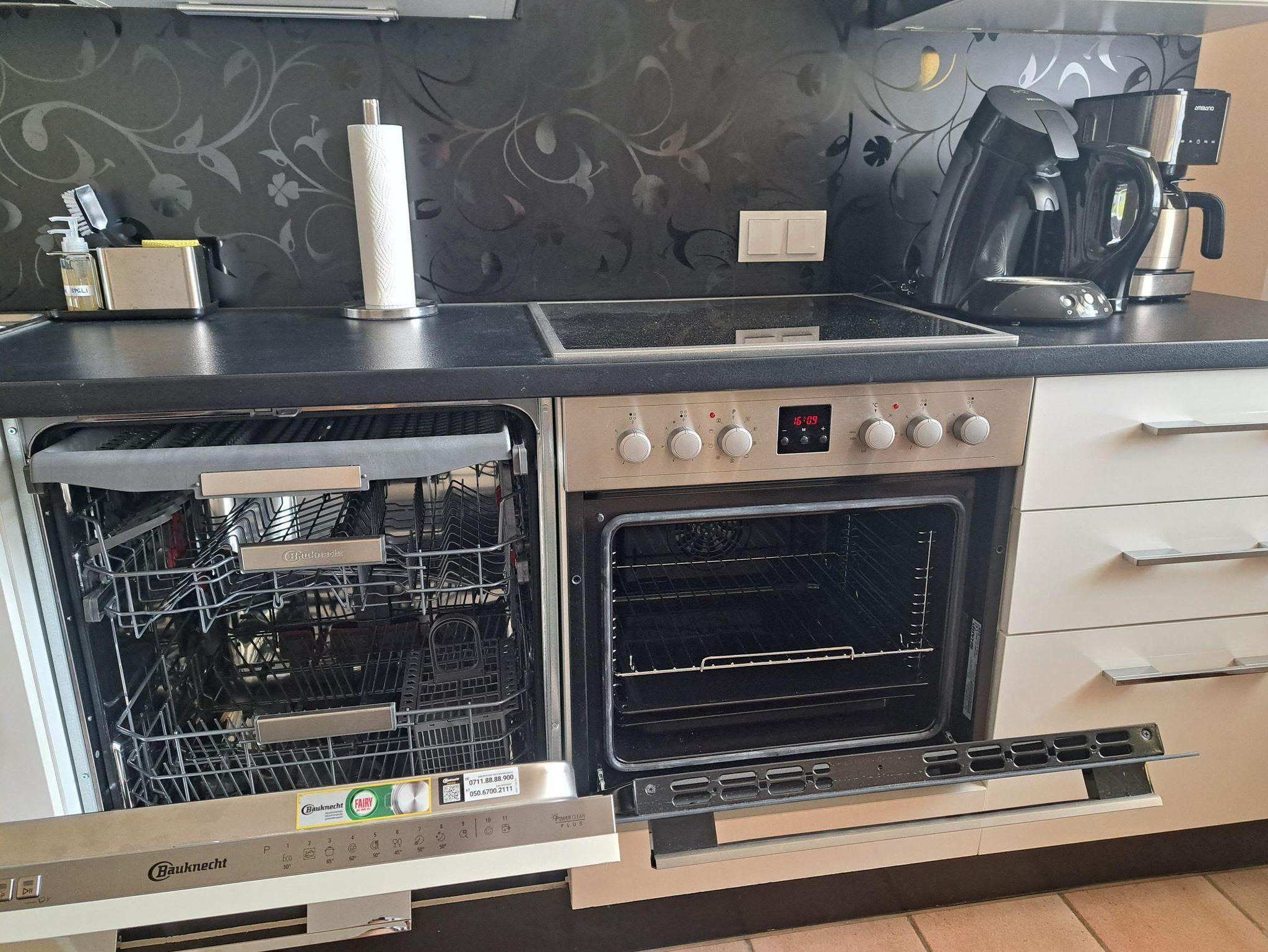 • voll ausgestattete Küche inkl. leisem Geschirrspüler, Backofen, Kühl/TK-Kombination, Kaffeemaschine, Toaster, Wasserkocher, Wäscheständer, Bügeleisen/-brett