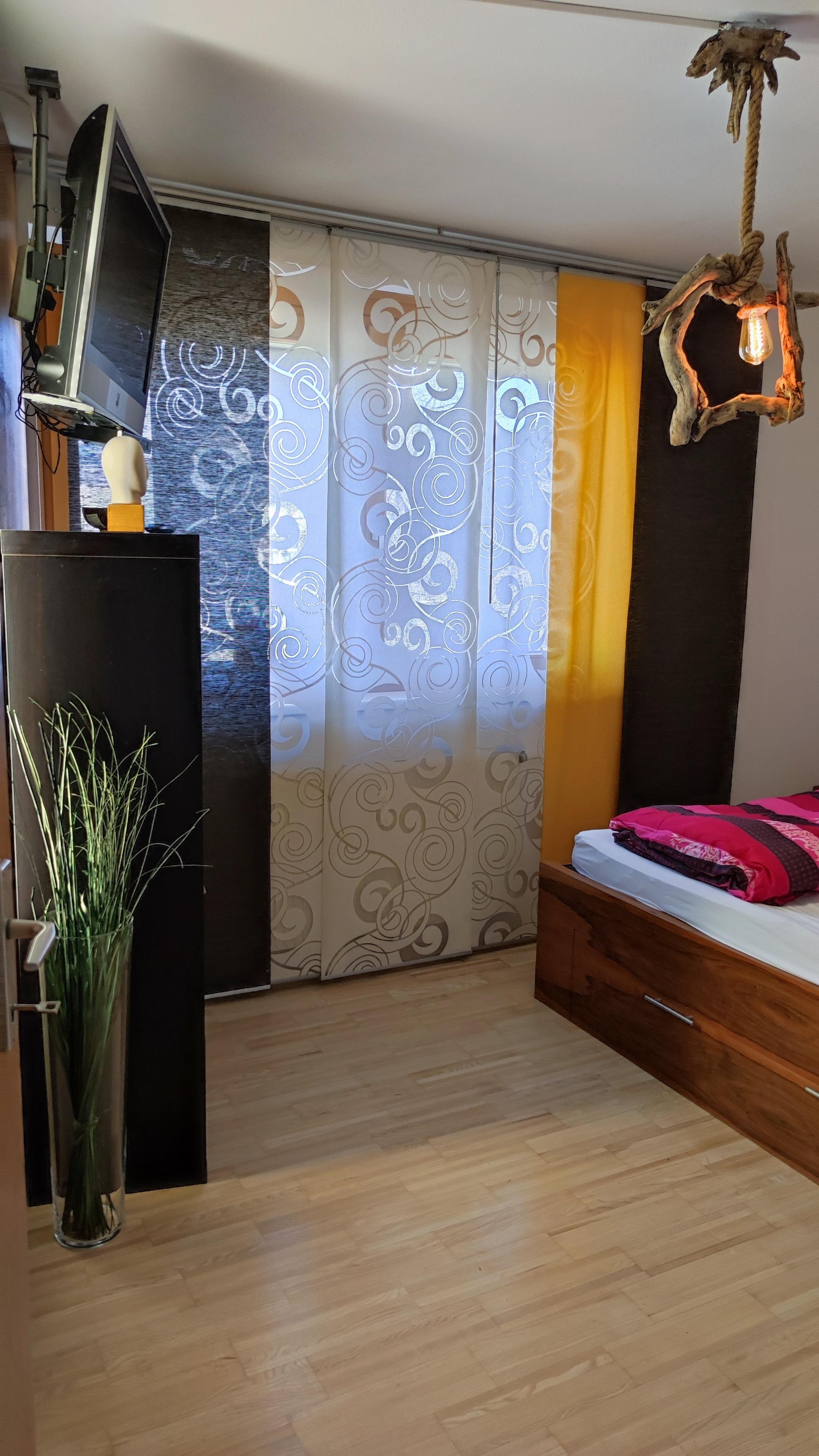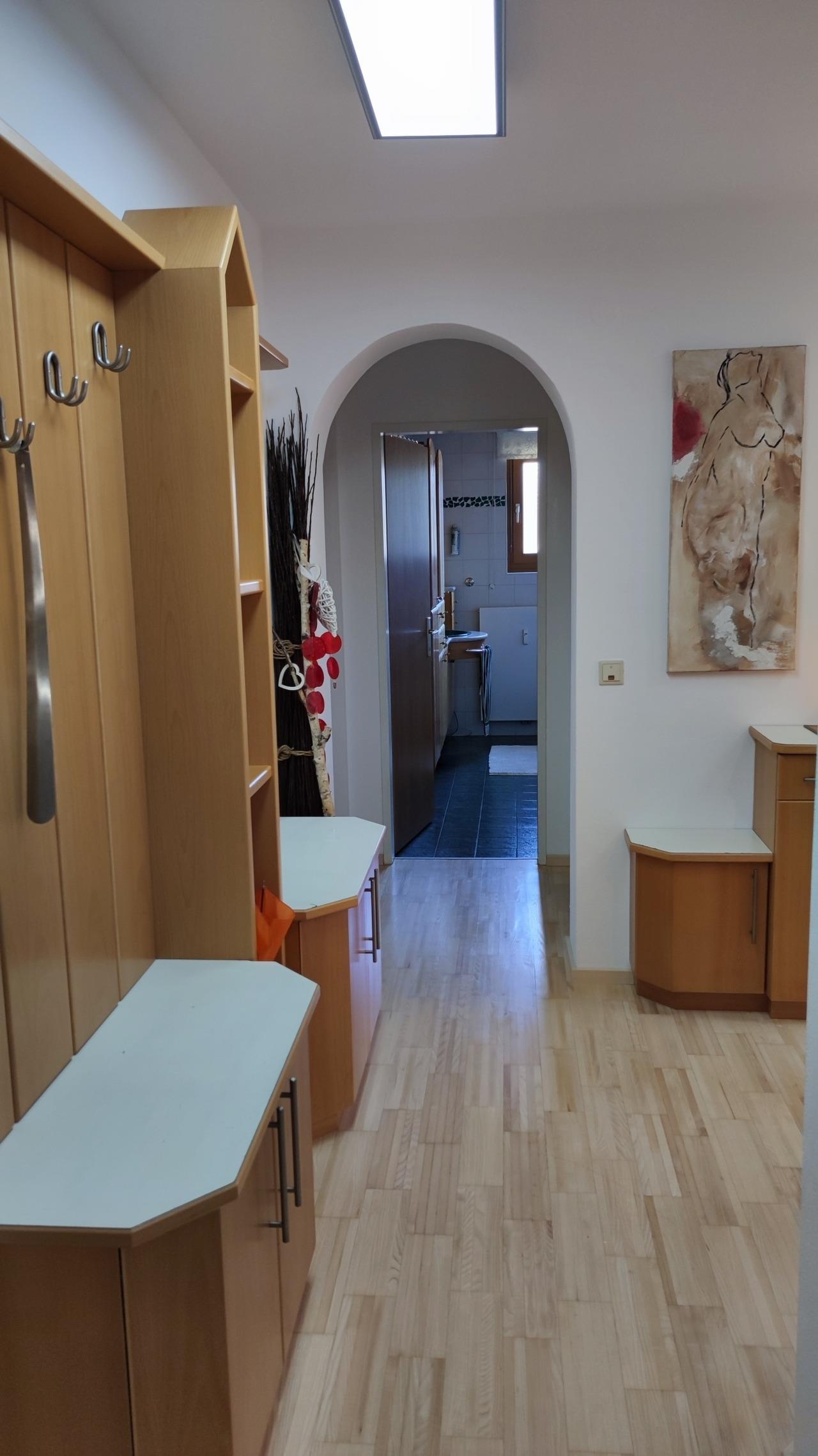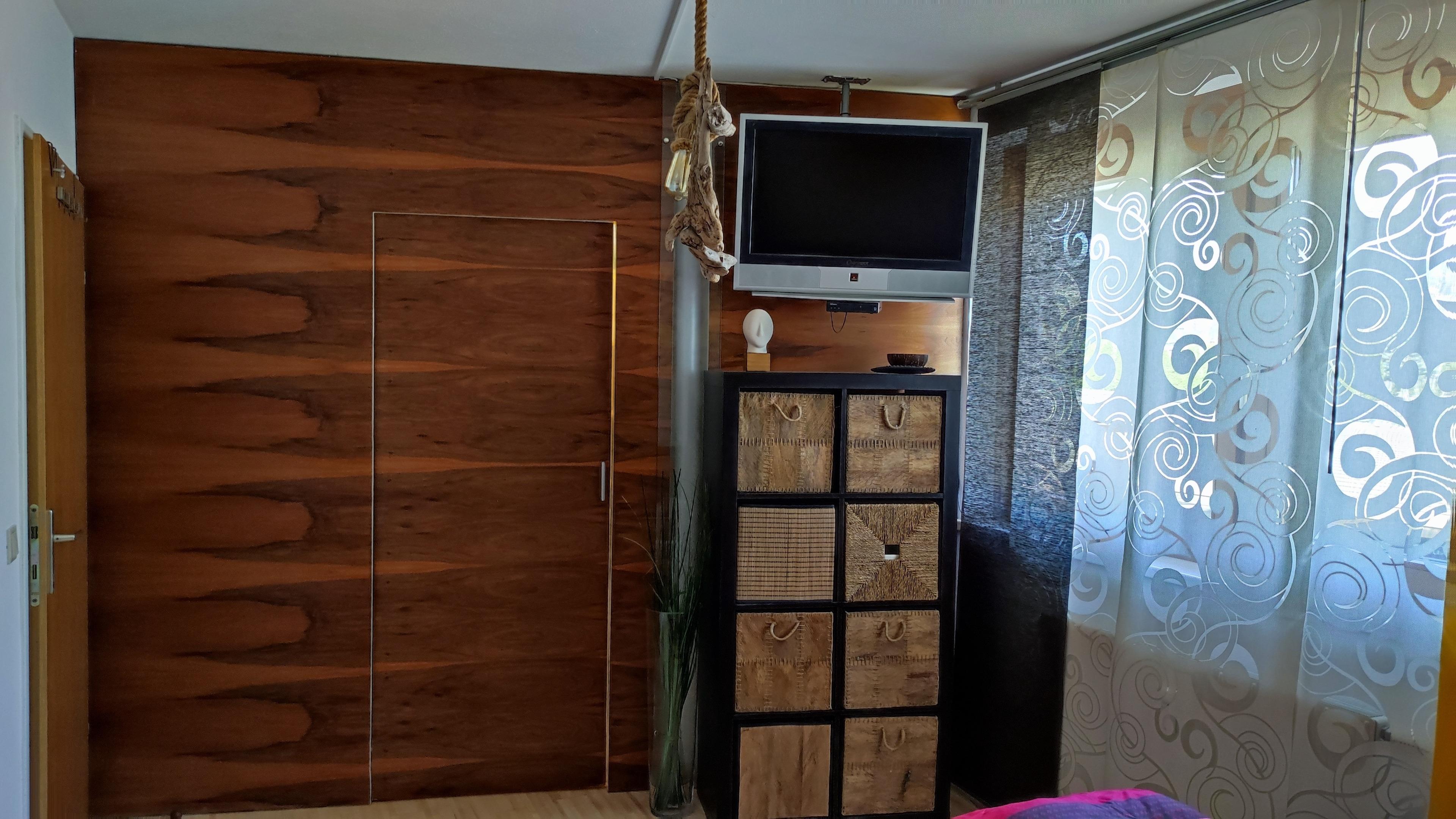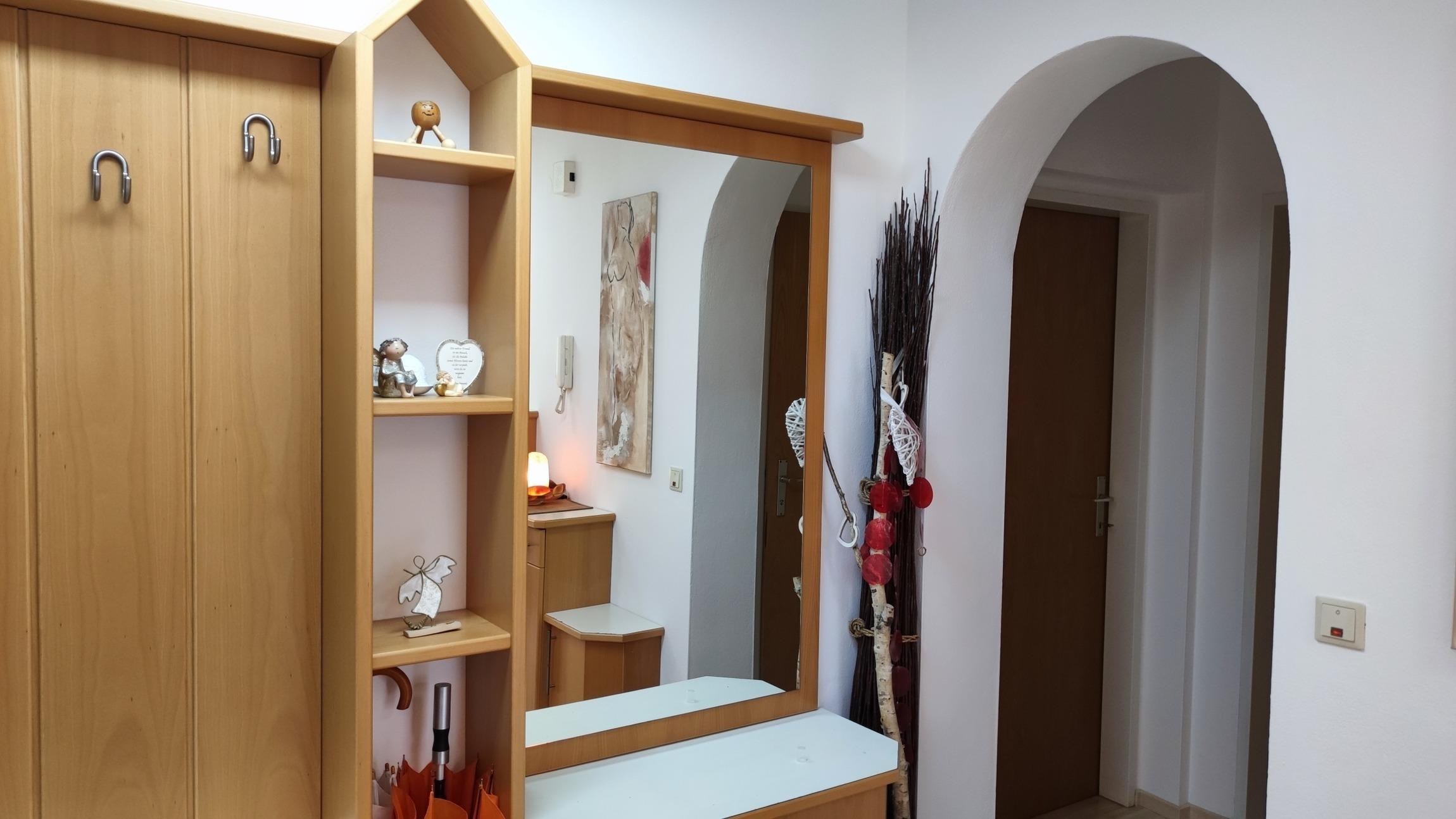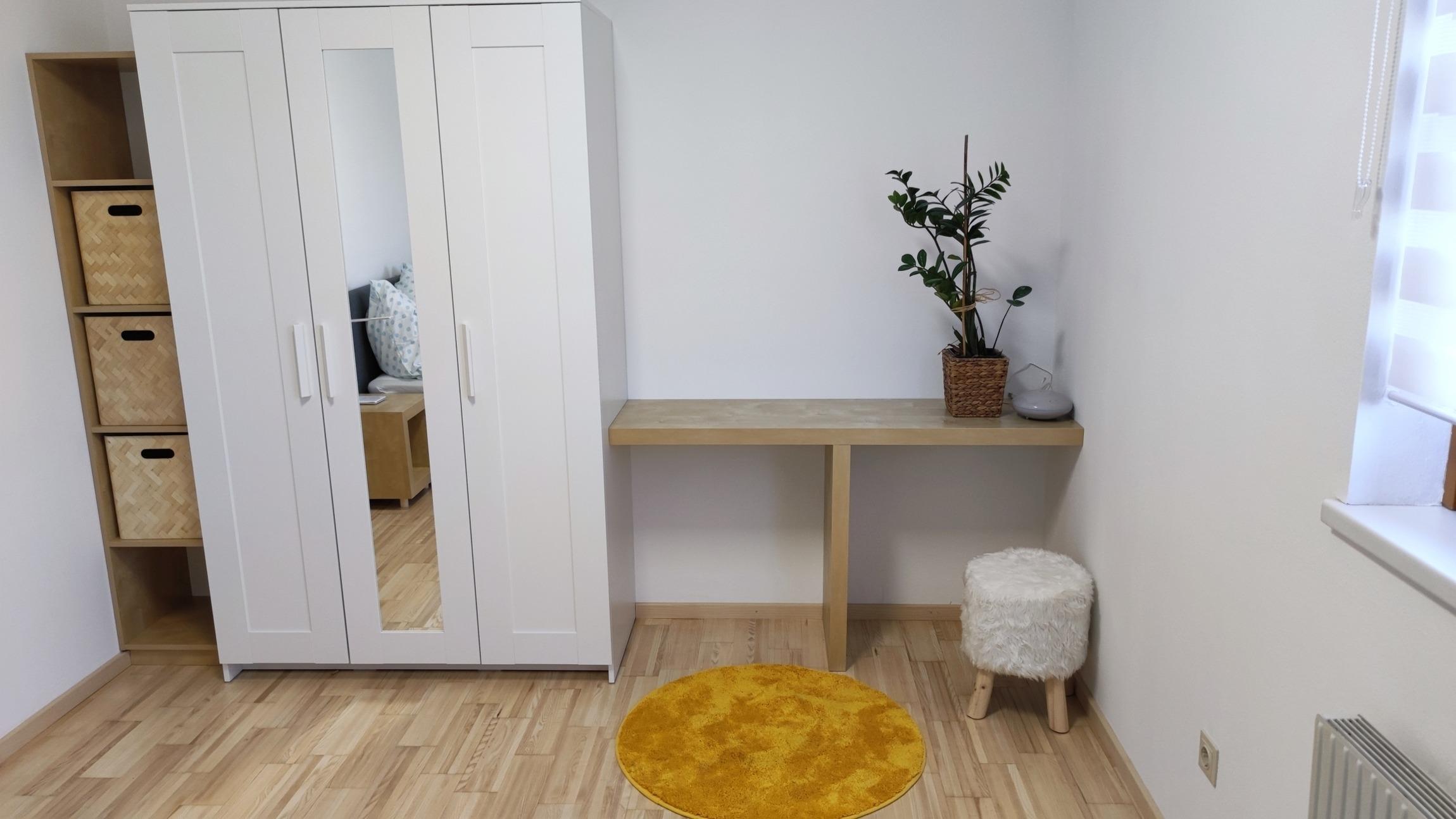 Es gibt ein Schlafzimmer mit einem Fernseher, begehbaren Schrank und Wasserbett (180x200) und ein kleineres Schlafzimmer mit einem Bett der Größe 140x180. Der Wohnraum bietet eine Couch und einen Ruhesessel. Alle drei Räume bieten genügend Platz für die Kleidung und den persönlichen Besitz. Der Vorraum bietet für Schuhe und Jacken auch genügend Platz, sowie im Badezimmer ist genügend Stauraum vorhanden. Das Badezimmer ist mit einer Badewanne und eine Möglichkeit zum Duschen ausgestattet. Natürlich fehlt auch die Waschmaschine nicht. Die Speisekammer kann mitbenützt werden. Die Küche ist mit einem Kühlschrank+Gefrierschrank, Herd, Mikrowelle, Nesspresso Kapselmaschine, Brotschneidemaschine und einem Geschirrspüler ausgestattet. Die Wohnung verfügt über eine WLAN-Verbindung. Öl, Pfeffer, Salz etc. sowie Waschpulver, Föhn, Bügeleisen sind für die Grundbedürfnisse vorhanden.