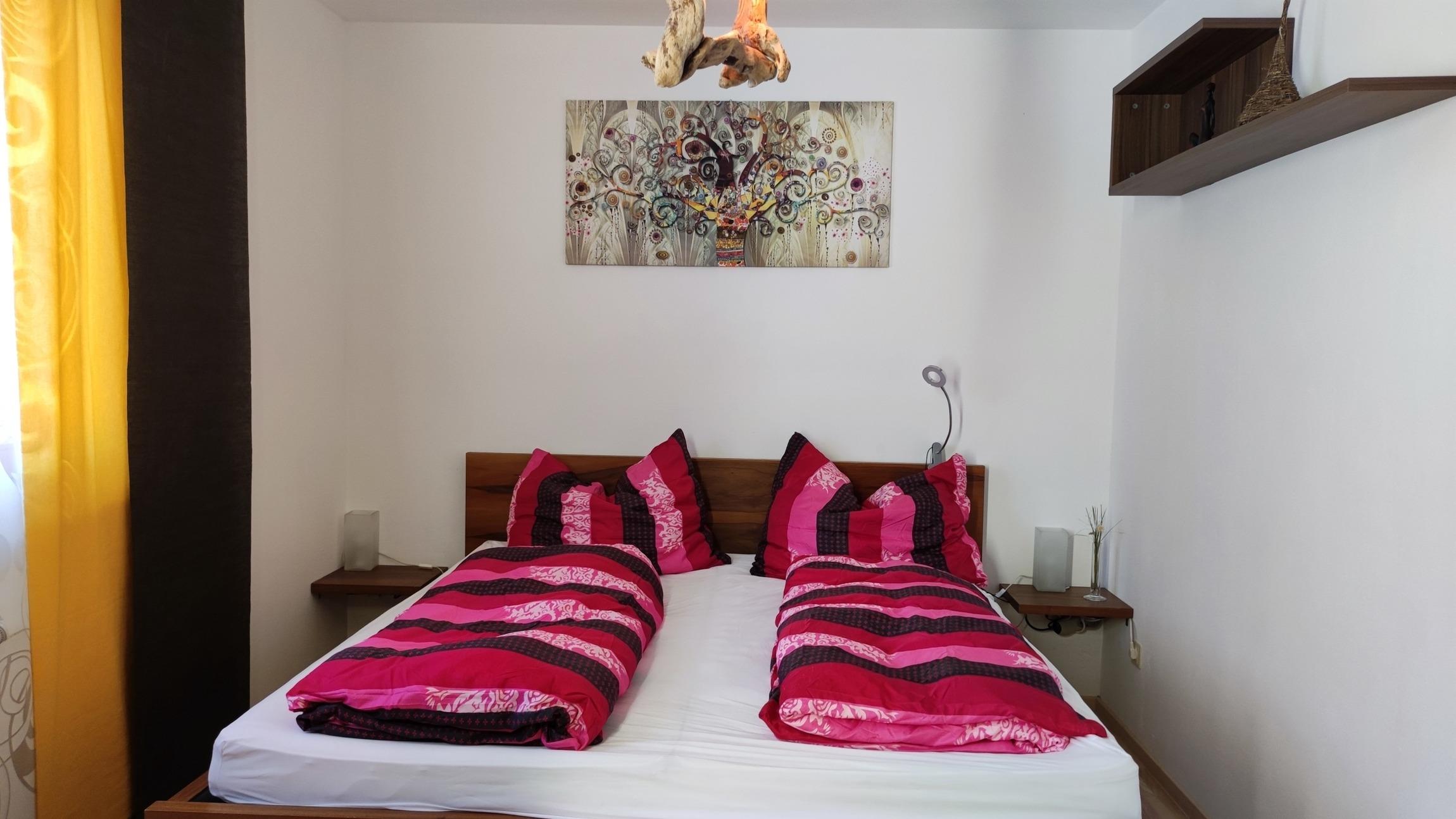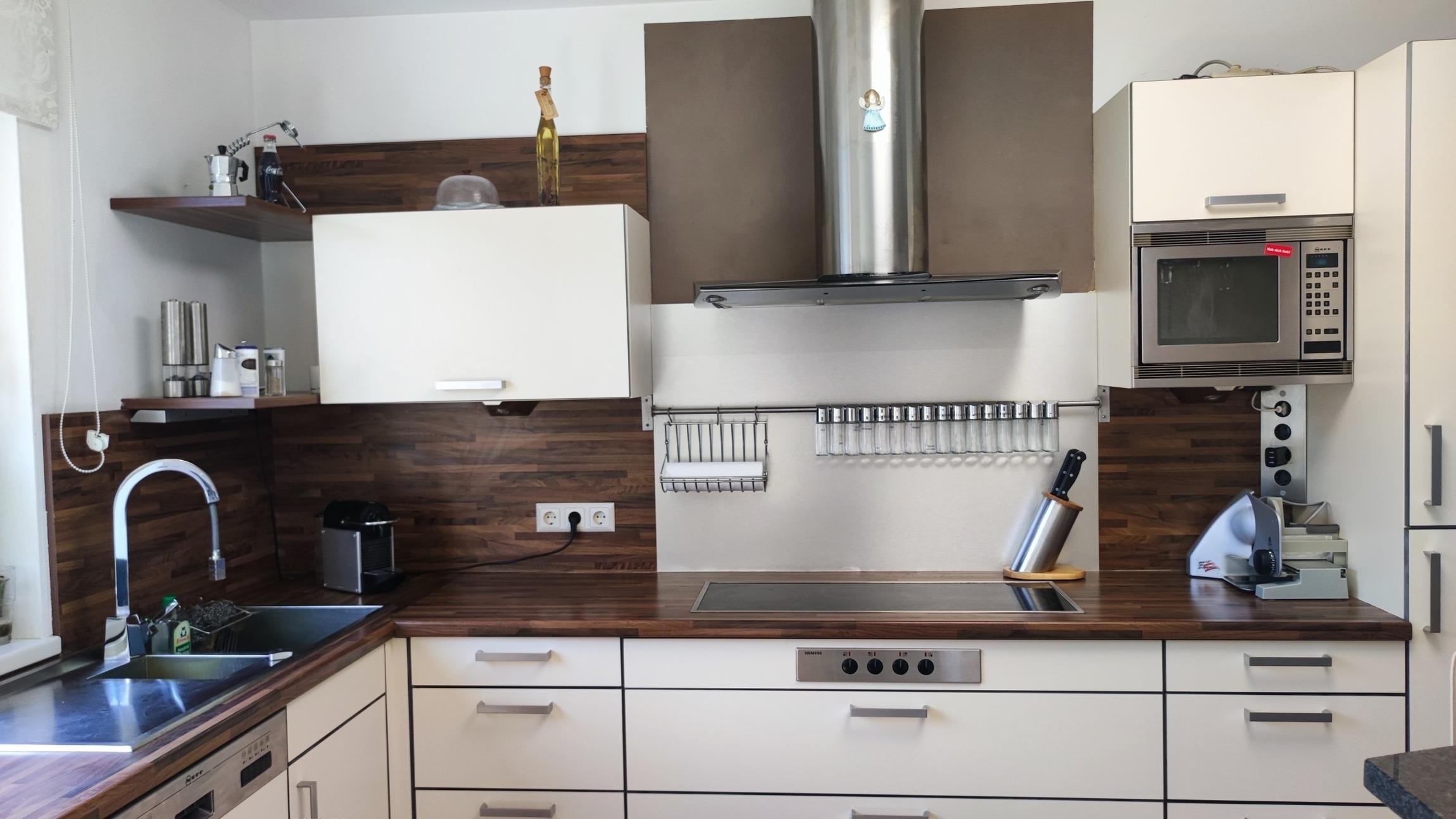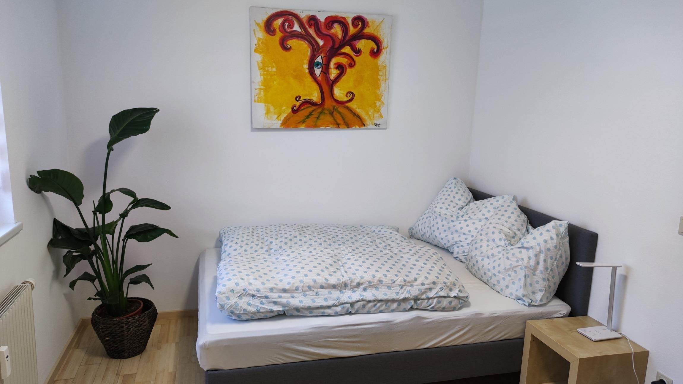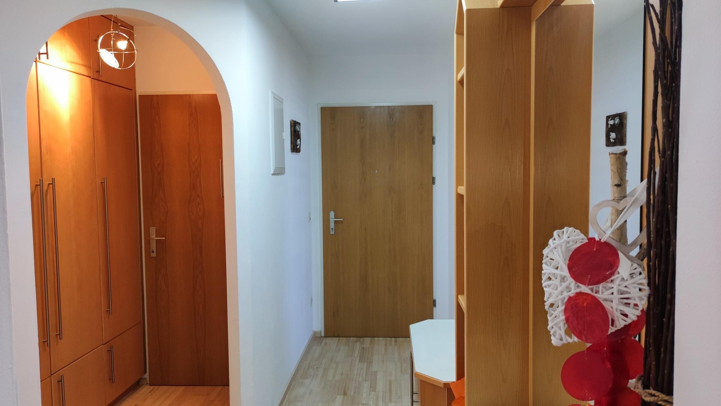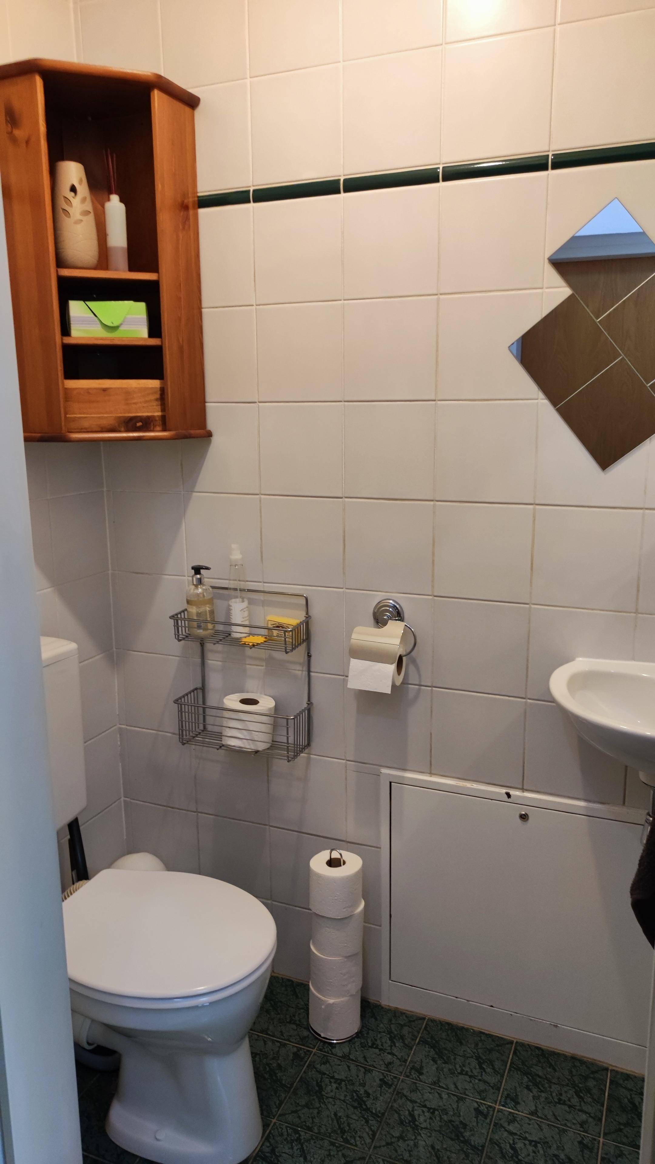 Es gibt ein Schlafzimmer mit einem Fernseher, begehbaren Schrank und Wasserbett (180x200) und ein kleineres Schlafzimmer mit einem Bett der Größe 140x180. Der Wohnraum bietet eine Couch und einen Ruhesessel. Alle drei Räume bieten genügend Platz für die Kleidung und den persönlichen Besitz. Der Vorraum bietet für Schuhe und Jacken auch genügend Platz, sowie im Badezimmer ist genügend Stauraum vorhanden. Das Badezimmer ist mit einer Badewanne und eine Möglichkeit zum Duschen ausgestattet. Natürlich fehlt auch die Waschmaschine nicht. Die Speisekammer kann mitbenützt werden. Die Küche ist mit einem Kühlschrank+Gefrierschrank, Herd, Mikrowelle, Nesspresso Kapselmaschine, Brotschneidemaschine und einem Geschirrspüler ausgestattet. Die Wohnung verfügt über eine WLAN-Verbindung. Öl, Pfeffer, Salz etc. sowie Waschpulver, Föhn, Bügeleisen sind für die Grundbedürfnisse vorhanden.