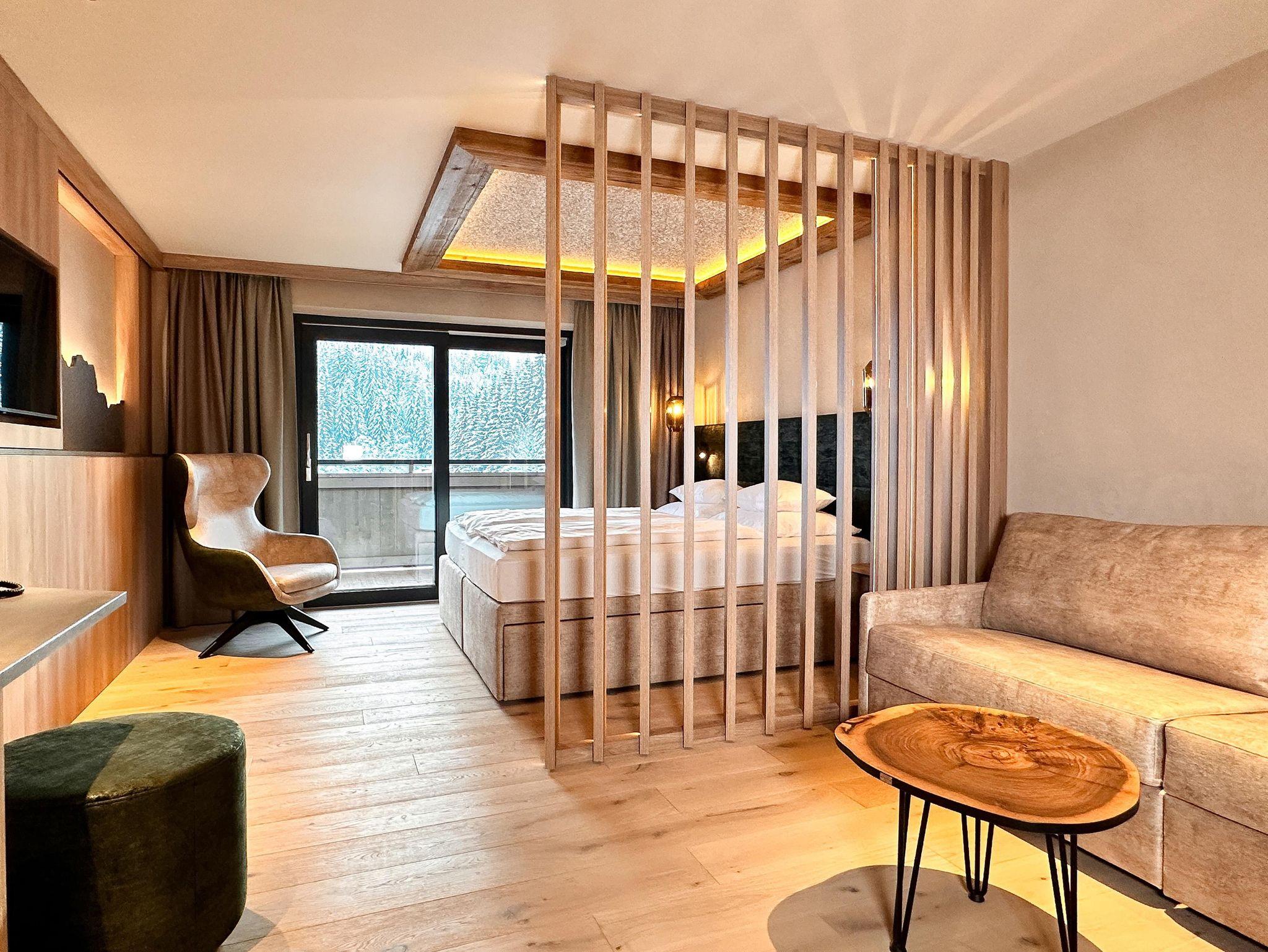 Appartement Torstein - für 4 - 6 Personen. 60 qm groß, mit einer Wohn-Schlafkombination u. 2 separatem Schlafzimmer. Gratis W-Lan, Balkon, Flat-TV in jedem Zimmer. Mit HP-Plus und sämtlicher Hotelleistungen - weitere Infos unter www.alpenhof.com