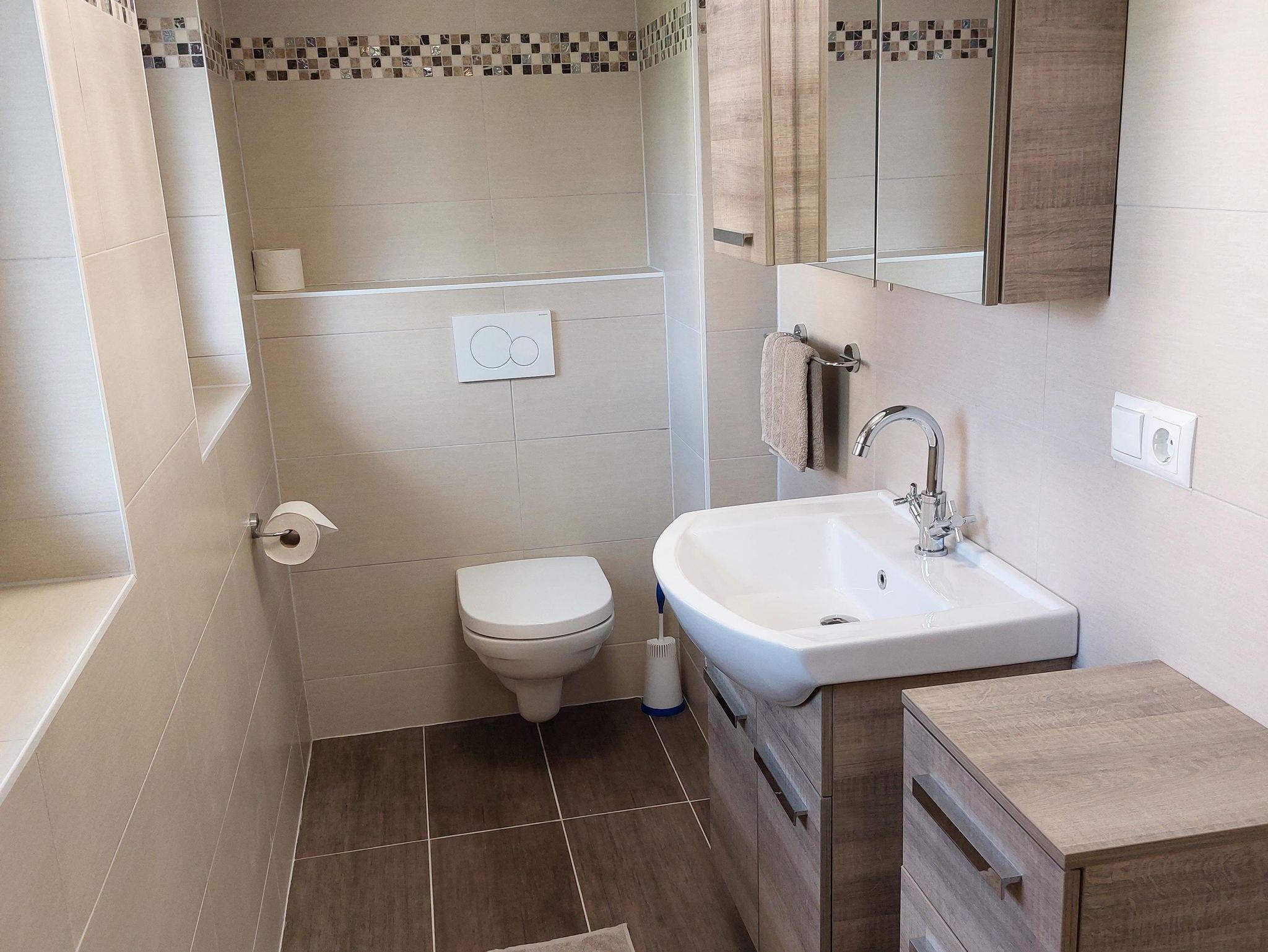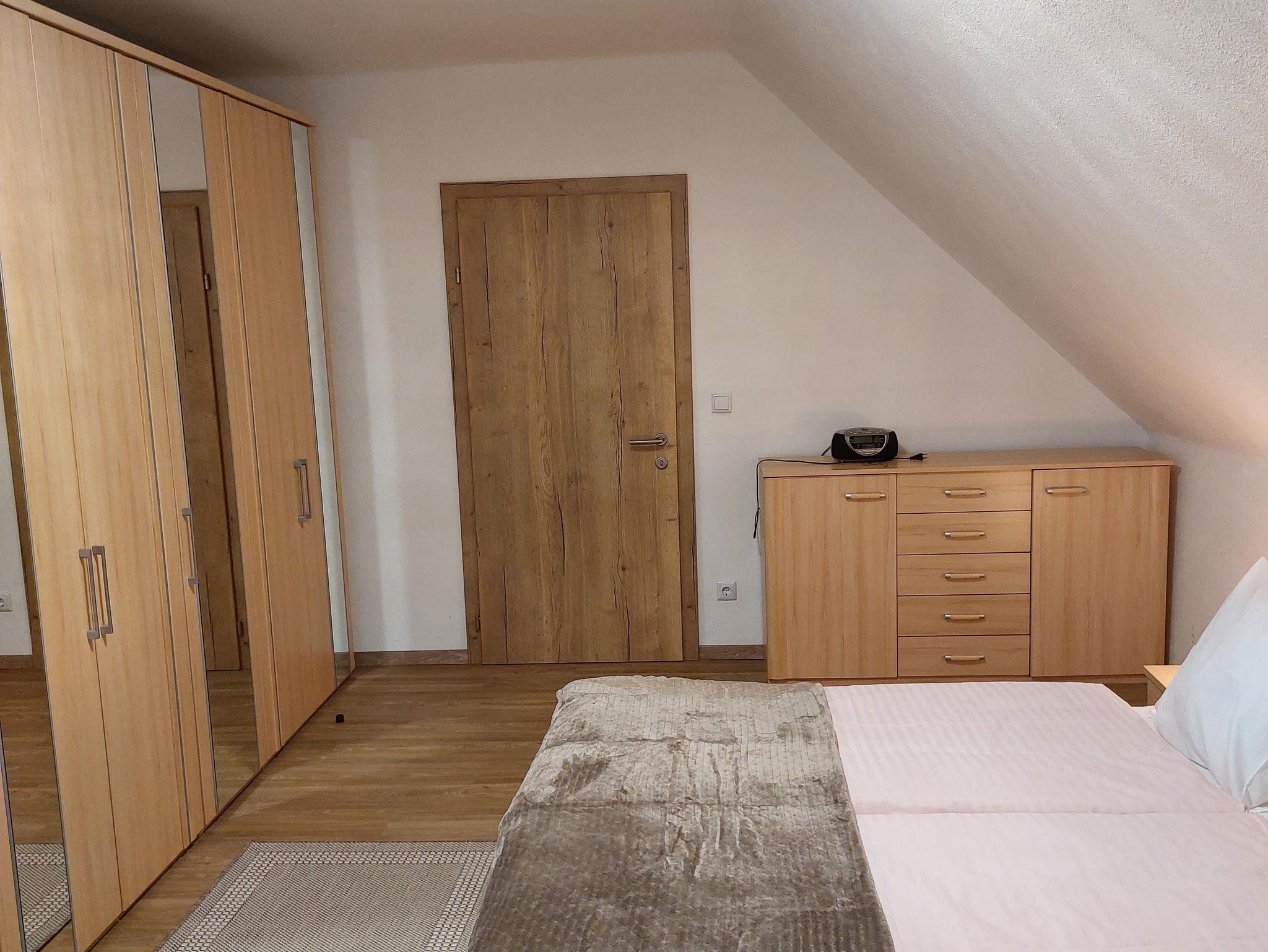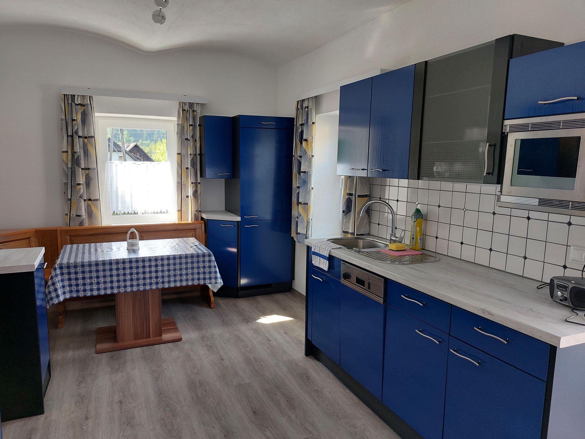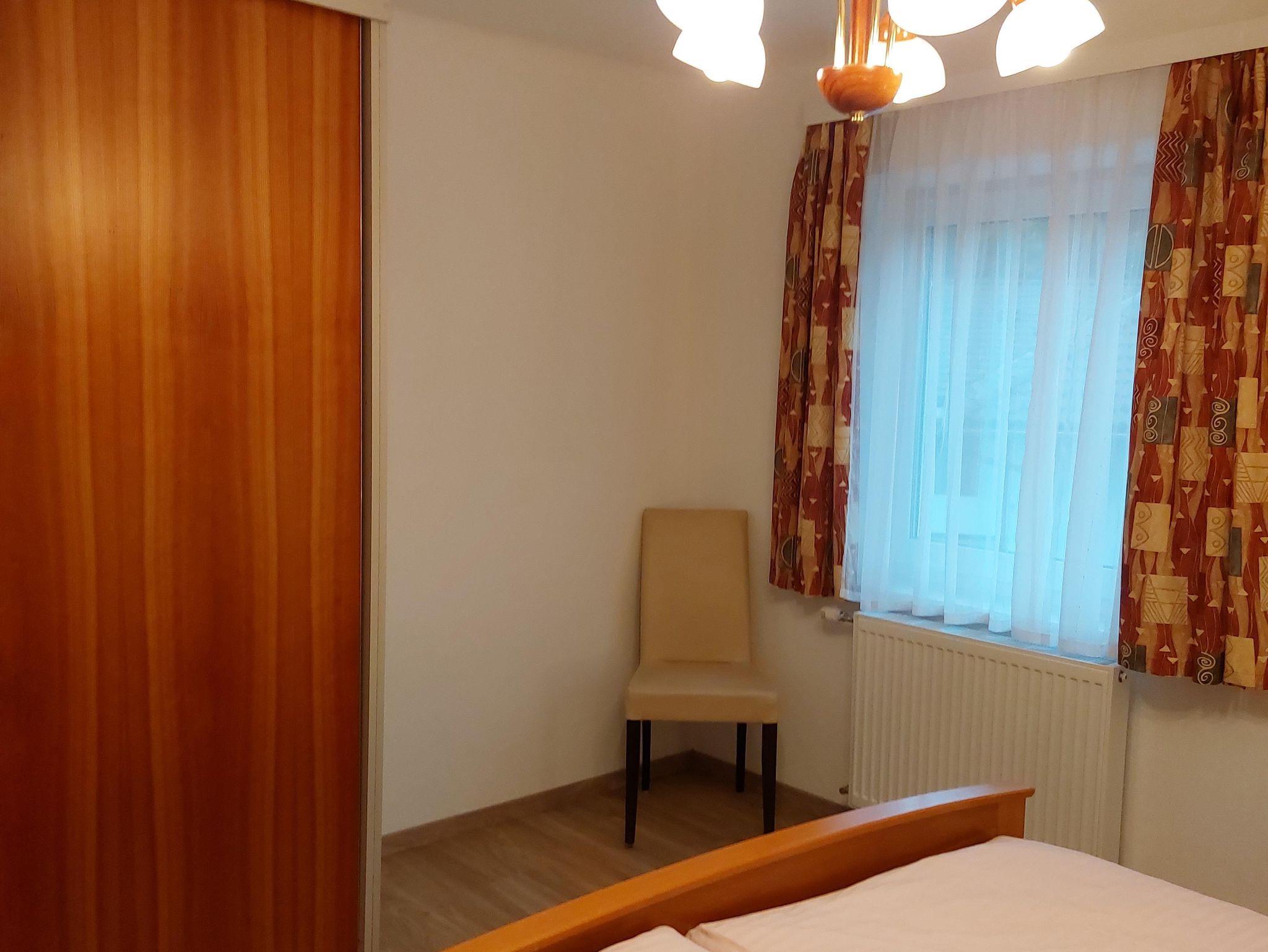Die Ferienwohnung 1 mit 95 m² befindet sich im zweiten Stock mit separaten Zugang (Außenstiege) und hat einen kleinen Balkon mit Tisch und Sessel.