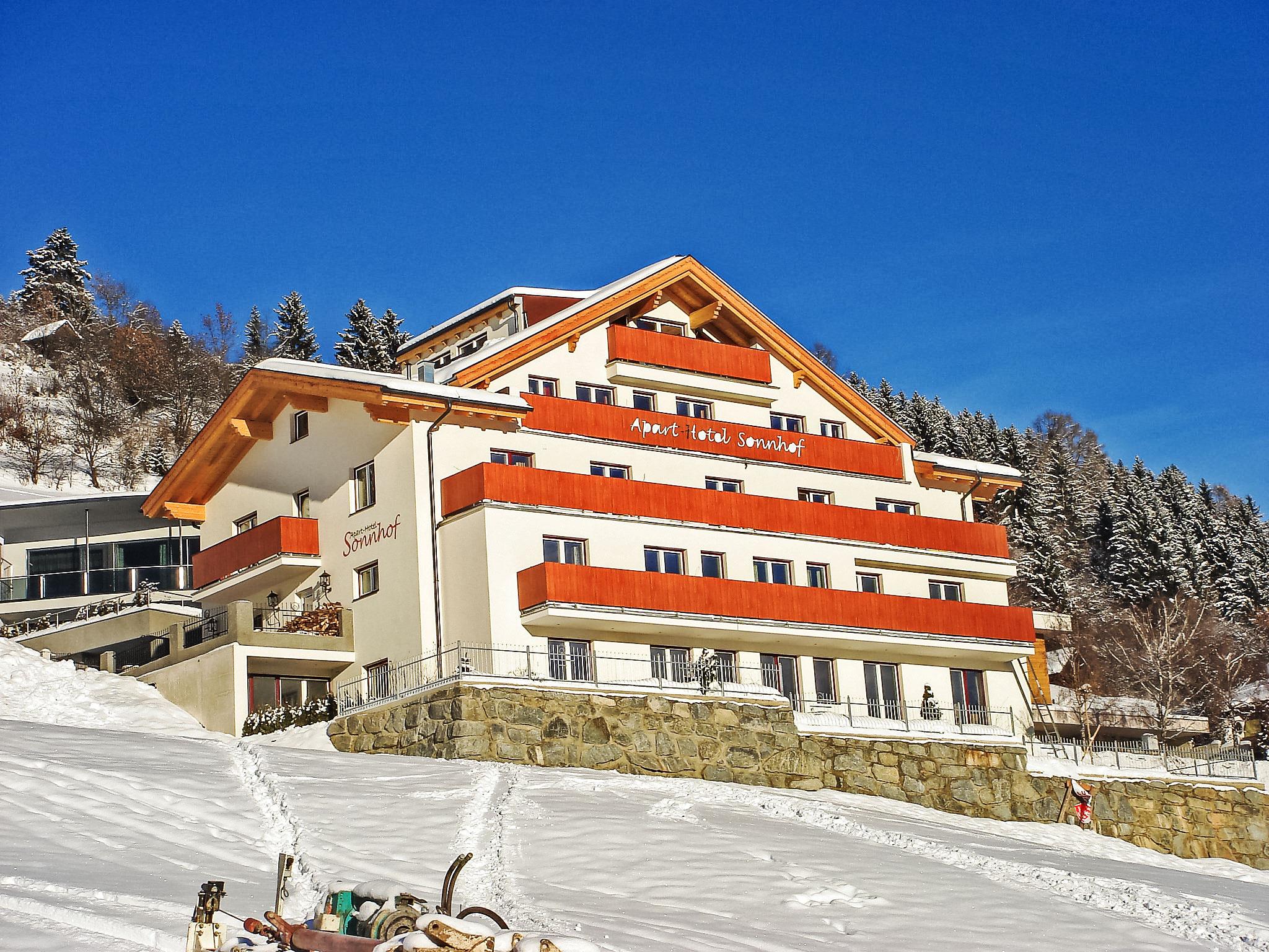 Ladis: Child friendly, comfortable aparthotel "Ladis". In a central, quiet, sunny position on a slope, 1 km from the lake, 100 m from the skiing area. In the house: reception, restaurant, WiFi, lift, storage room for skis, central heating system. Towel change weekly. Bread roll service. Parking at the house. Grocery 300 m, bus stop 100 m, outdoor swimming pool 3 km, bathing lake 1 km. Ski lift, gondola lift, ski school 100 m, cross country ski track 6 km. Well-known ski regions can easily be reached: Serfaus-Fiss-Ladis. Please note: Additional accommodations can be booked. Wellness: steam bath, sauna, infrared cabin - wellness area opening times 2-3 times a week as posted on site (closed May to November). Pizzeria in the building. Please note: only 1 parking space per apartment.