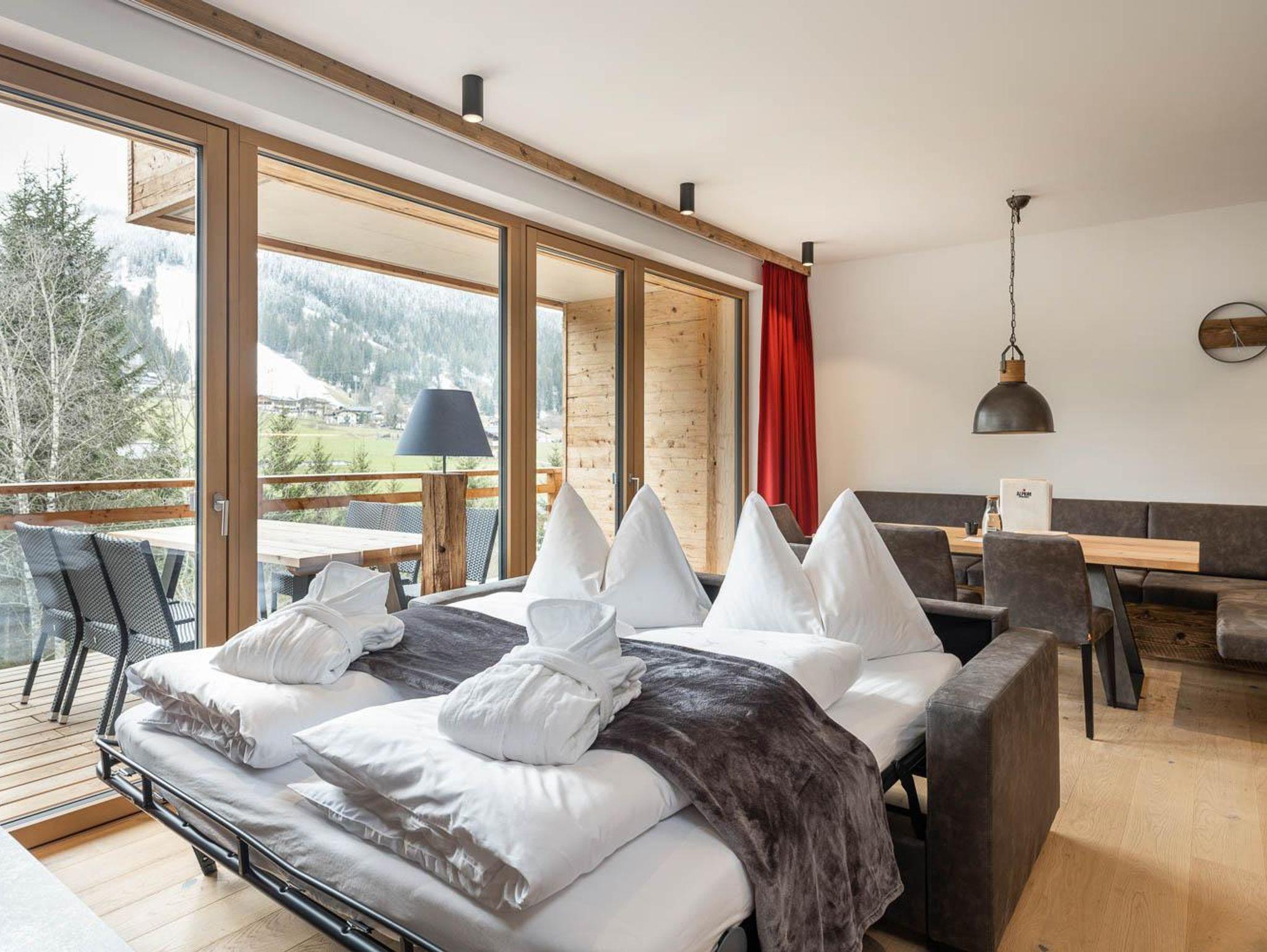 ALPIUM-APPARTEMENTS. ALPIUM ist neu, ALPIUM ist außergewöhnlich - Genießen Sie einen luxuriösen Urlaub in Flachau, im Salzburger Land - Sommer wie Winter. Einkaufsmöglichkeiten, Restaurants & andere Highlights erreichen Sie fußläufig. Die Ski-Busse starten direkt vor der Haustüre. Der Shuttleservice vom/zum Airport Salzburg startet ebenfalls gegenüber. Ein unverbauter Blick vom Balkon auf die Weltmeisterabfahrt und das Panorama erfreuen Sie jeden Tag. Die Skiausrüstung steht sicher im Skiraum in einzelnen Skisafes. Die Tiefgargae ist großzügig dimensioniert und optional gibt´s 3 Ladesäulen für eAutos.