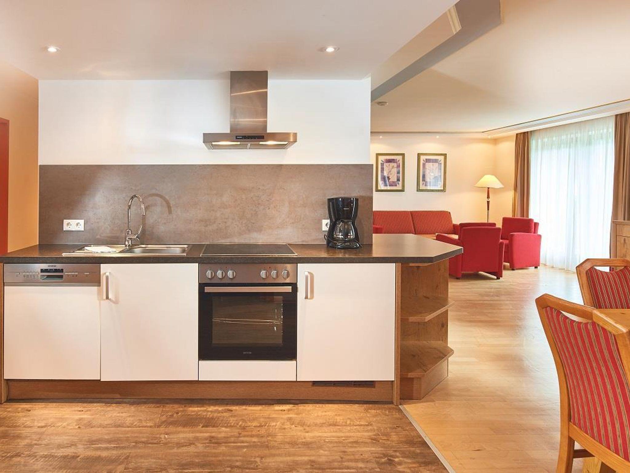 1 Wohnraum mit doppelbettig ausziehbarer Couch, komplett eingerichtete Ferienküche, Flachbildschirm, Wifi, Safe, Telefon, 2 Schlafzimmer mit Doppelbett, 1 Schlafzimmer mit Familienbett, 1 Kinder-Schlafzimmer für 4 Kinder, 2 Bäder mit getrennten WC`s.