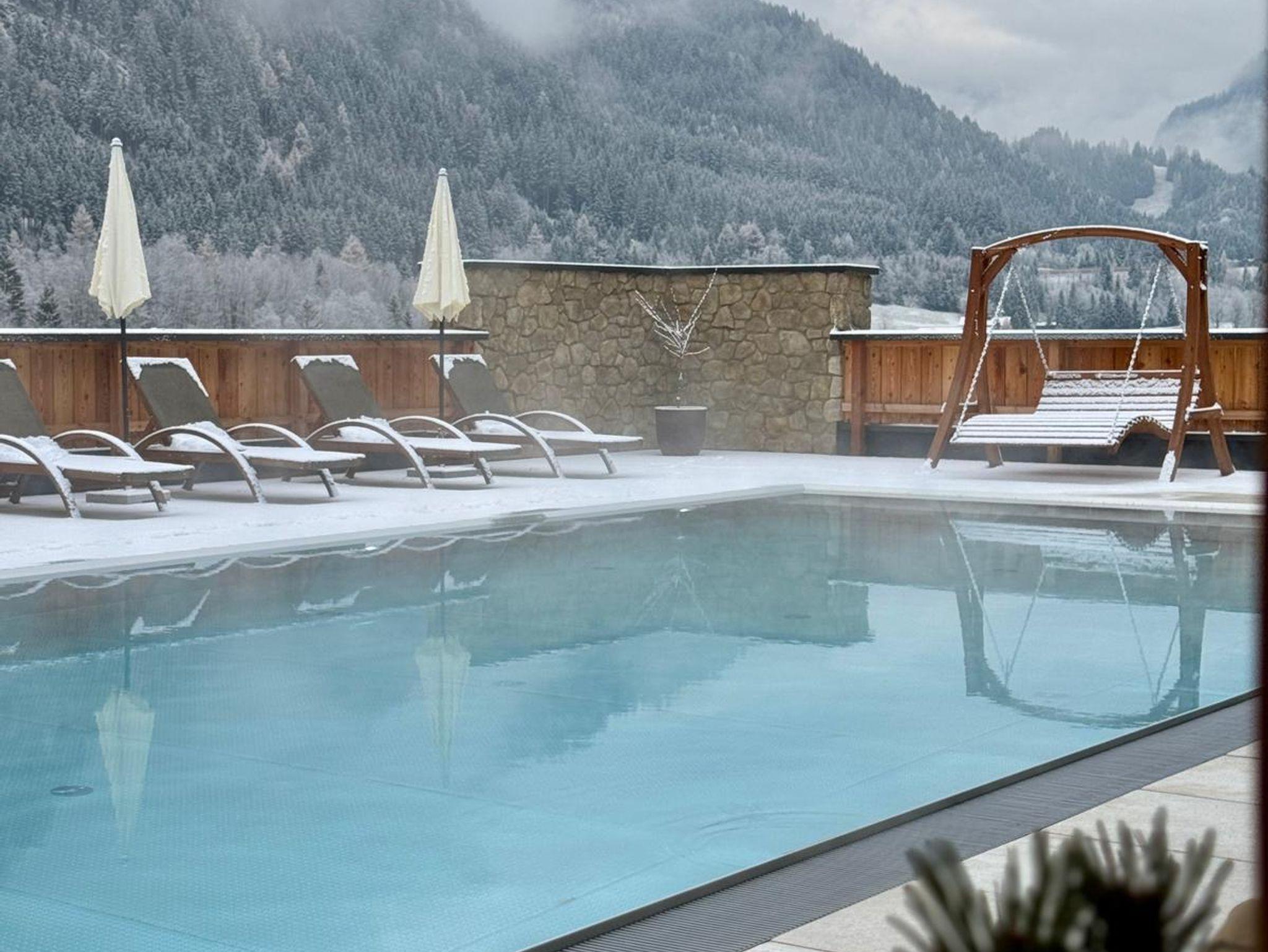 Wellness & Entspannung Unser neuer Wellnessbereich mit zwei Saunen, beheiztem Outdoor-Pool und einem Ruheraum lädt zum Relaxen ein.