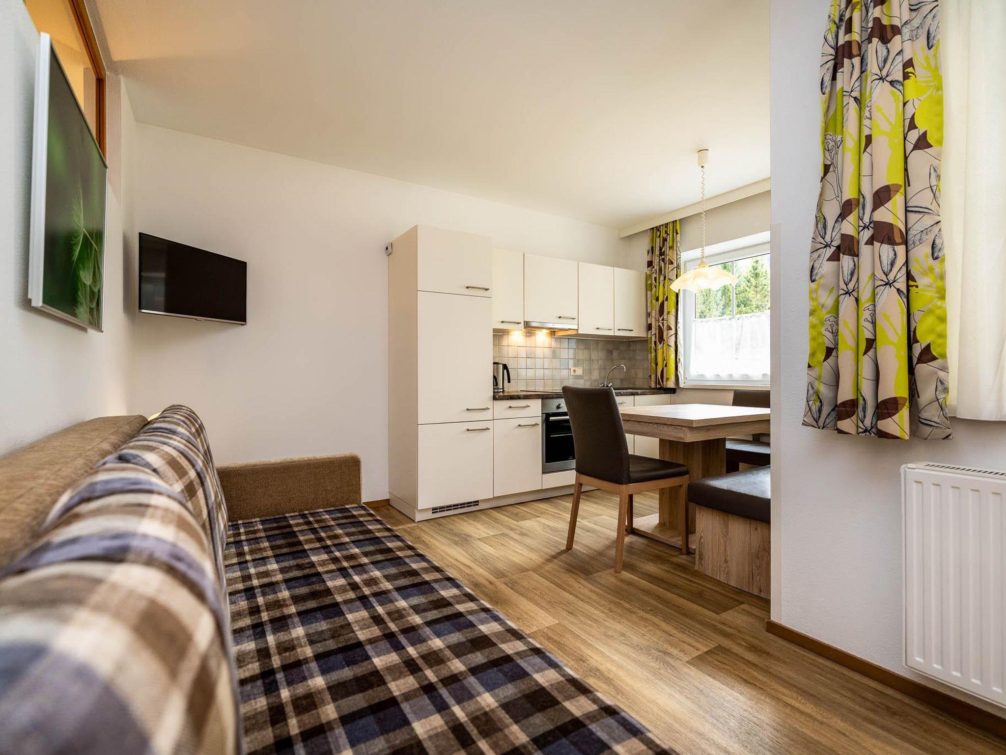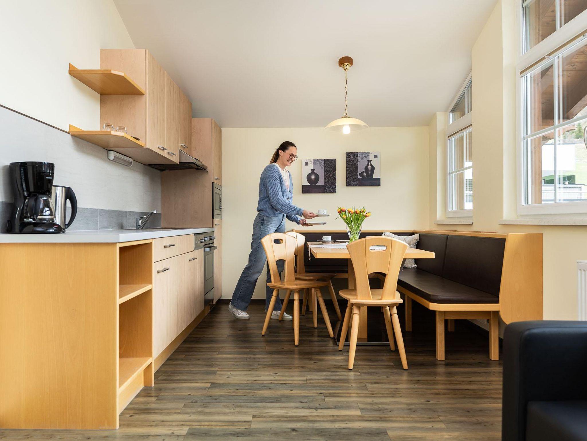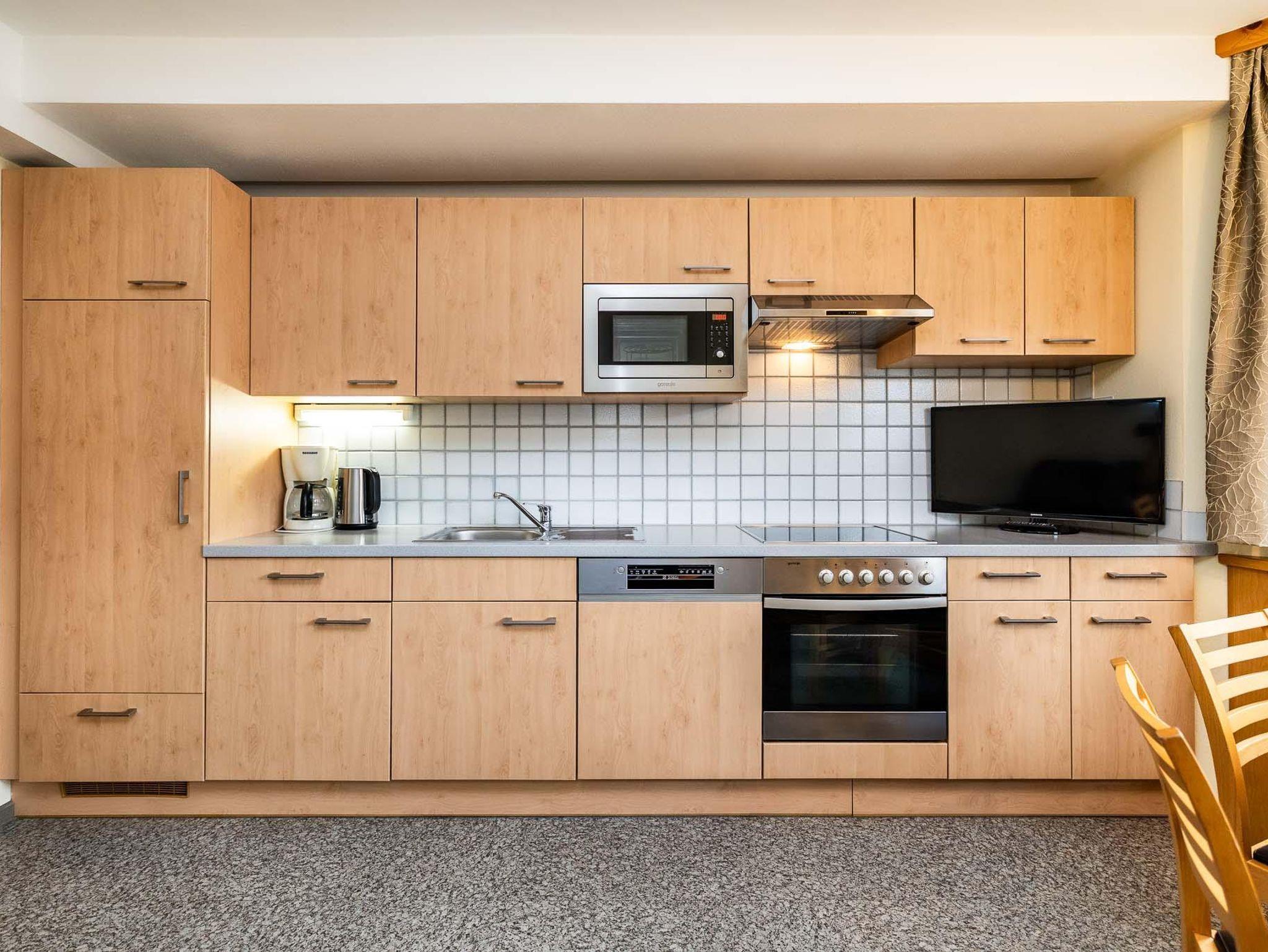 • Wohnraum mit komplett ausgestatteter Küche oder Kochnische (von den Schlafräumen getrennt)