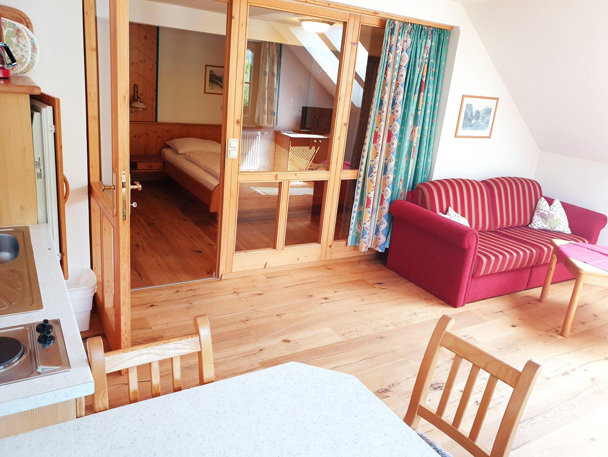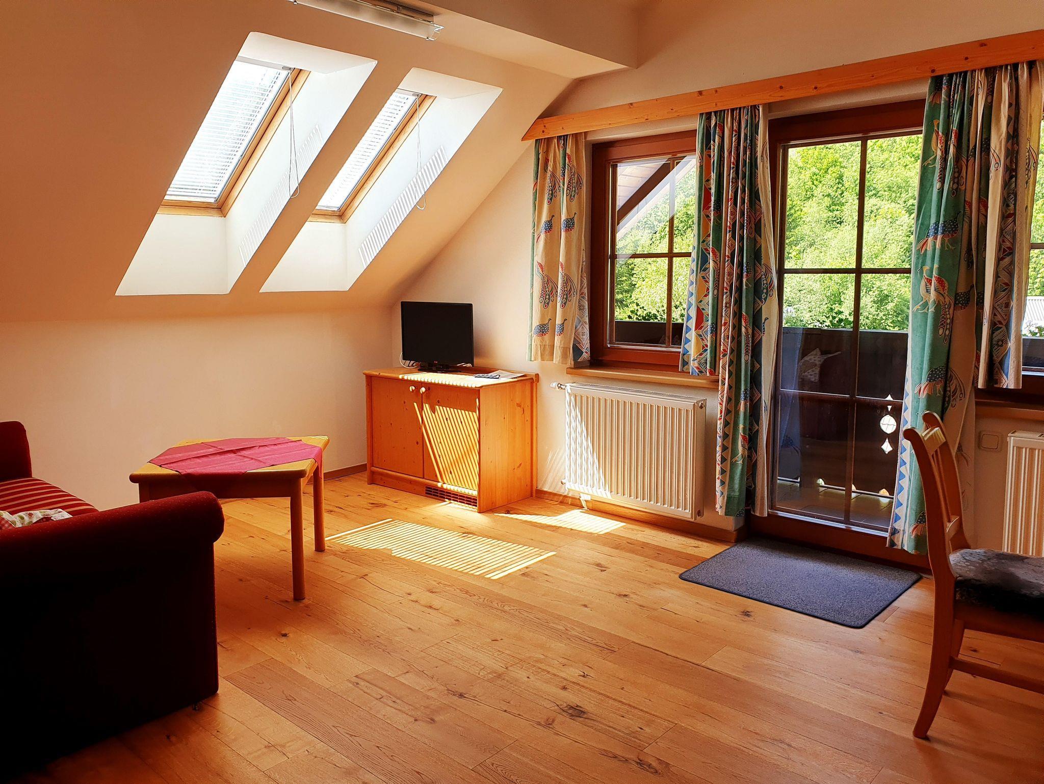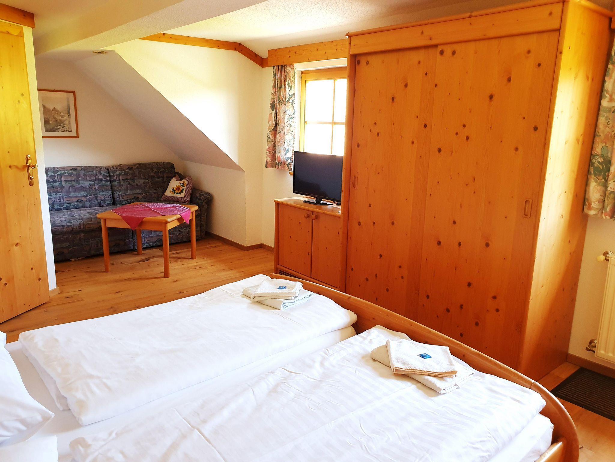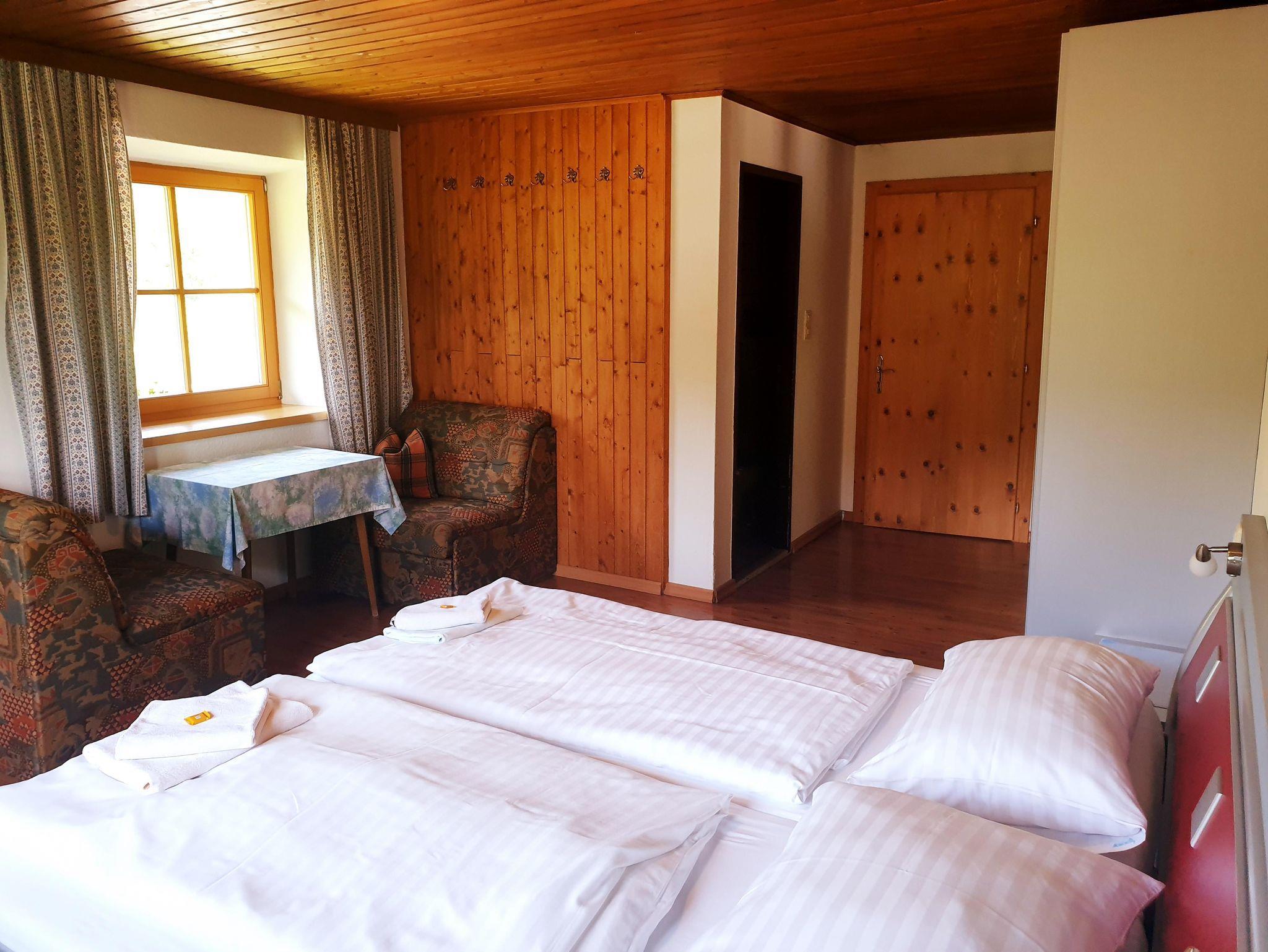 Komfortzimmer Sonnenblume (104/105) Komfortables ruhiges Doppelzimmer mit DU/WC, Flatscreen-Sat-TV, Kühlschrank, Telefon, gratis W-Lan im Zimmer, Haartrockner und Hotelsafe, Blick in das westliche Göriachtal. Auf Wunsch Halbpension mit Menüwahl.