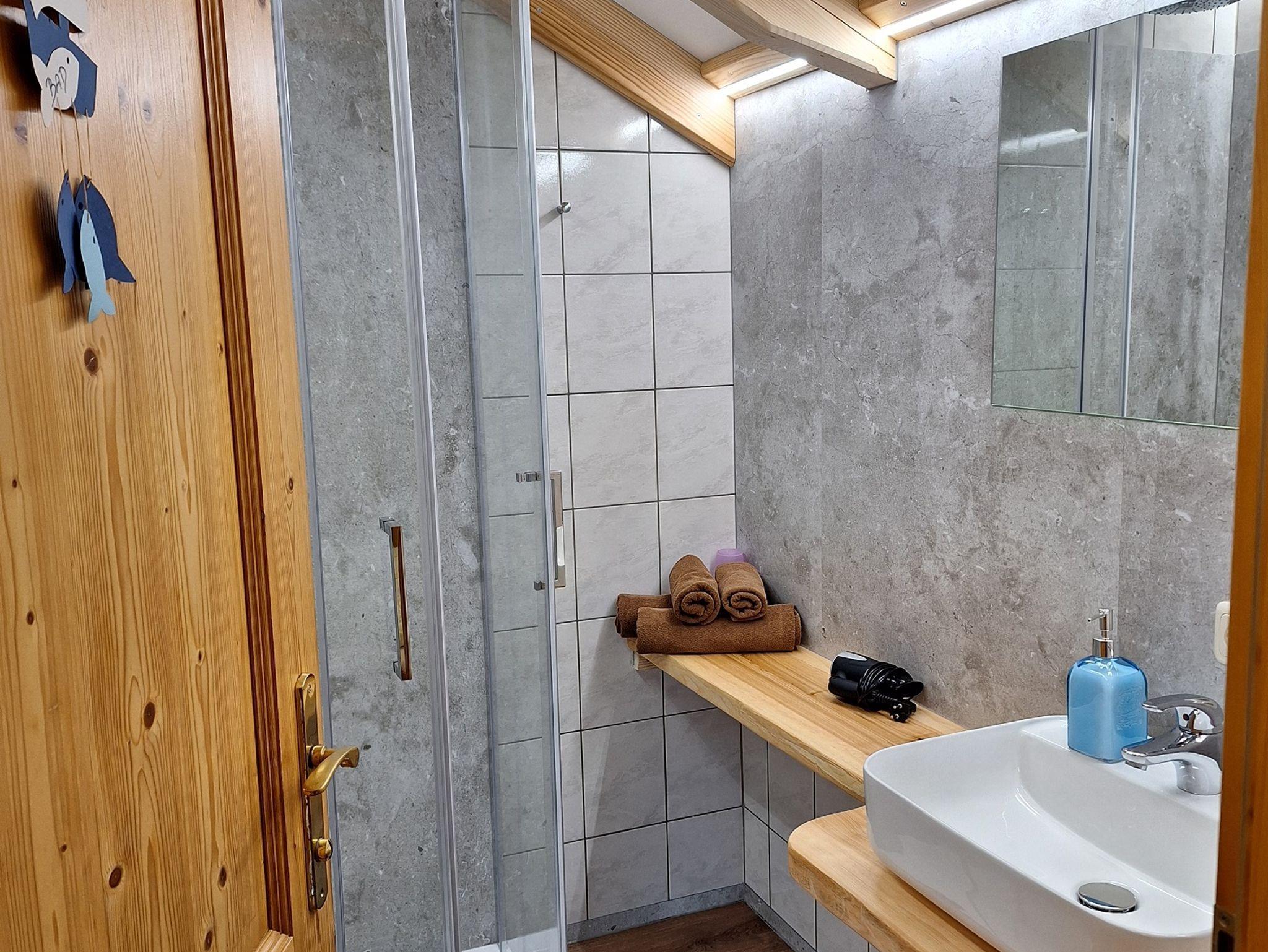 Unser liebevoll ausgestattetes Zimmer Zum Nussbaum befindet sich im 2. Stock und verfügt über einen Balkon mit Blick auf das Hochkar, eine voll ausgestattete Kochnische (Herd, Geschirrspüler, Filterkaffeemaschine, Mikrowelle, Kühlschrank, Besteck, Geschirr, Töpfe,...), Sat-TV und Etagenbett.
