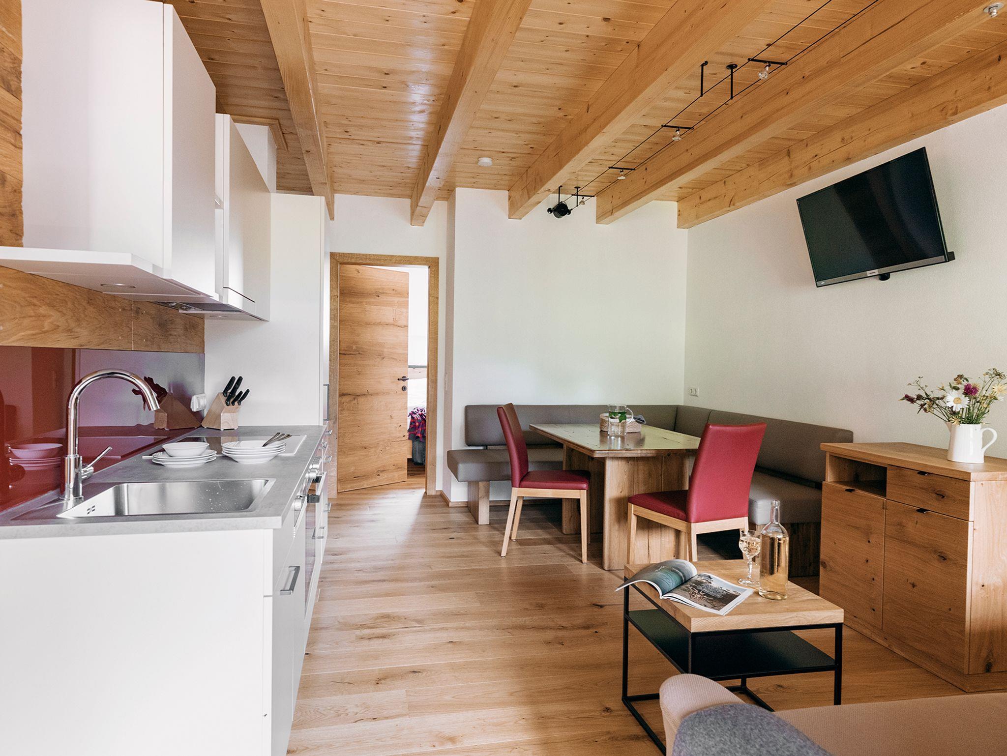 Die Appartements sind mit je zwei Doppelzimmer mit Vollholzmöbel, Zirbenbett und einer großzügigen Sonnenterrasse mit Blick auf das Hochkar ausgestattet.