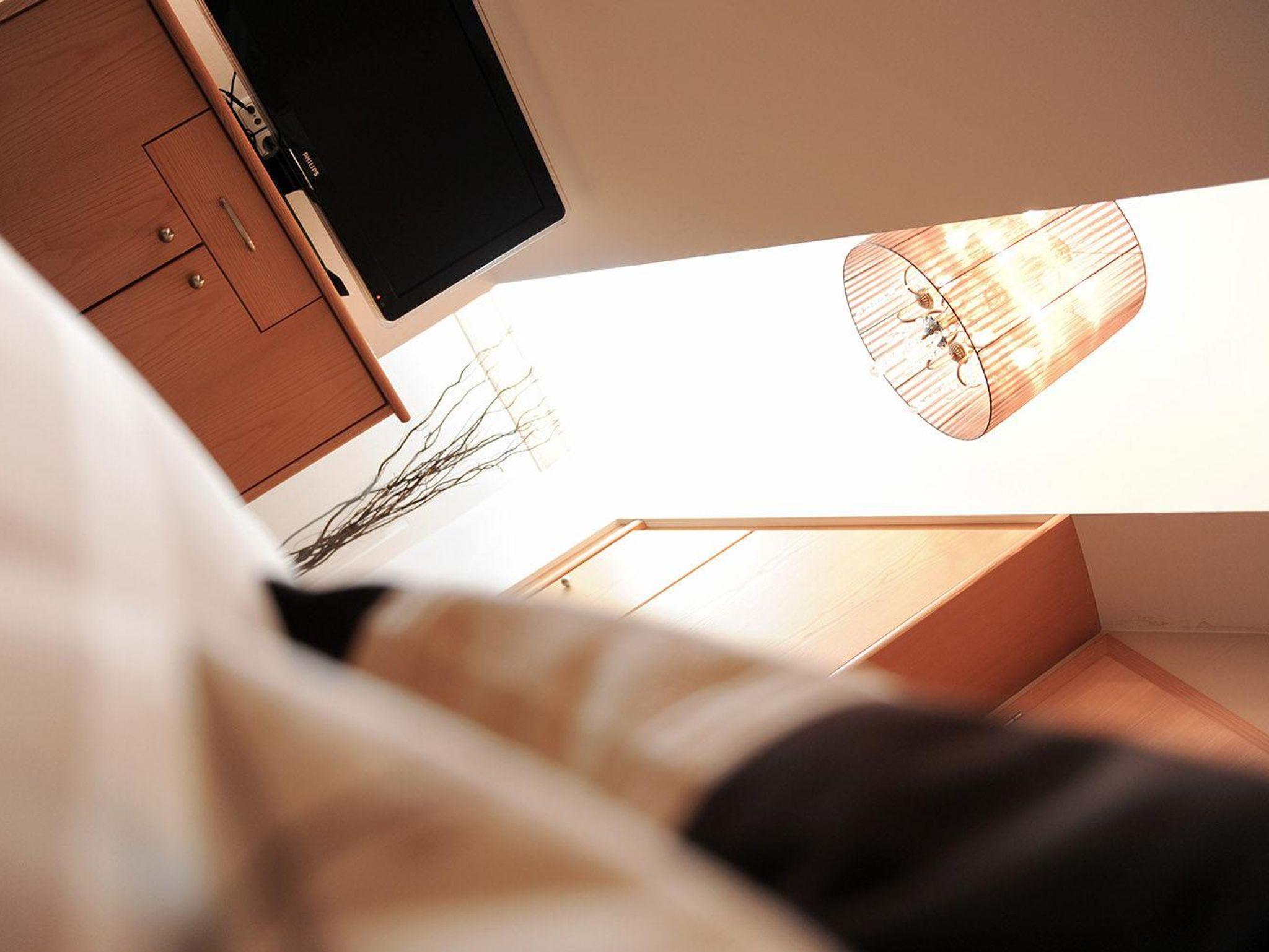 komfortabel, Wohnraum (erweiterbar auf zwei Schlafplätze), Schlafzimmer, Flachbildschirm, WLAN, Hitherm® Spiegel- und Wandheizung, Euroval®-Fußboden-Systemheizung, Dusche, WC, Haarfön, Zimmersafe, Rollos, Kaffeemaschine.