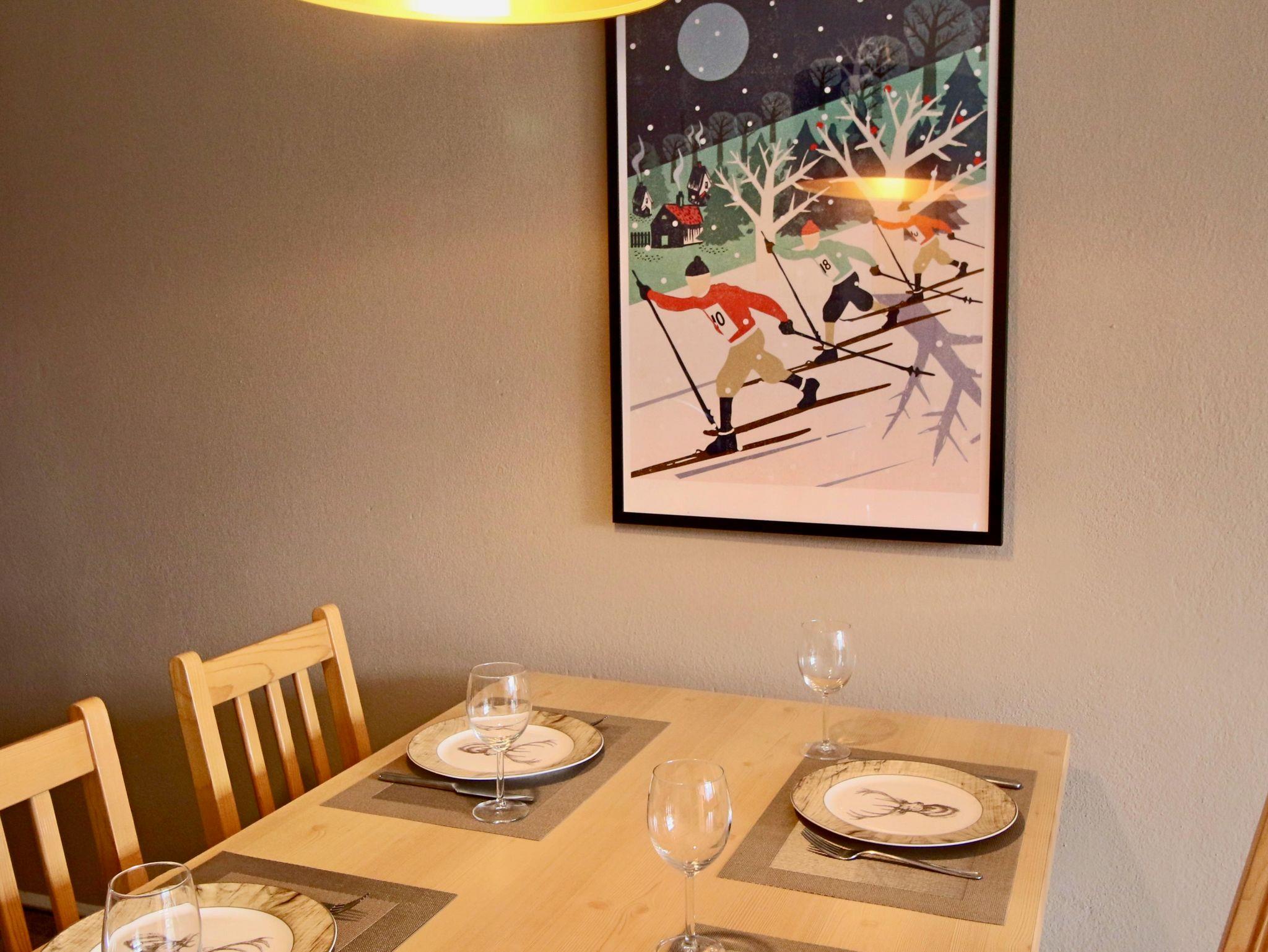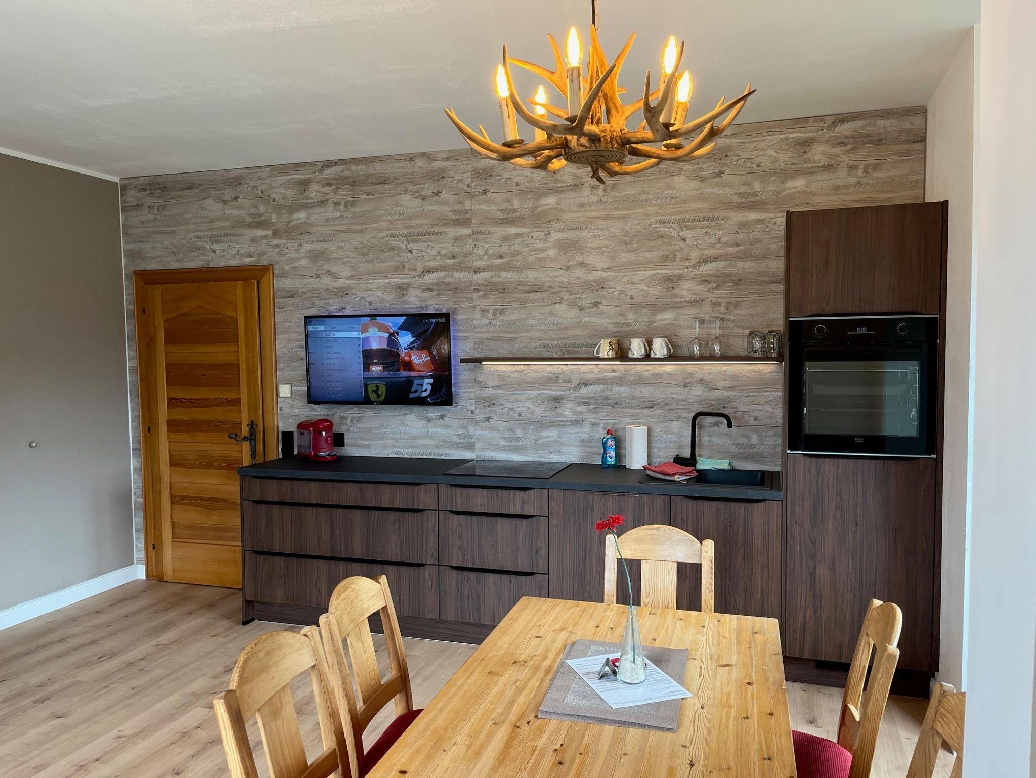 Renoviert 2024/2025. Große Südterrasse mit atemberaubender Aussicht. Badezimmer mit Grosse Dusche/Thermostat. Wohnzimmer mit moderner Küche inkl Geschirrspüler. Auch ein Schlafsofa. Schlafzimmer mit Kingsize-Bett und Etagenbett, alles in Echtholz.