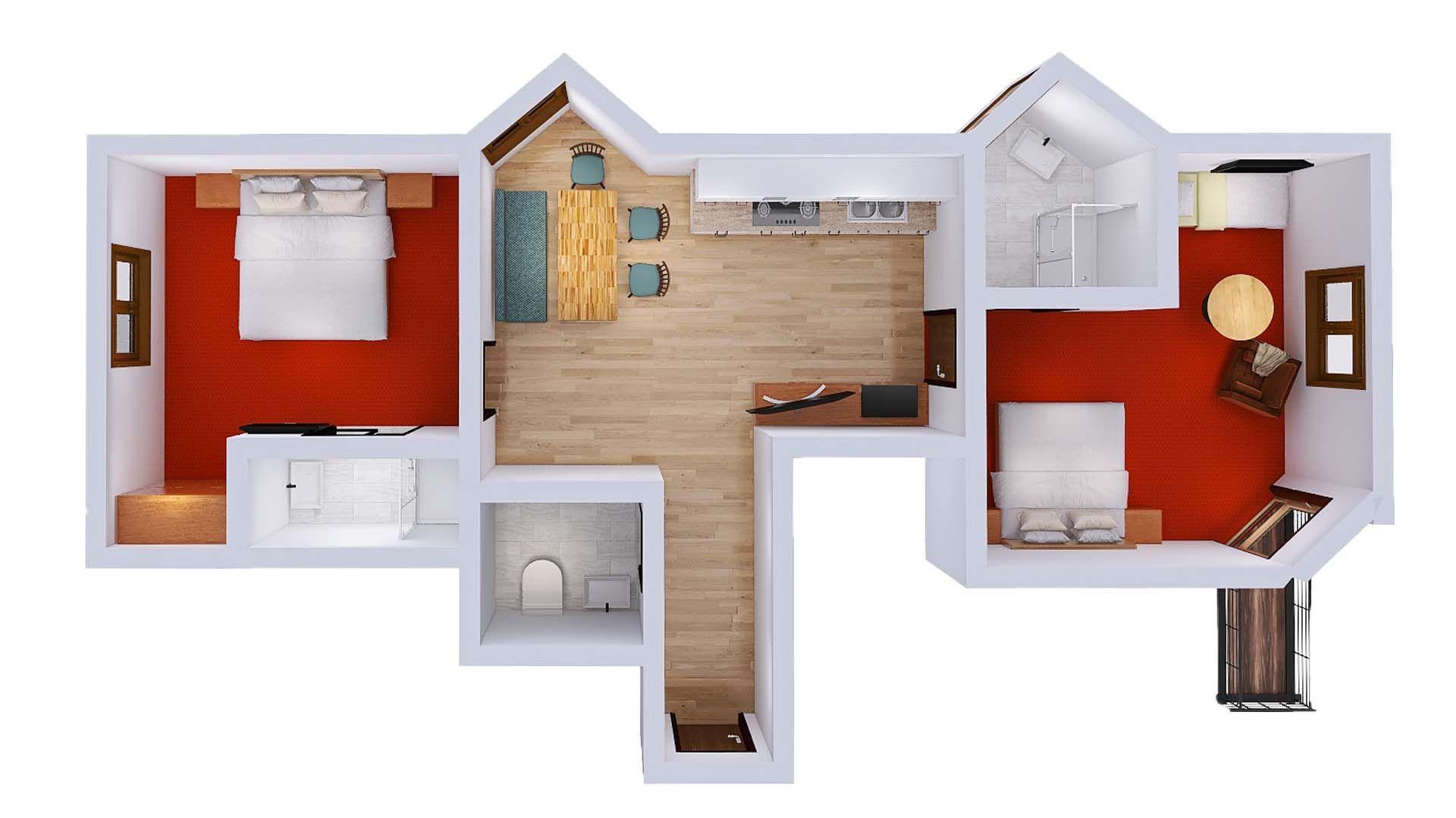 Sleeping facilities: Number of double beds (more than 1,80 m width): 2; Number of single beds: 1