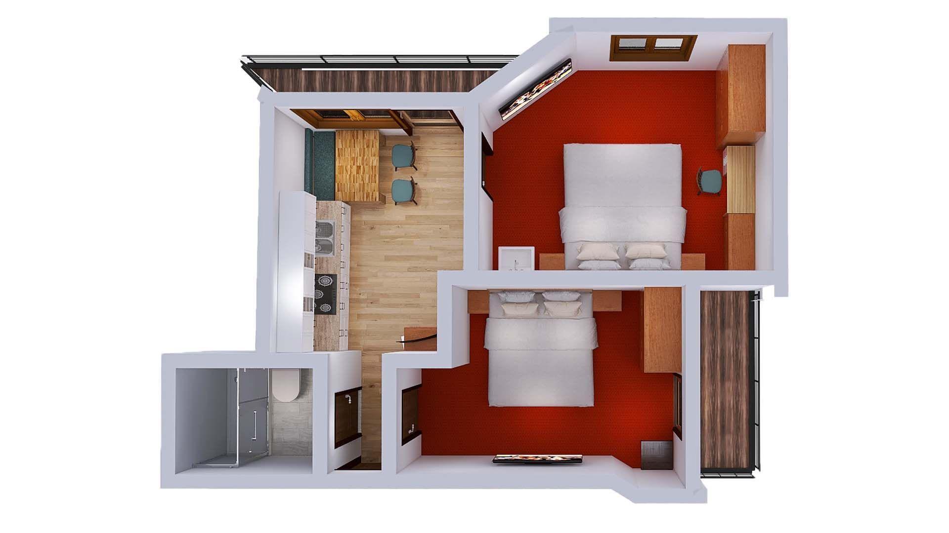 Sleeping facilities: Number of double beds (1.80 m width): 2