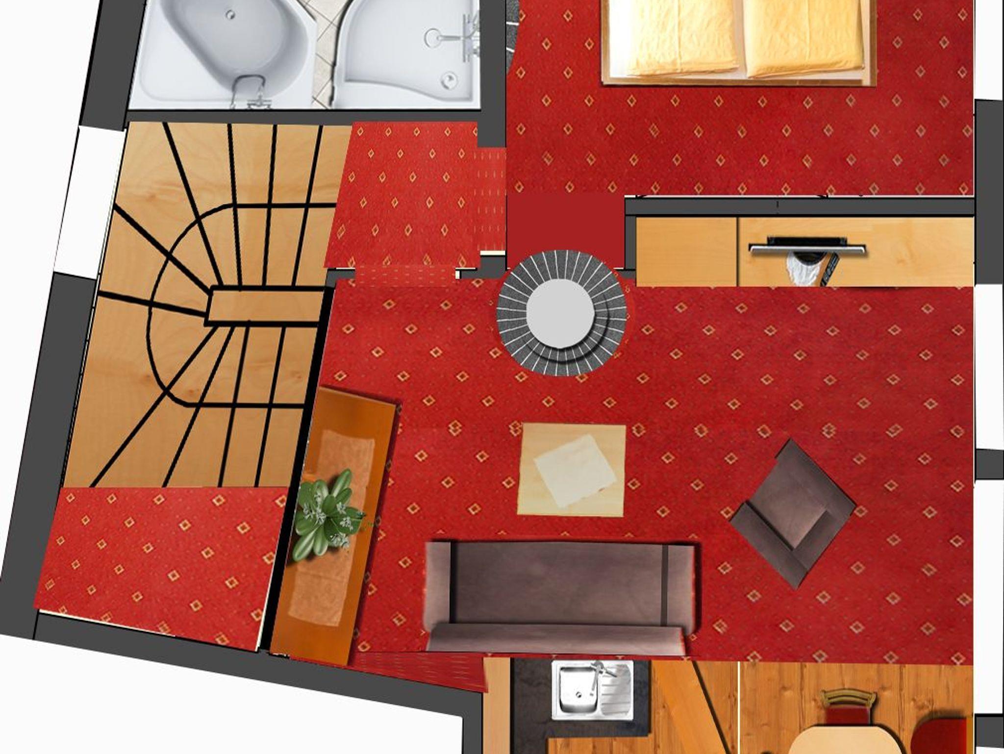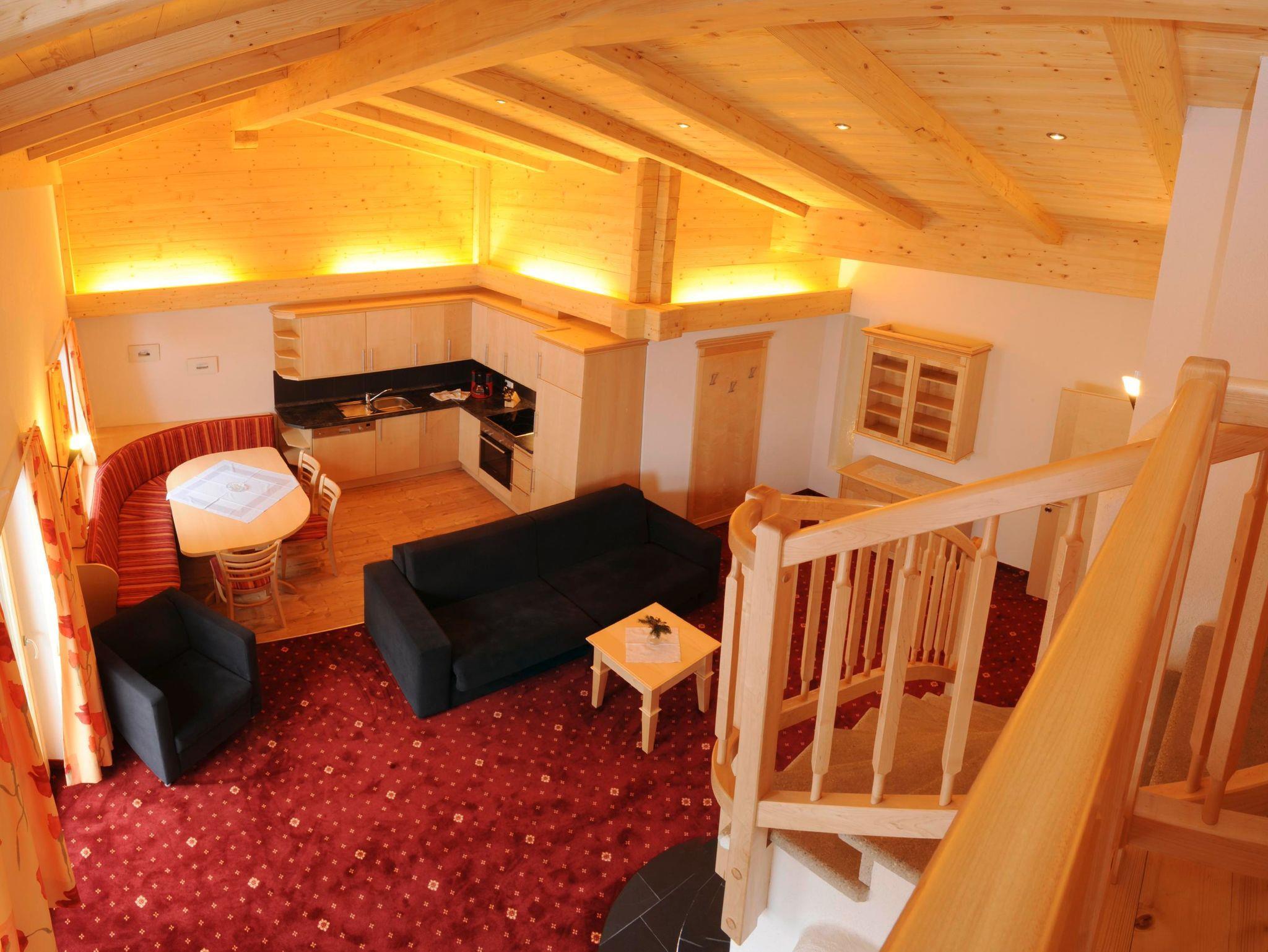 Familienwohnung m. Galerie und Kinderhütte für 6-8 Pers. Im UG finden Sie 2 DZ mit Dusche/WC. Im OG ein weiteres DZ mit großem Bad/WC u. Massagedusche. Highlight: Galerie mit einer Kinderhütte weiters eine großzügige Wohnküche, ein großer Wohnteil mit Ausziehsofa, offenem Kamin u. 2 Balkone