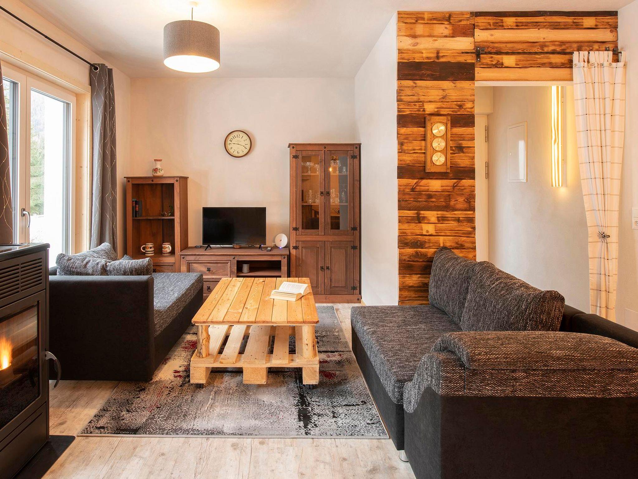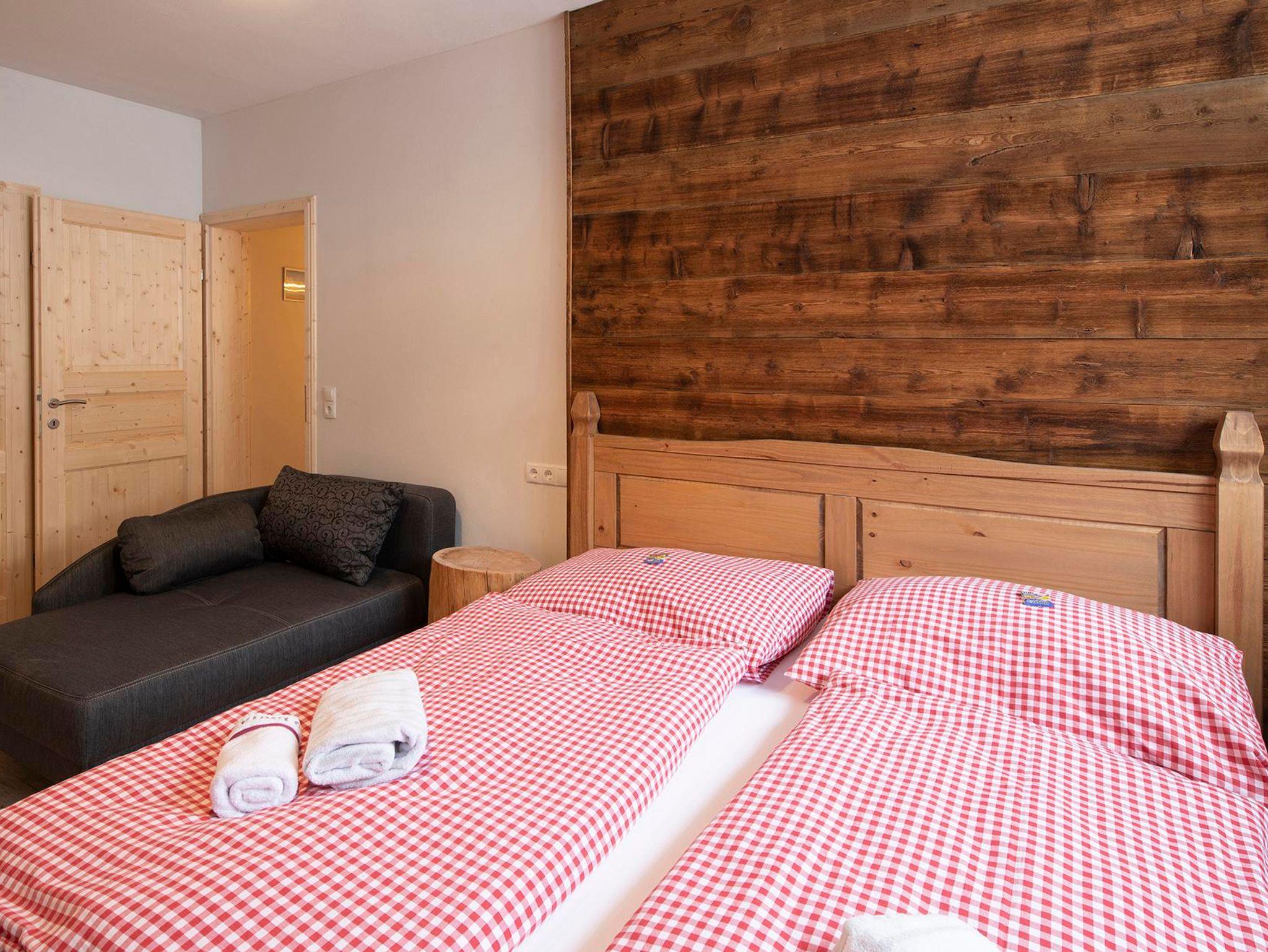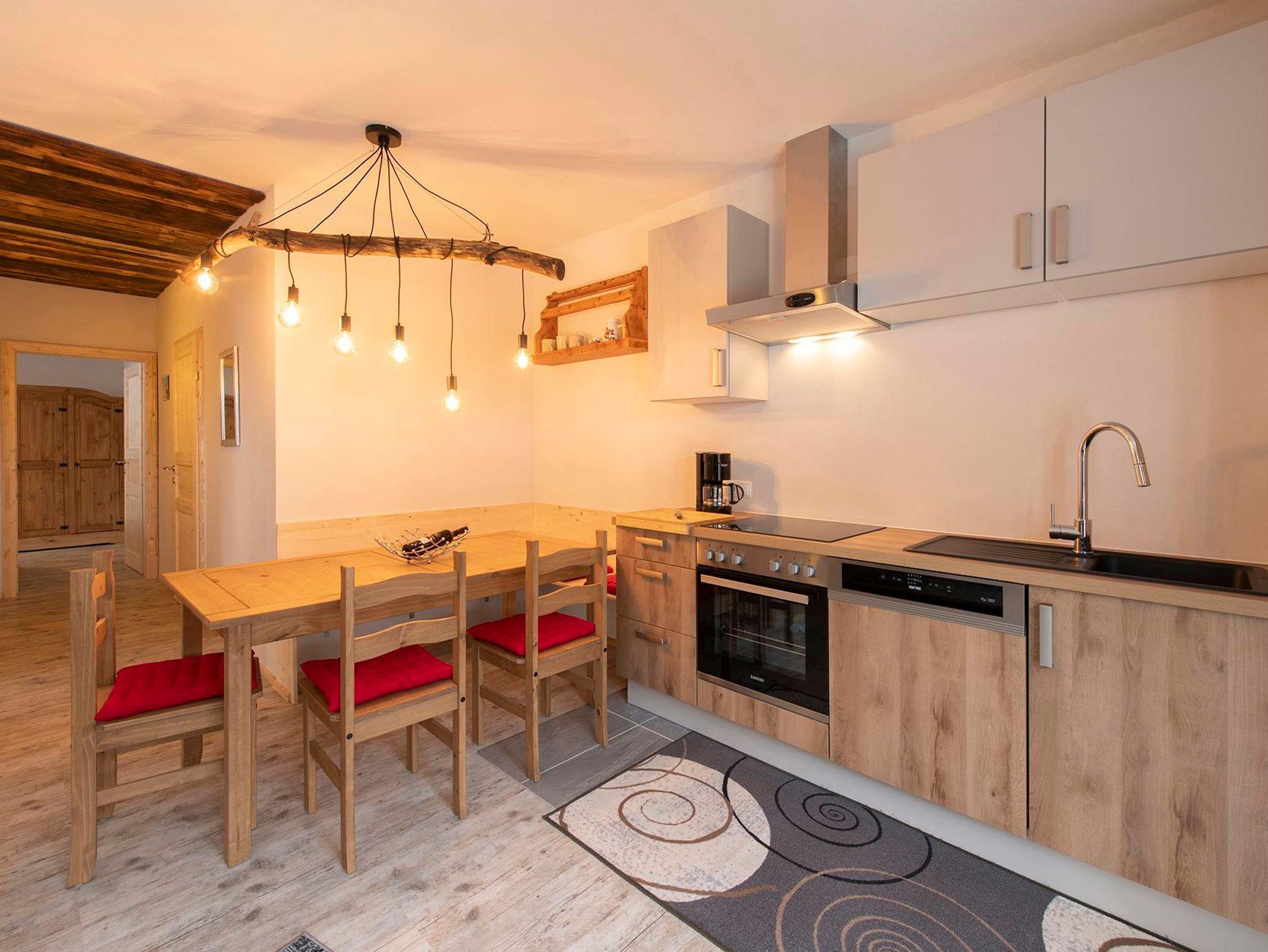 Es verfügt über 2 Doppelzimmer mit jeweils Dusche/WC, sowie eine gemütliche Wohnküche mit Couch und Pelletofen.