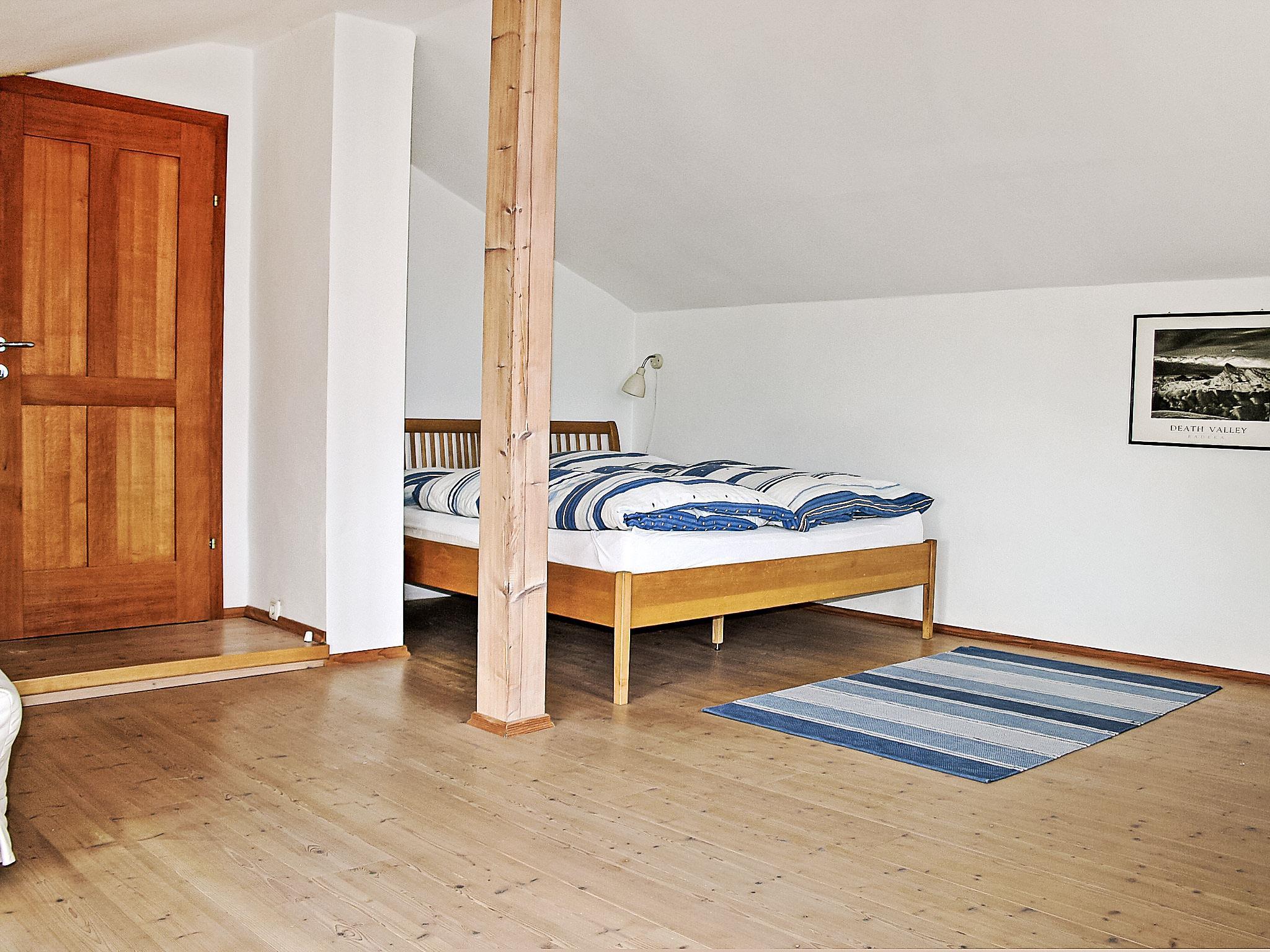 "Große Winten", 5-room semi-detached house 160 m2 on 2 levels. Spacious and bright, partly with sloping ceilings, modern and cosy furnishings: large living room 50 m2 with library, satellite TV and radio. Exit to the terrace. Kitchen-/living room (oven, dishwasher, 4 ceramic glass hob hotplates, microwave, freezer, grill, electric coffee machine) with dining nook. Shower/WC. Upper floor: 1 room with 1 french bed (160 cm). 1 double bedroom with 1 double bed and 1 folding bed. 1 room with 1 sofabed. Bath/bidet/WC, double hand-basin. Top floor: 1 room with 1 pull-out bed. Wood heating, solar energy heating. Terrace 20 m2. Terrace furniture, deck chairs. Beautiful view of the countryside and the forest. Facilities: Internet (WiFi). Please note: non-smokers only. Private entrance. Bookings by companies for employees on request!