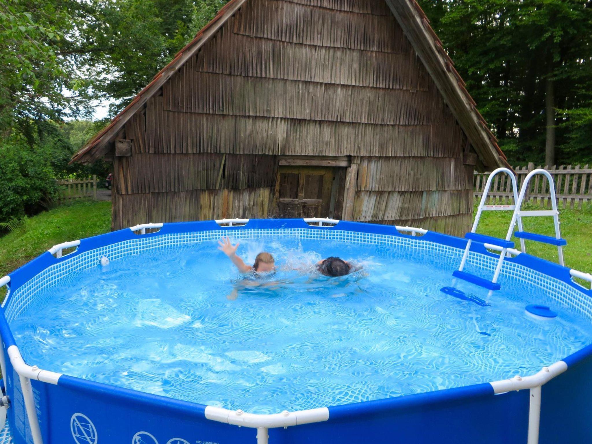 Tischtennistisch (mit Schläger und Bällen), große überdachte Sandkiste, Hängematten, Kinderpool (ca. 3m Meter Durchmesser), Feuerstelle samt Brennholz, Kräuter vom eigenen Garten.