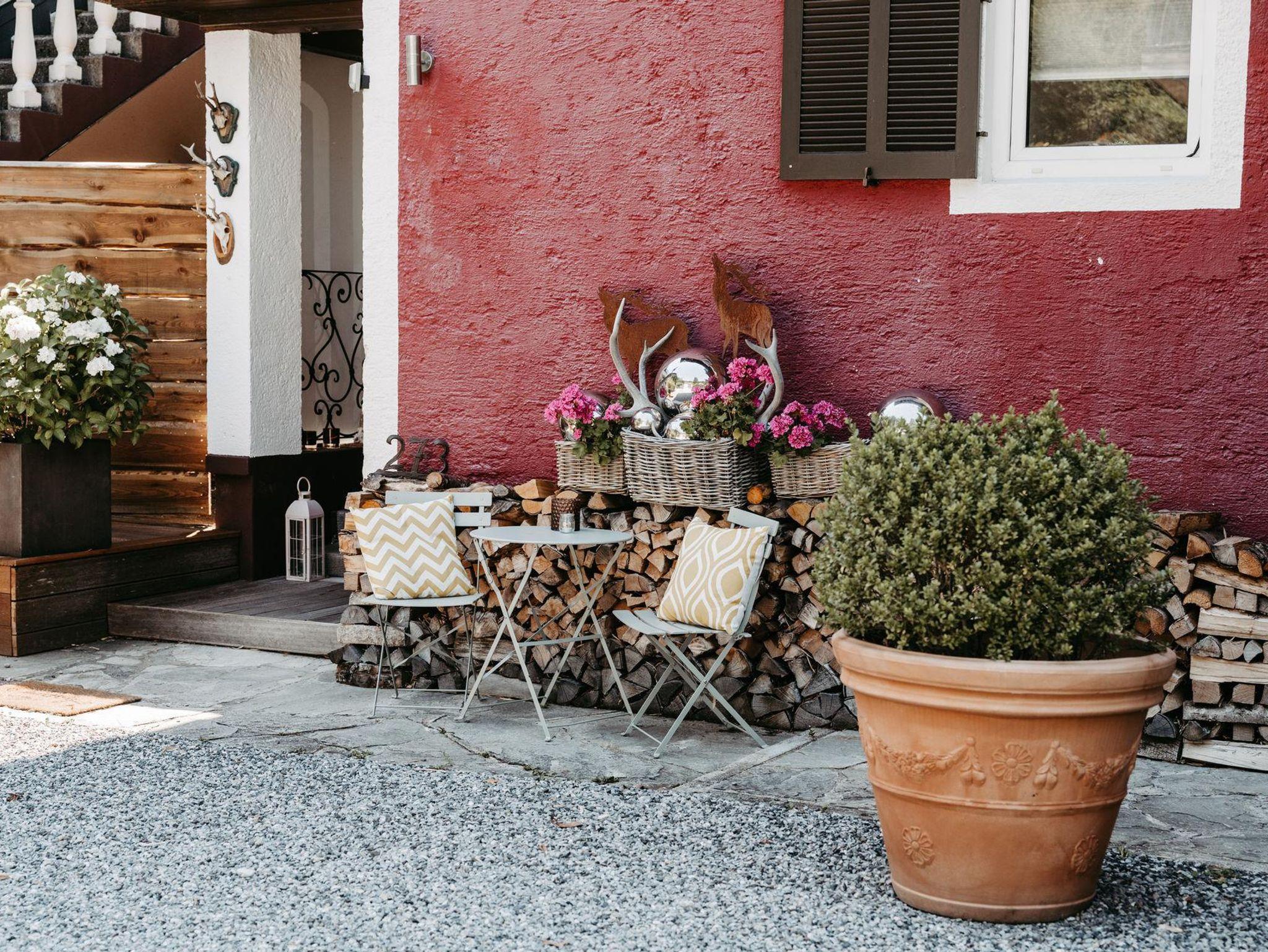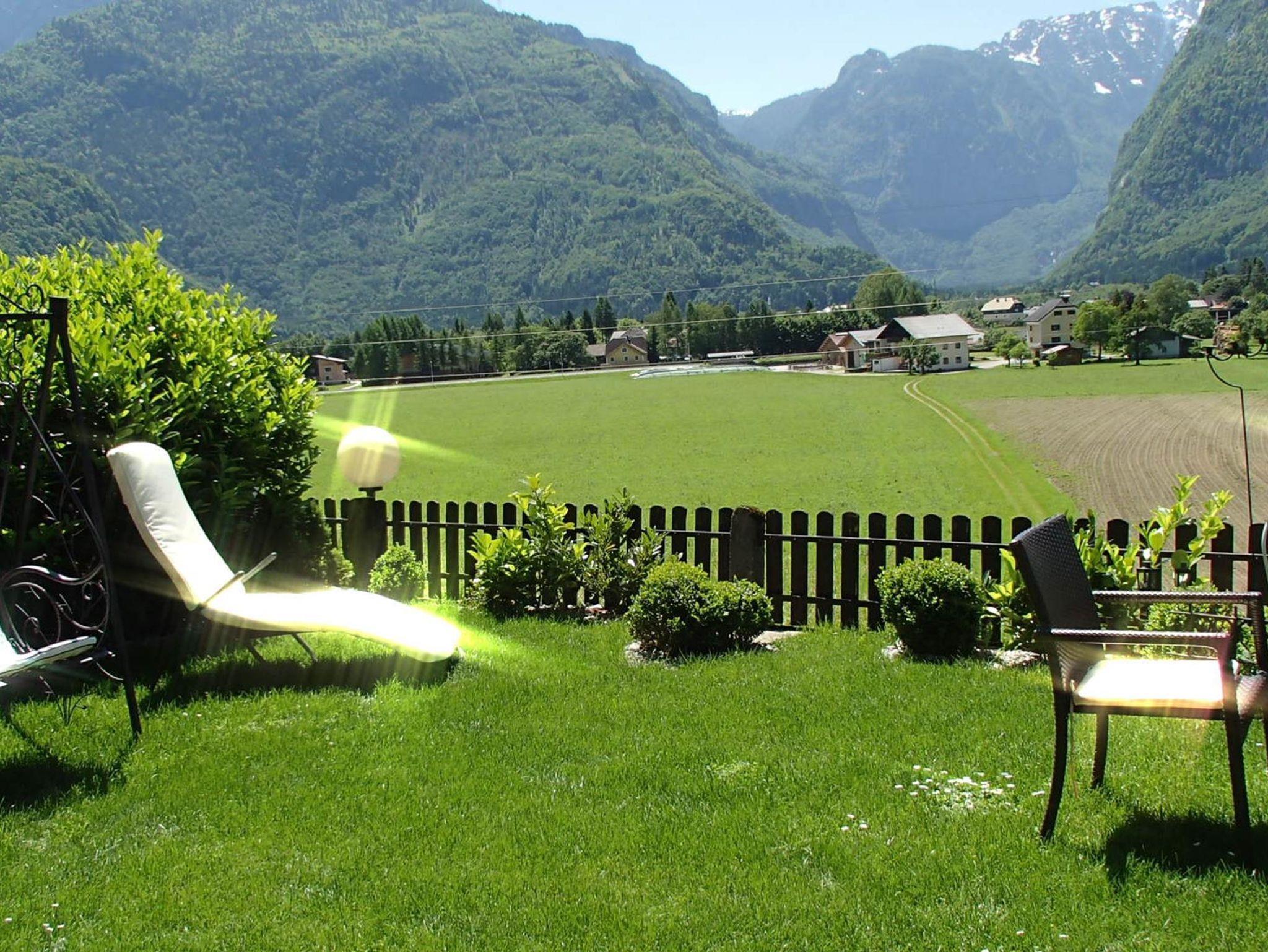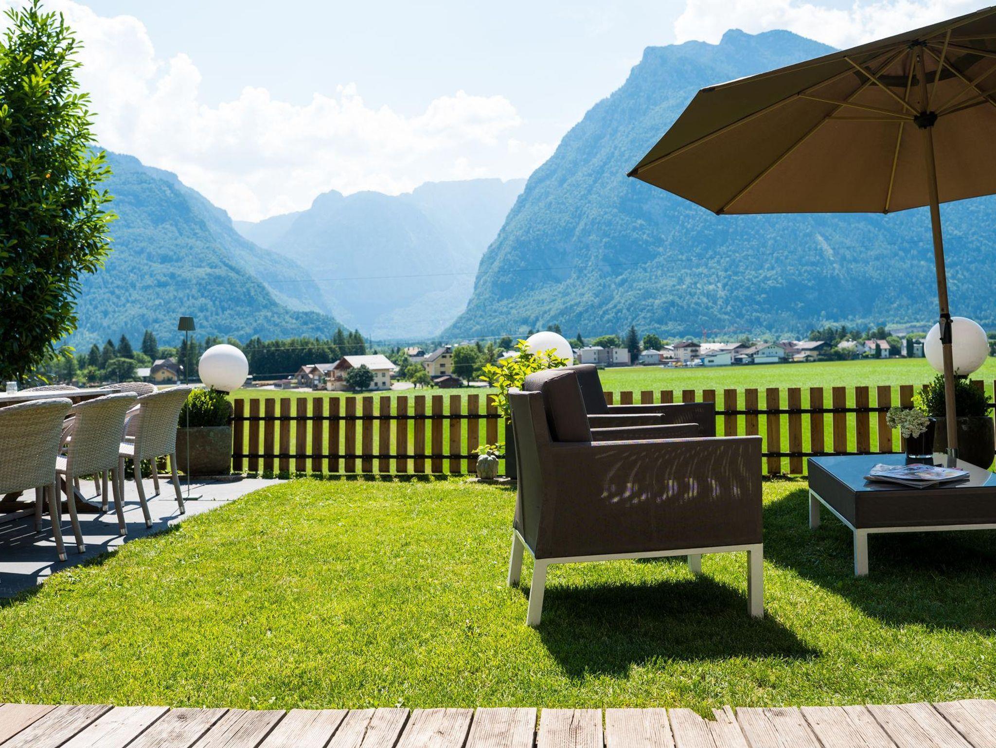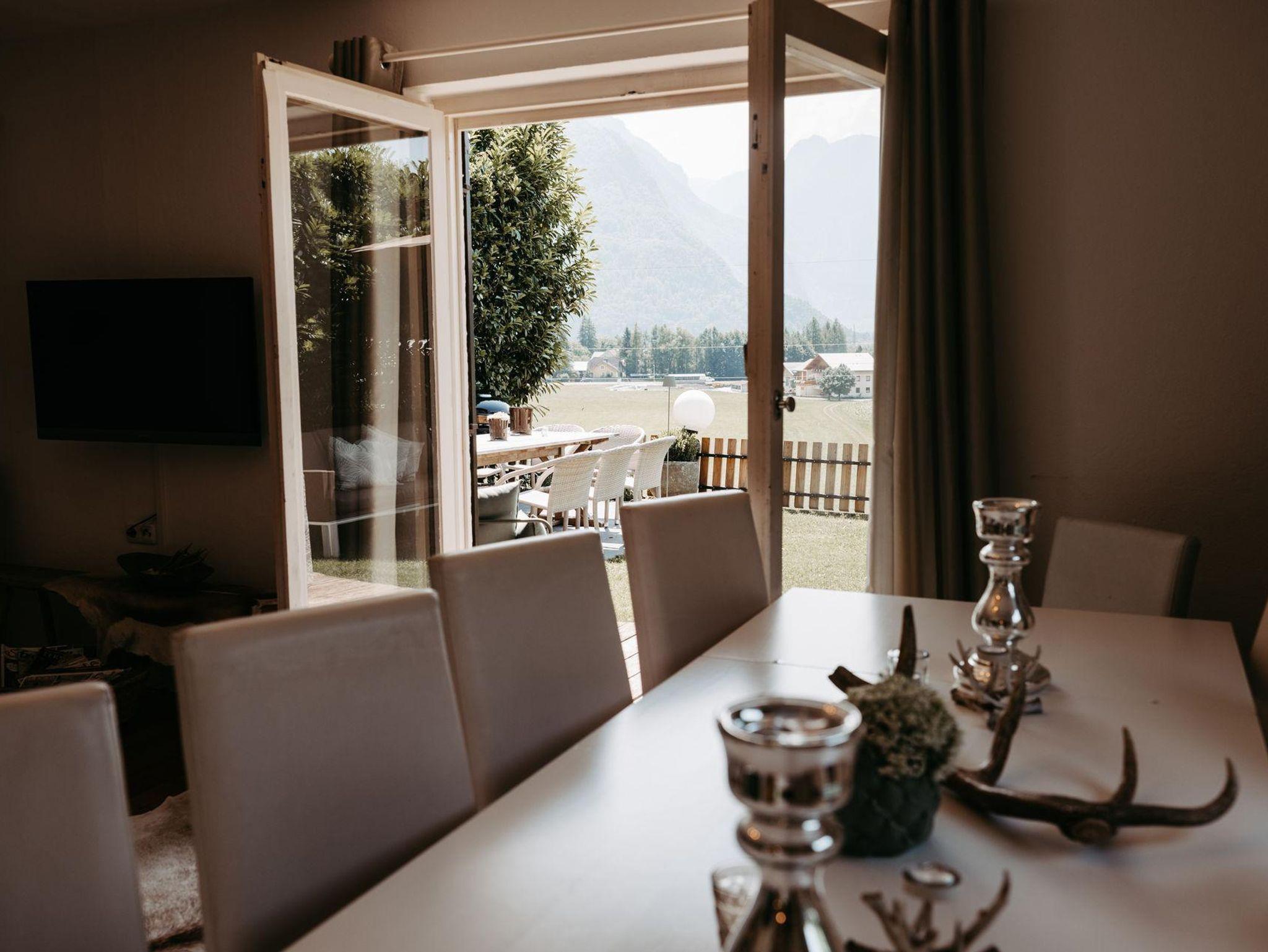 Der Garten und die Terrasse überzeugt mit einem einzigartigen Blick auf die Bergwelt des Göllmassivs, des Hagengebirges und des Tennengebirges. Ihnen vorgelagert sind die saftig grünen Wiesen des Salzachtales. Loungemöbel, ein großer Gartentisch mit Stühlen, Beschattungsmöglichkeiten oder ein Sonnenbett schaffen in dieser idyllischen Umgebung eine Oase, die nach einem erlebnisreichen Urlaubstag absolute Erholung bietet.