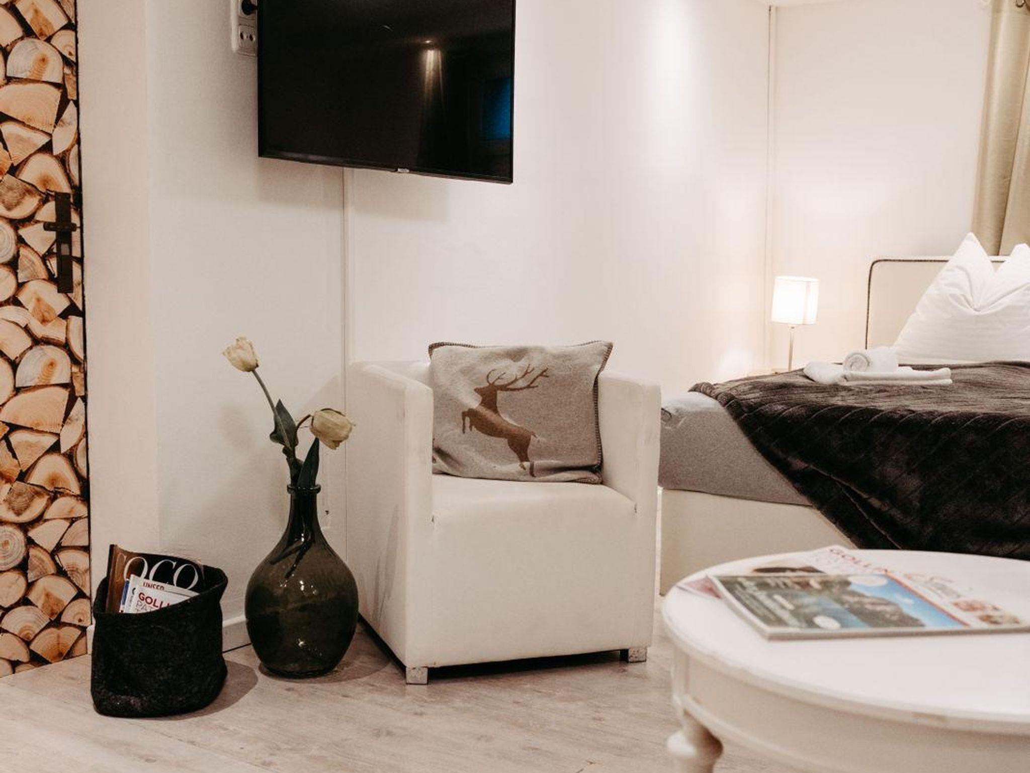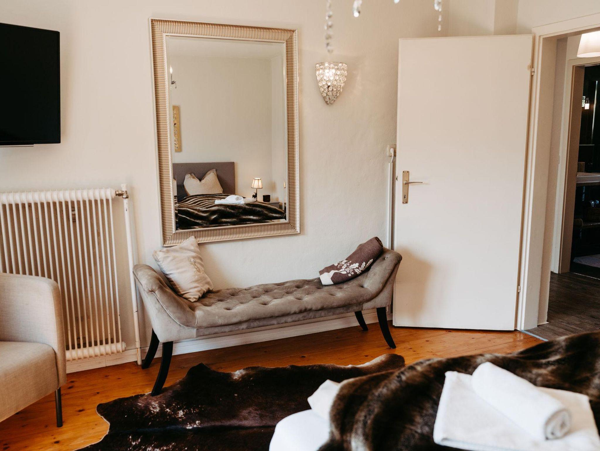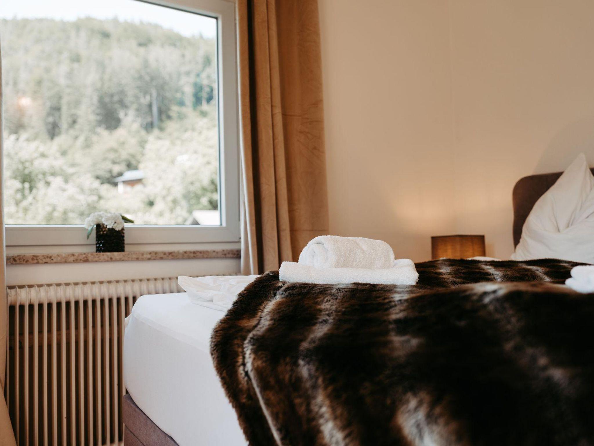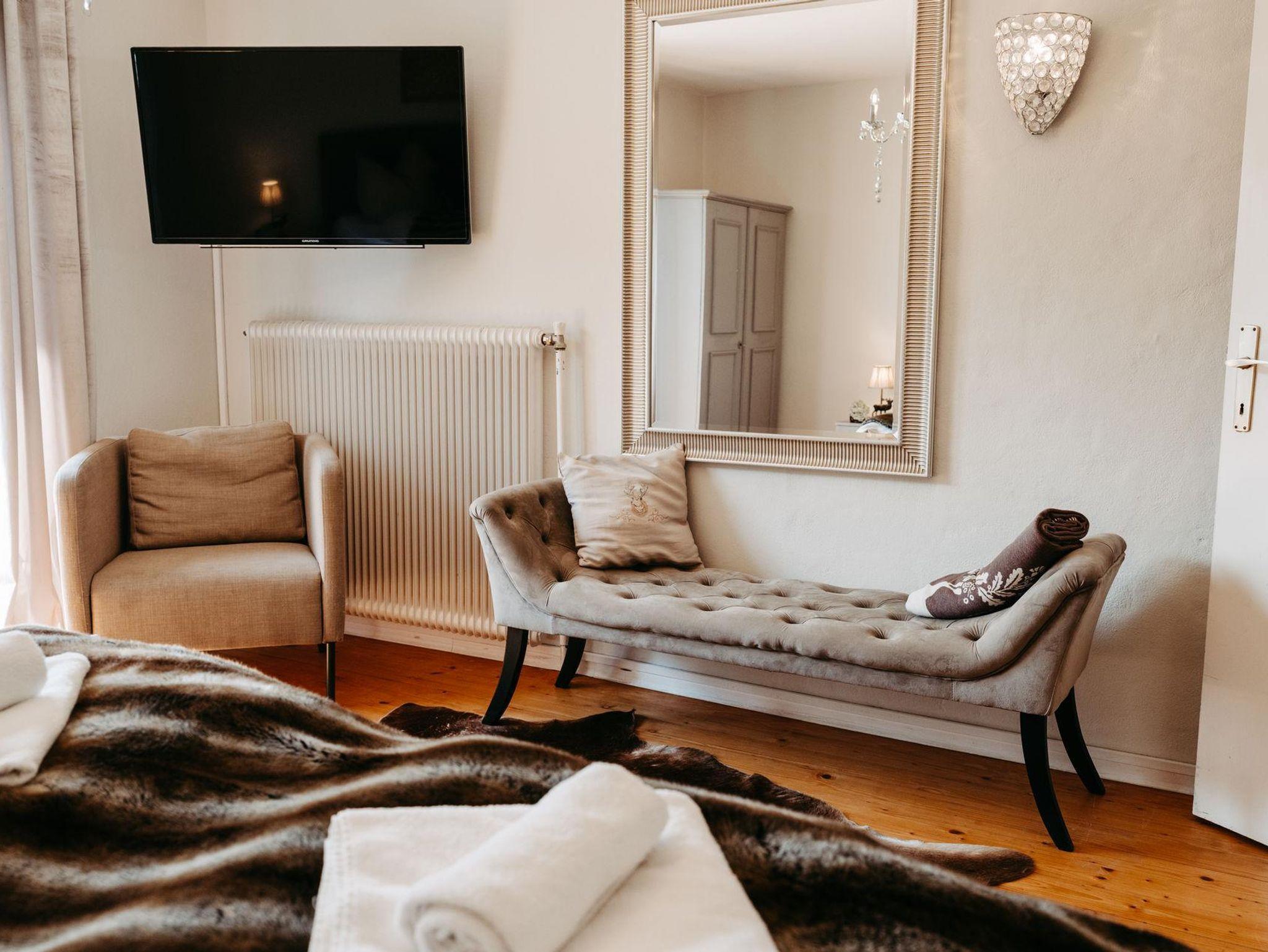 Ein zusätzliches Schlafzimmer im Untergeschoß des Chalet Jagdhaus mit Fenster, eigener Lounge und eigenem Fernseher schafft eine Möglichkeit zum Rückzug für jene Mitreisende, die auch im Urlaub hin und wieder eine Zeit für sich allein suchen.