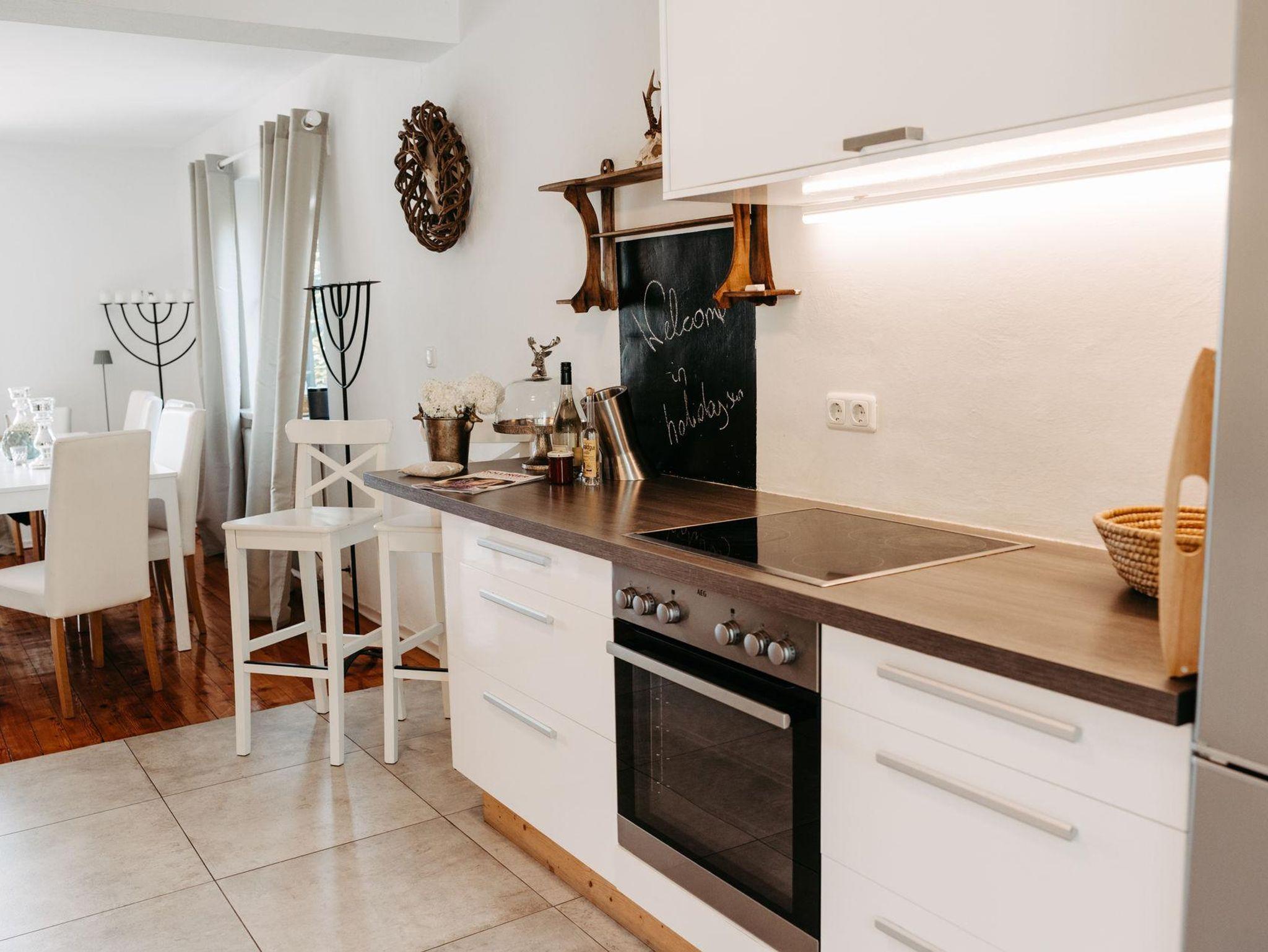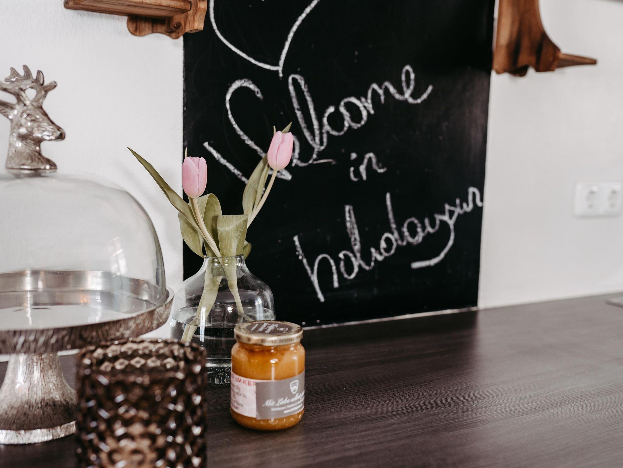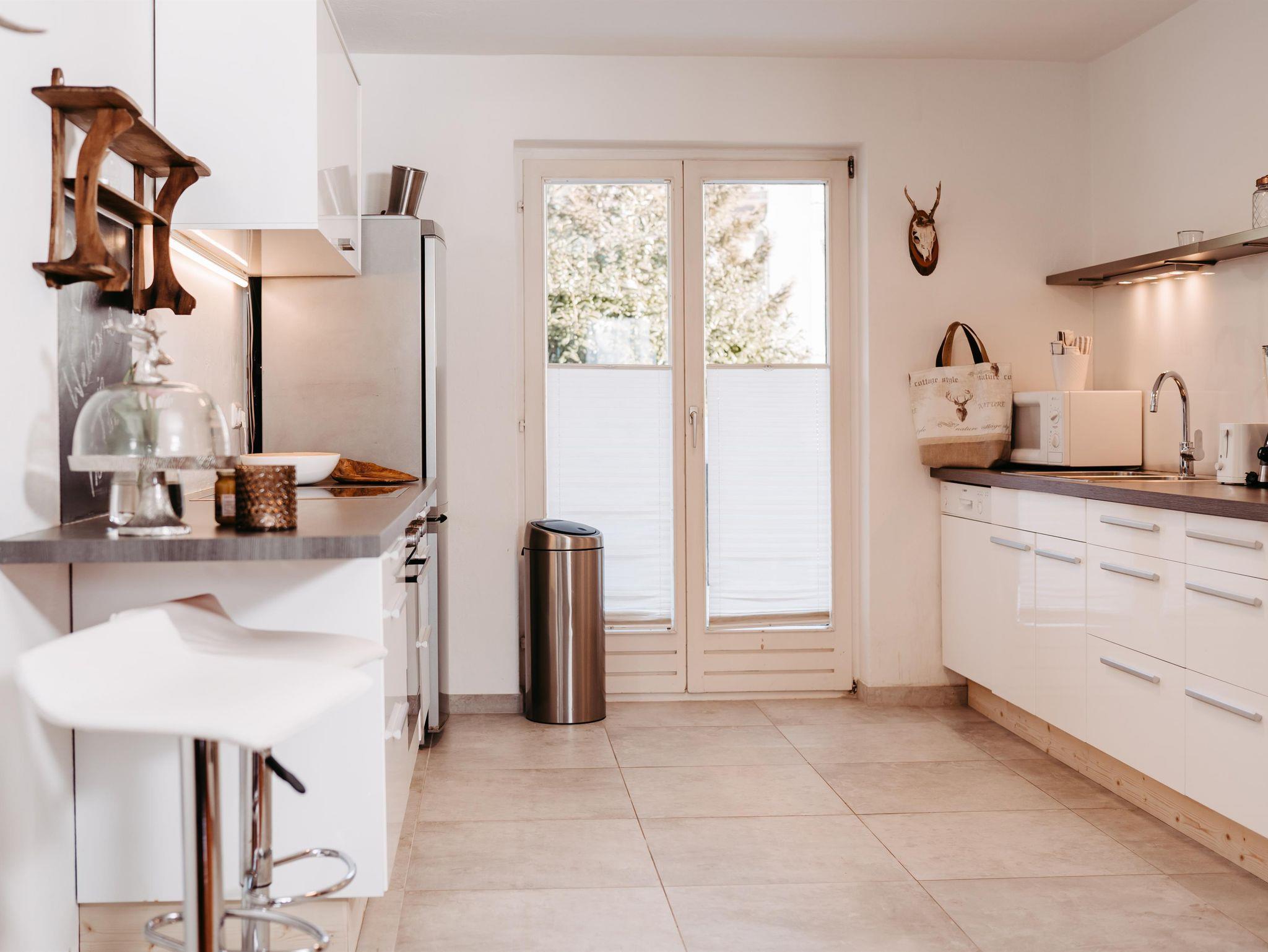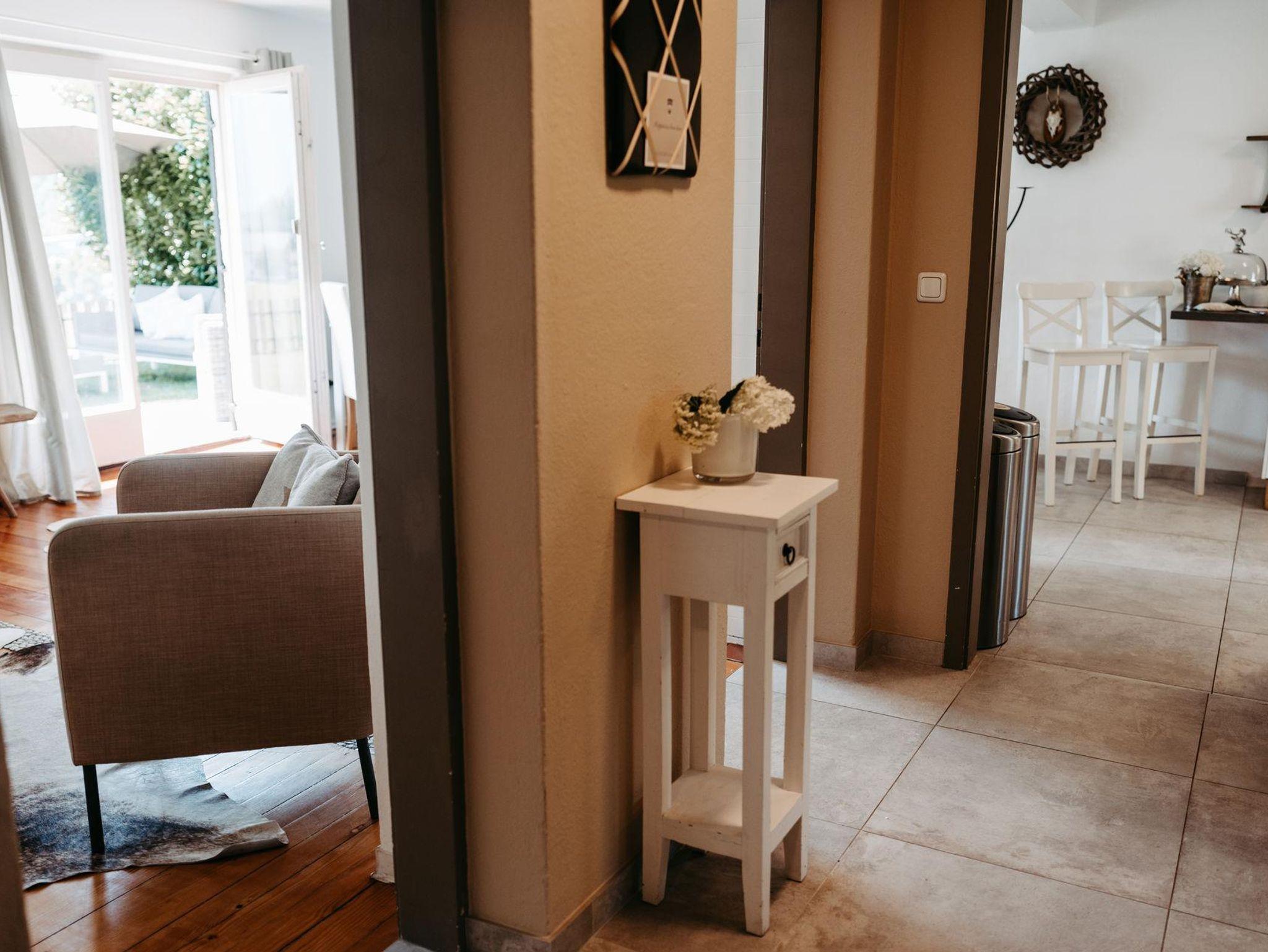 Für gemütliche Abende ist das charmante Wohnzimmer wie gemacht: ein Kamin schafft wohlige Atmosphäre und die großzügige Couchlandschaft bietet Platz zum Kuscheln und Spielen. Direkt an das Wohnzimmer schließt die elegante Küche mit moderner Ausstattung (Geschirrspüler, Mikrowelle, Kaffee-und Teemaschine, E-Herd mit Backofen usw.). Das geräumige Esszimmer mit Flat TV besticht mit einem einmaligen Blick auf die Berge. Ein direkter Zugang vom Erdgeschoß in den Garten bzw. zu den beiden Terrassen stellt sie vor die Qual der Wahl: Frühstück in der Morgensonne oder am gemütlichen Küchentisch? Das kürzlich renovierte Bad mit Regendusche und die separate Toilette erfüllen alle Bedürfnisse für ein entspanntes Zusammensein im Kreise der Familie.