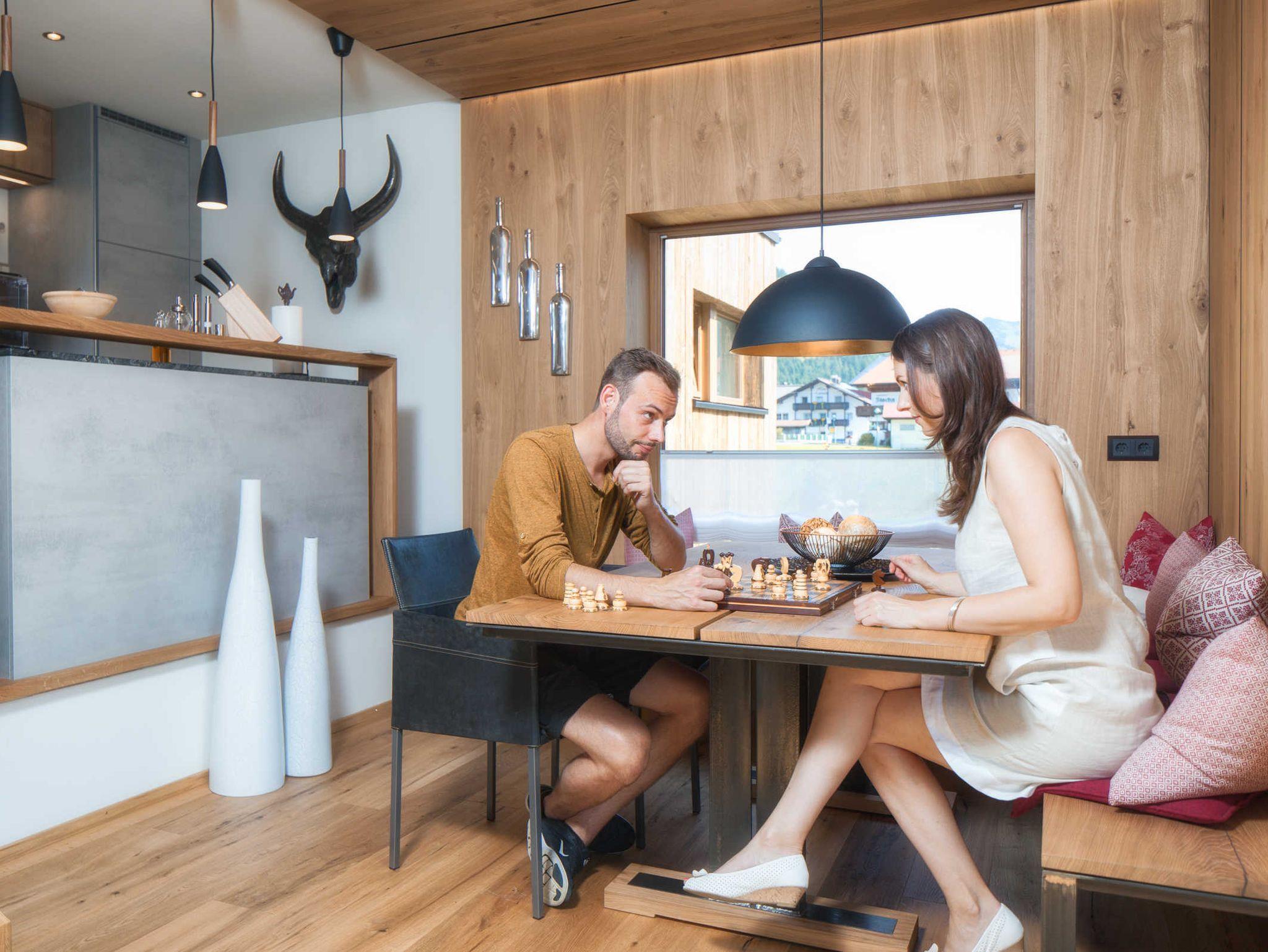 Unsere Chalets verfügen über eine modern eingerichtete Küche. Doch wenn der Herd einmal kalt bleiben soll, kochen wir gerne für Sie auf: Wählen Sie aus unser kleinen, aber sehr feinen Speisekarte und wir bringen es gerne zu Ihnen ins Chalet. Es soll Ihnen an nichts fehlen. Teilen Sie uns Ihre Wünsche einfach via Tablet im Chalet mit und wir erledigen Ihren Einkauf. Unsere gute Fee erledigt für Sie den Rest.