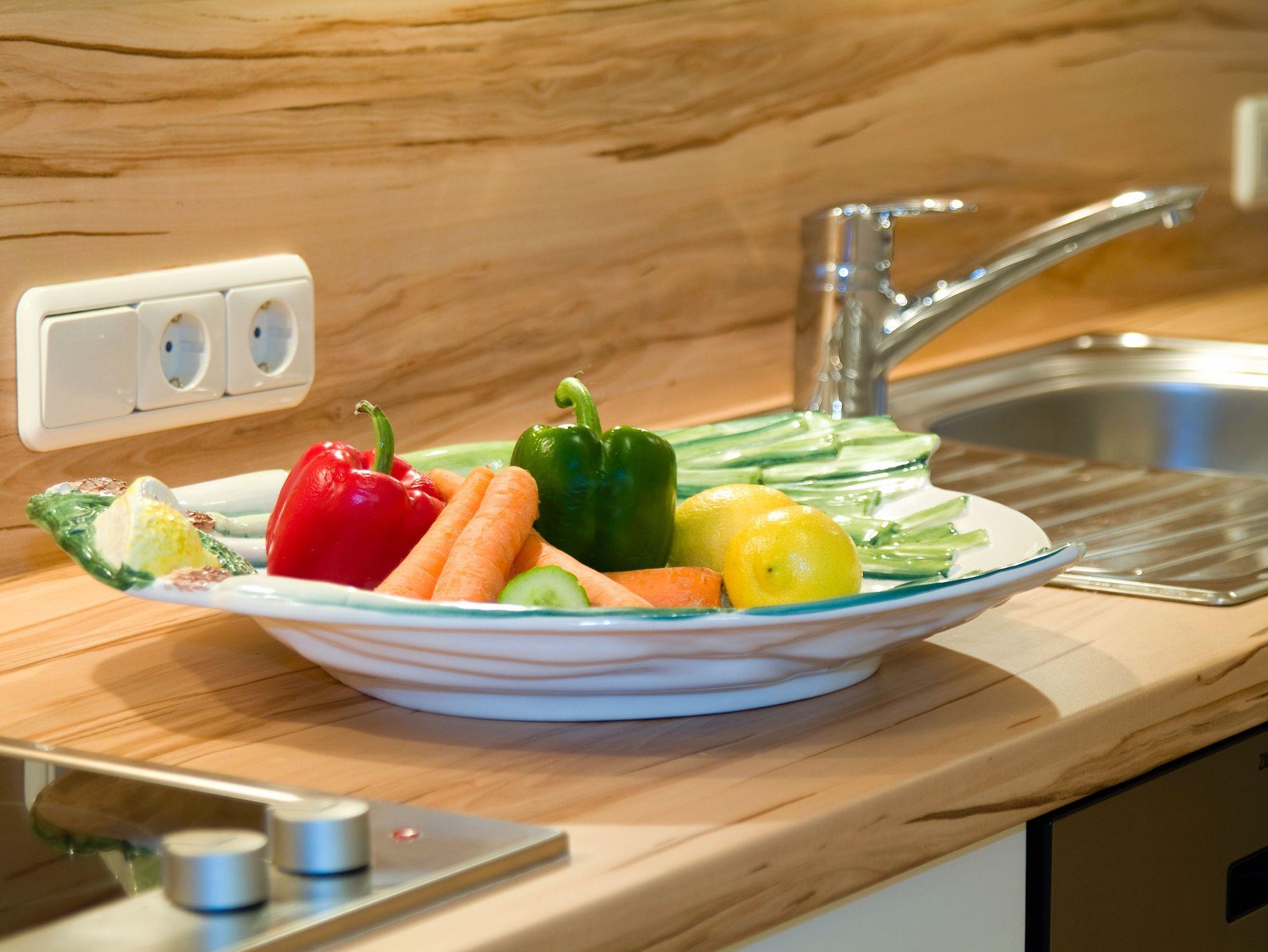 Selbstgesuchtes Schwemmholz setzt knorrig eigene Impulse. Die perfekt ausgestattete Küche bietet alles, was das Herz für eine ausgedehnte Koch-Session begehrt. Wer sich im Urlaub lieber verwöhnen lassen möchte, der reserviert einen Tisch in einem Restaurant.