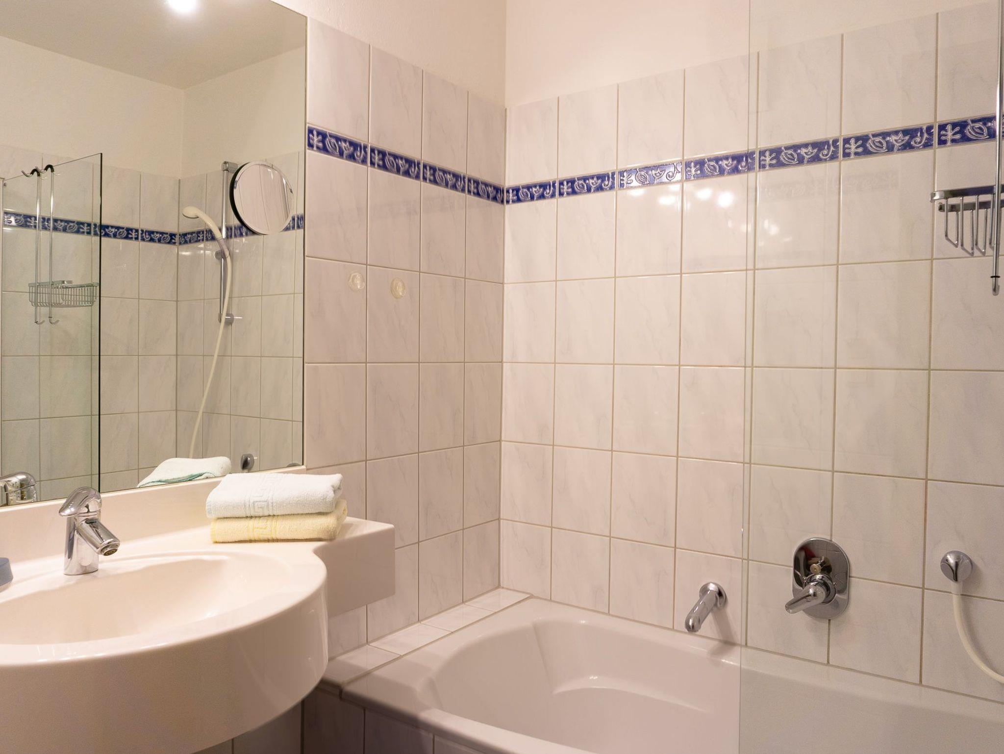 Es erwartet Sie eine gemütliche und großzügige Komfortferienwohnung mit 48 m². Bestehend aus einem Vorraum mit Garderobe, WC, getrenntes Badezimmer mit Wanne und Duschvorrichtung, Fön, NEUE Küche mit Durchreiche zum Essplatz, (Herd mit Backrohr und 4 Platten, Spülmaschine, Toaster, Wasserkocher, Kaffeemaschine), Wohnzimmer mit Doppel-Schlafcouch, Flat-TV, Telefon, W-lan, Radio, ein separates Doppelzimmer, Safe, möblierter Südbalkon, überdachter Autoabstellplatz, Brötchenservice, komplette Wäsche (Bett-, Tisch-, Bad- und Küchenwäsche). Zusätzlich zur Ferienwohnung können Sie noch ein Doppelzimmer oder Einzelzimmer mit DU/WC buchen.