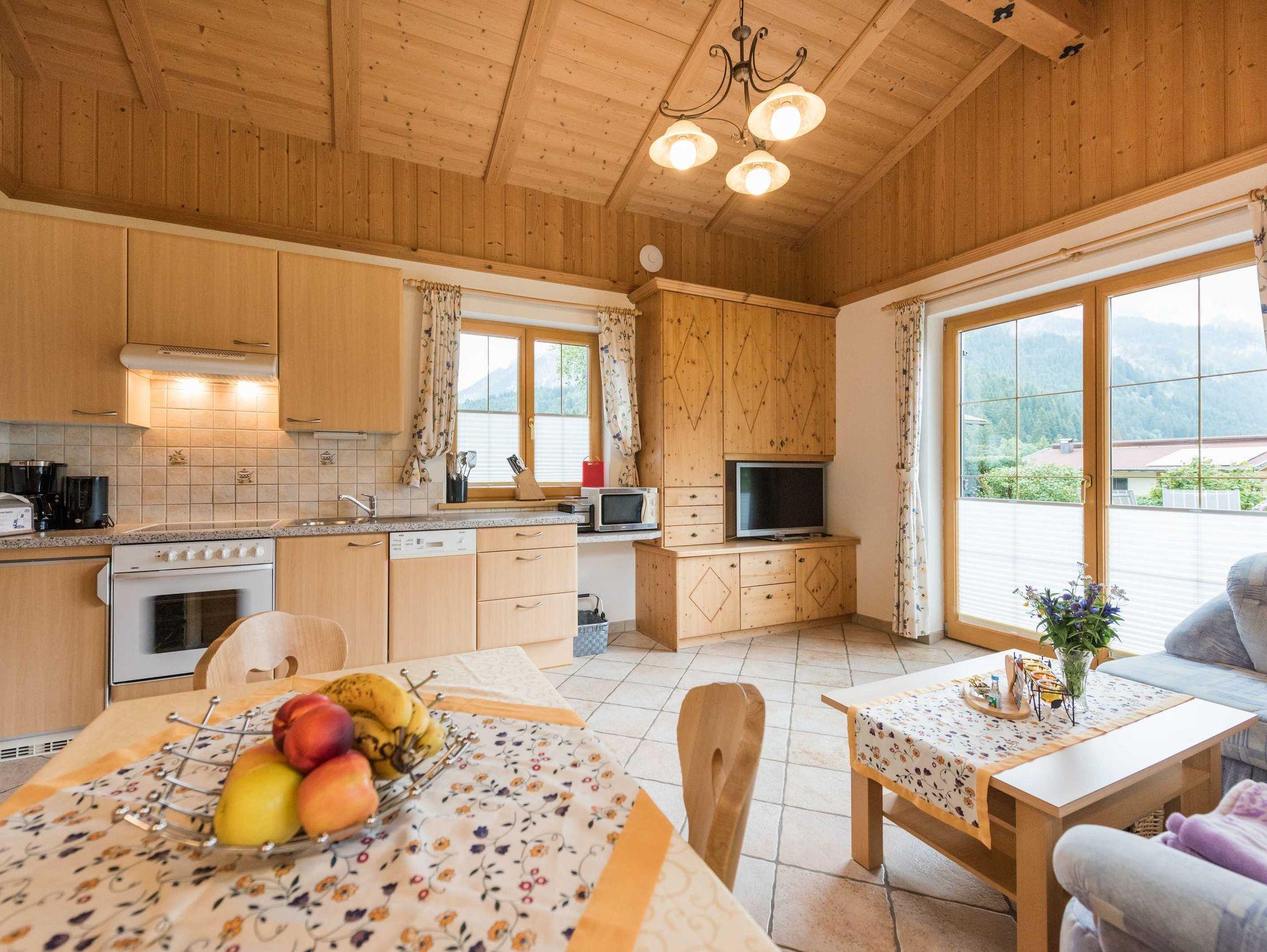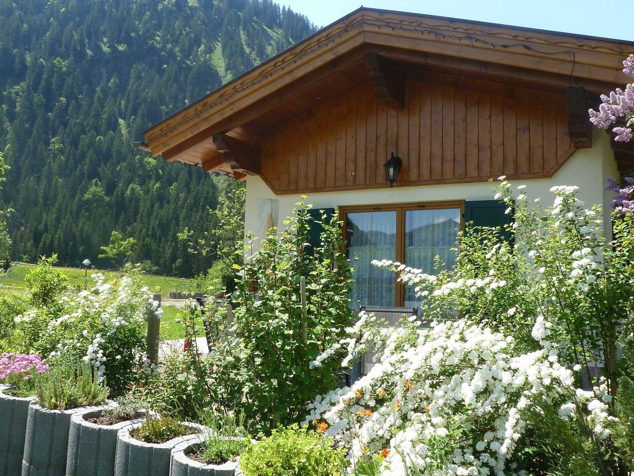 Gemütliches Wohnzimmer, große Terrasse mit herrlichen Panoramablick auf den Haldensee und umliegende Berge.