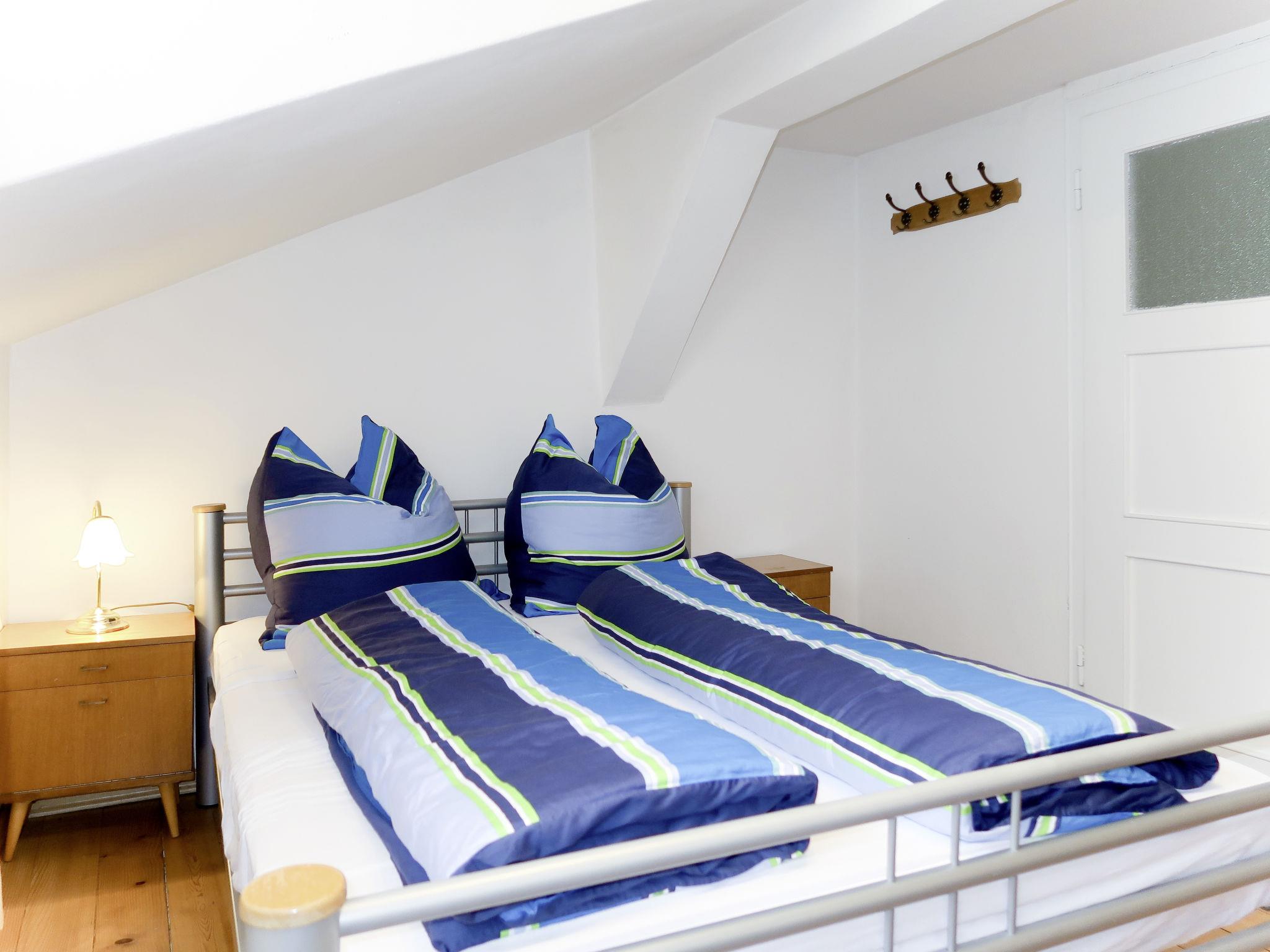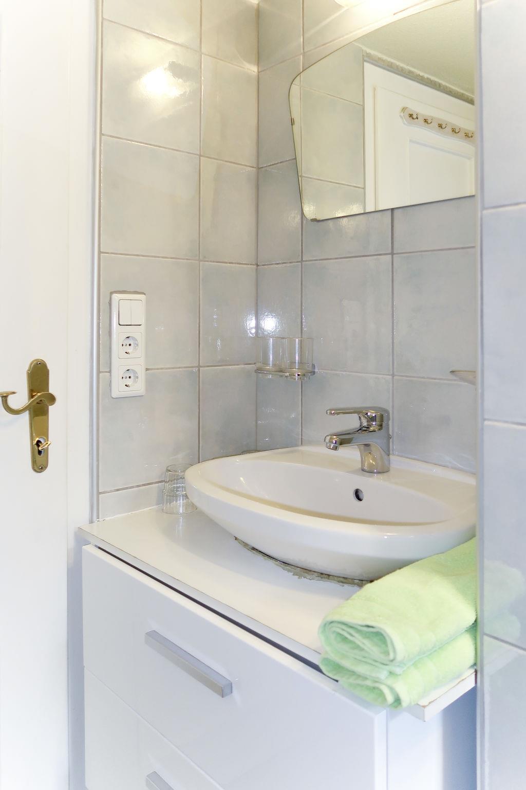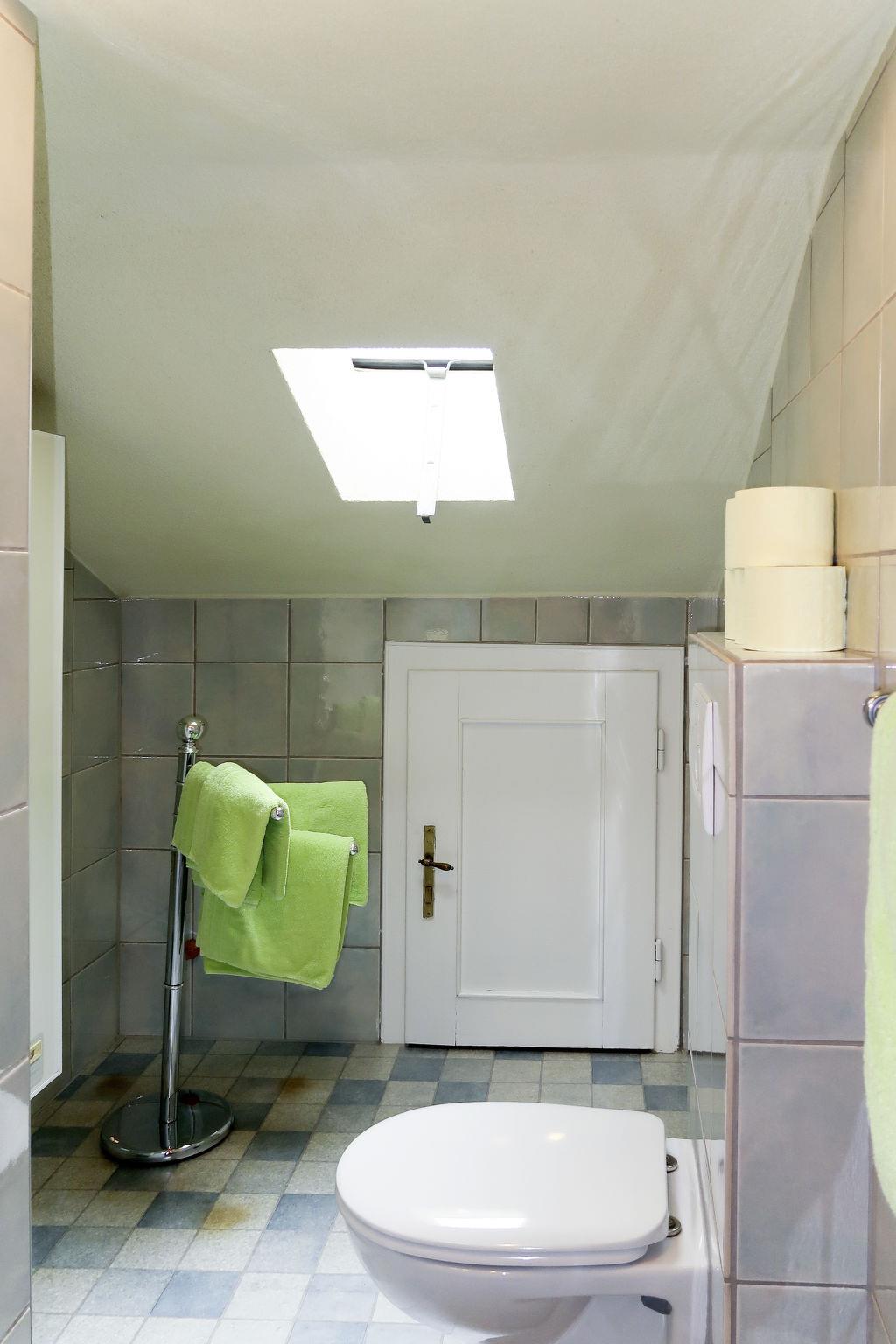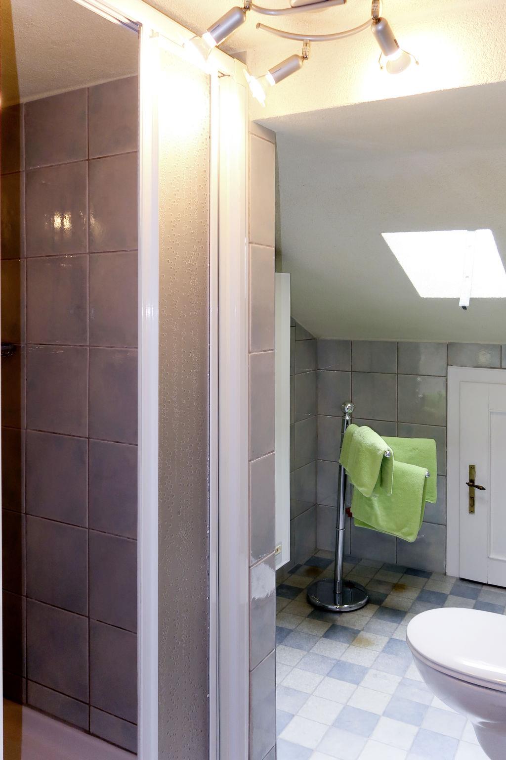 "Huber", 4-room apartment 60 m2 on 2nd floor. Simple furnishings: living room, ceiling height 195 cm, Low door height 175 cm with satellite TV. Exit to the balcony. 1 room with sloping ceilings with 1 french bed. 1 double bedroom. 1 room with 1 bed. Kitchen (oven, dishwasher, 4 ceramic glass hob hotplates, toaster, kettle, electric coffee machine) with dining nook. Exit to the balcony. Shower/WC. Oil heating. Wooden floors. Balcony. Balcony furniture, box-room. Facilities: Internet (WiFi, free). Parking (1 car).