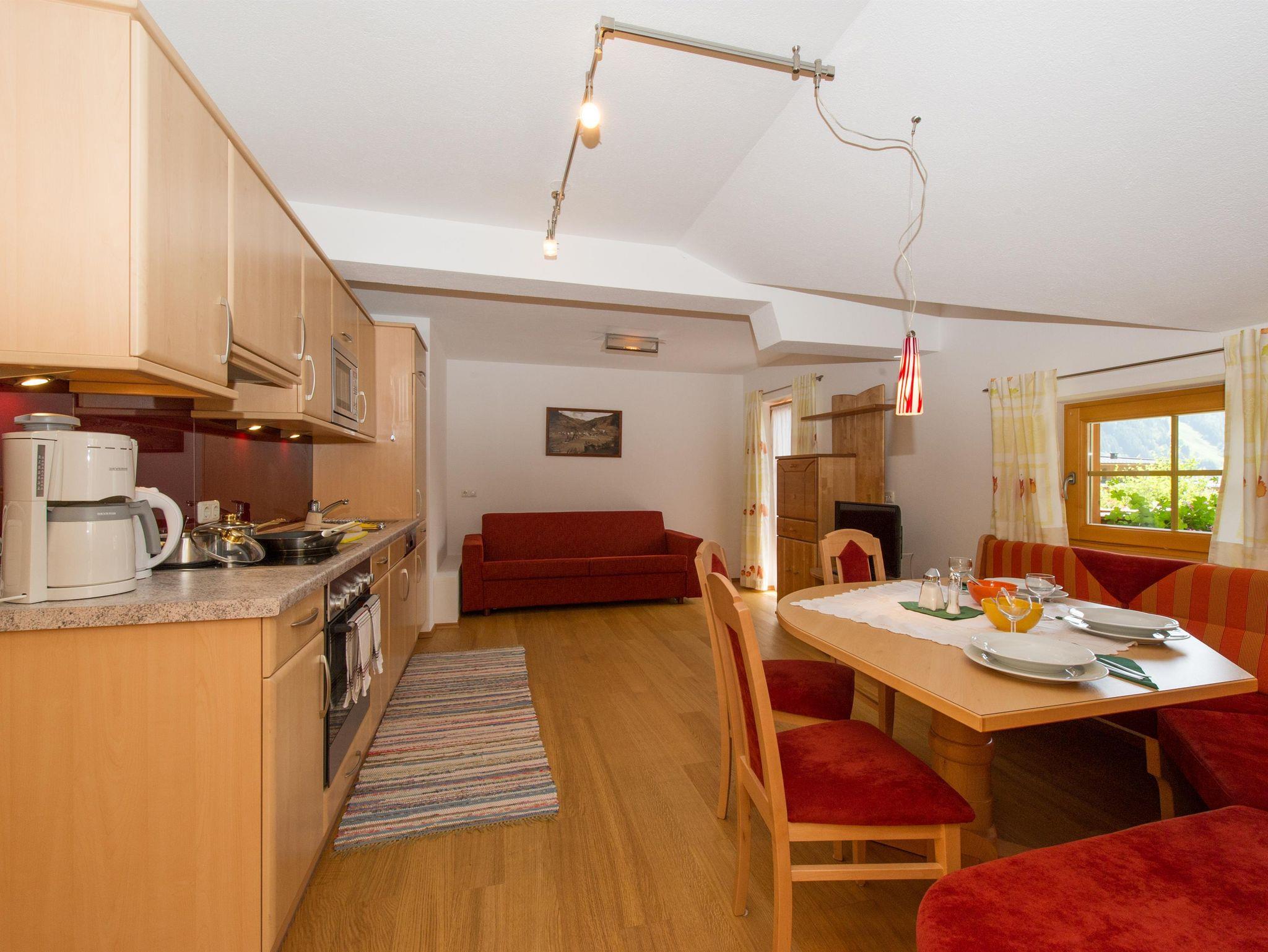 • Voll ausgestattete Kochnische mit Herd, Backofen, Geschirrspüler, Mikrowelle, Kühlschrank, Kaffeemaschine und Wasserkocher.